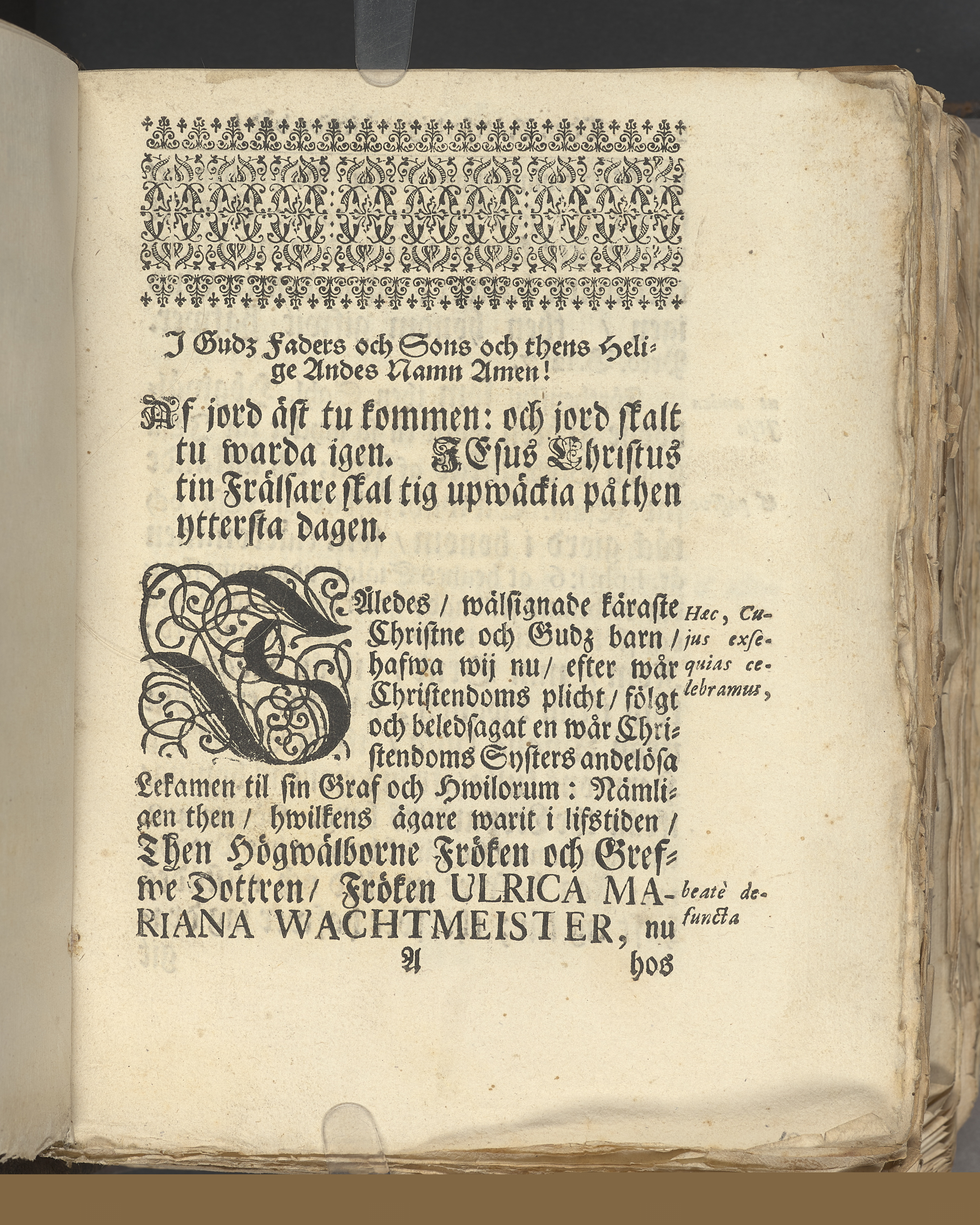 Begravningen av Ulrica Maria Wachtmeister (Omnämnd på/i)