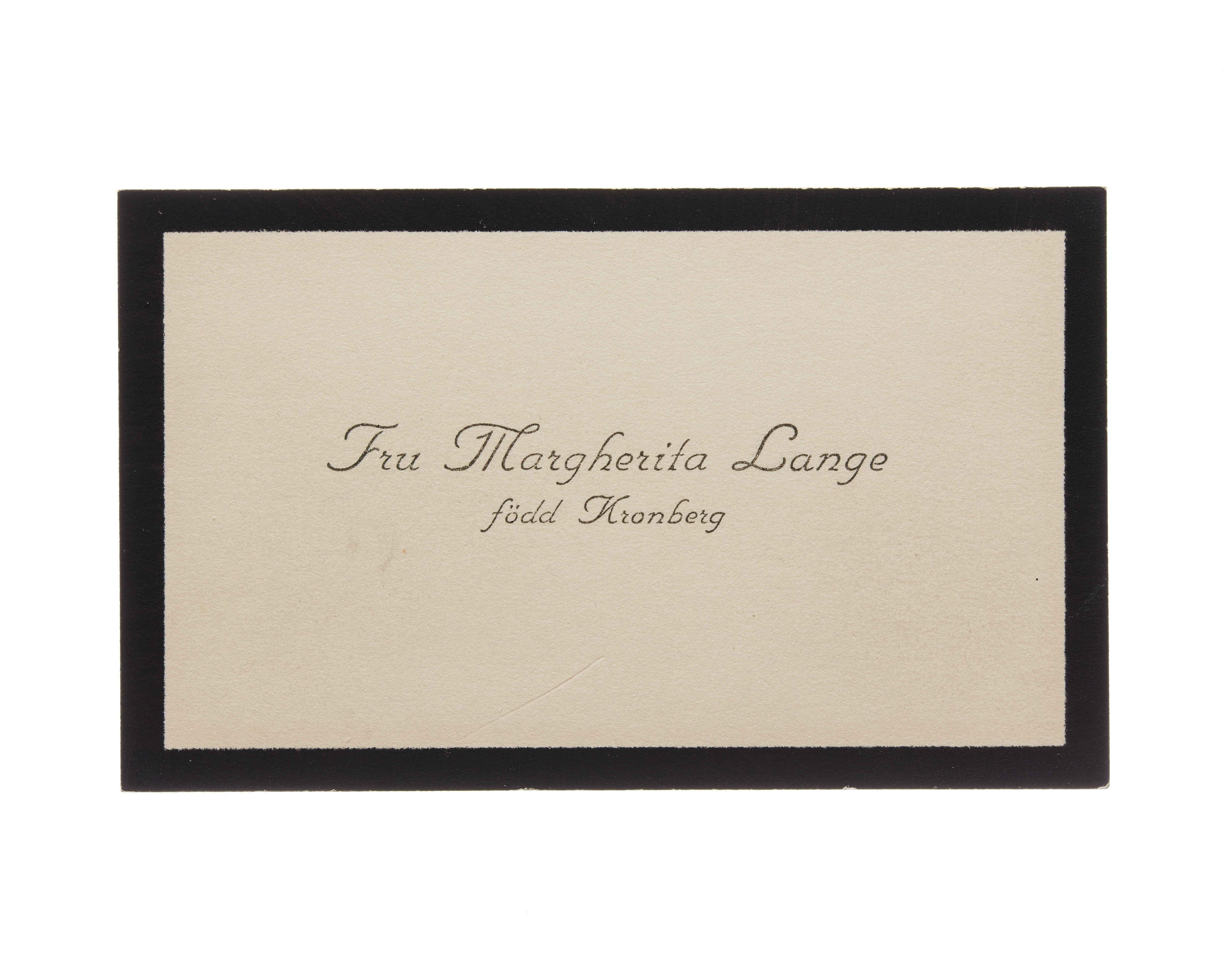 Visitkort från Fru Margherita Lange, f. Kronberg.