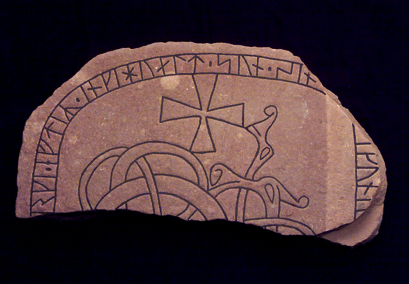 Runstensfragment av röd sandsten