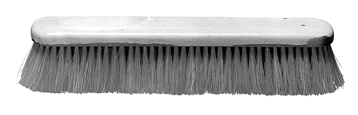 HATTBORSTE Borstrygg av rödbok, avlång, med bågformiga ändar. Översida och kant flack- rundade och vitlackerade. Bindlar tätt sittande, smala, av blekt svinborst. Längd: 16,8 cm; bredd: 3,2 cm Inköpt av Wilhelmina von Hallwyl omkring 1900. Framlagd i Lilla kapprummet till dagligt bruk.