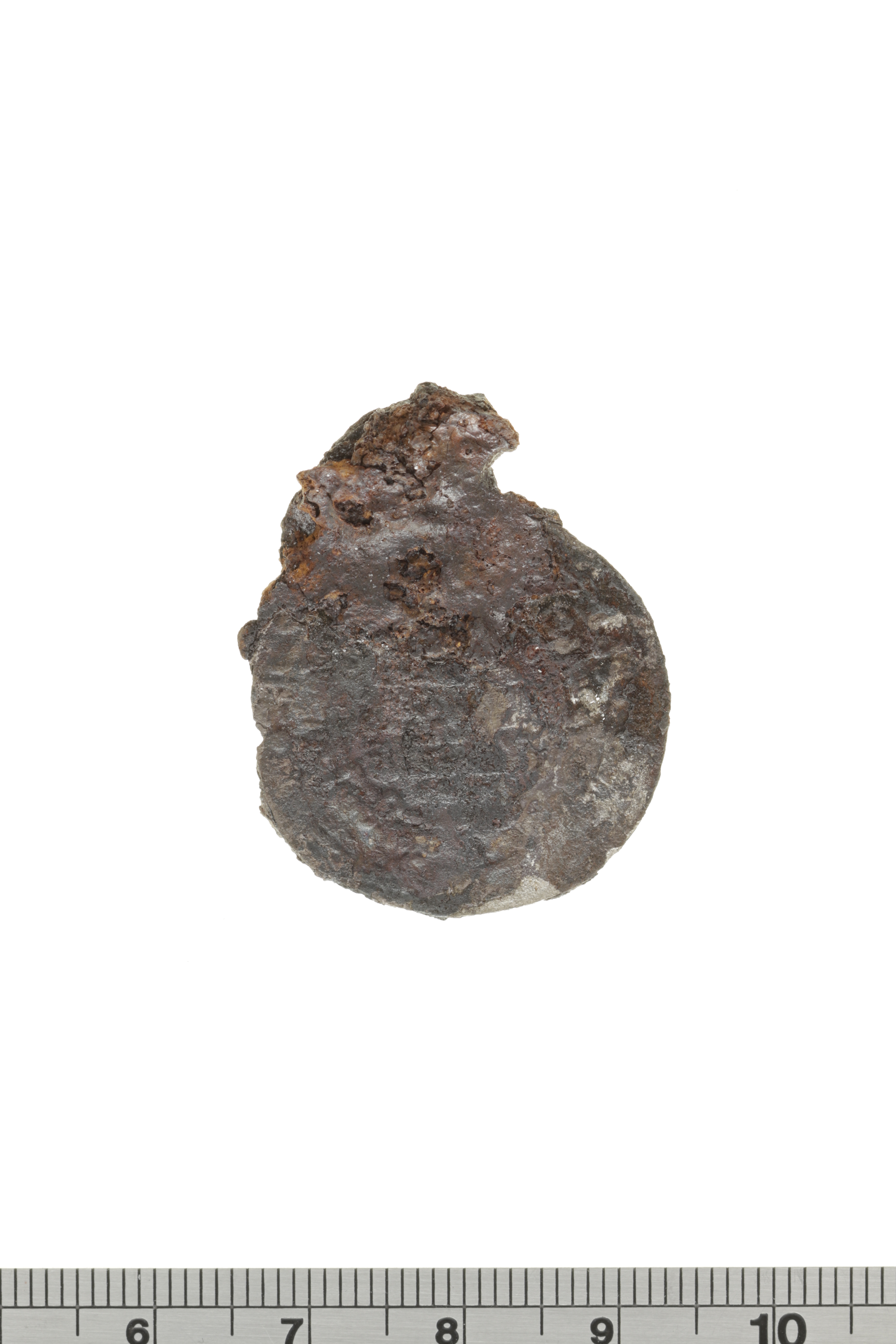 Klump med två korroderade dirham (nr 79 och 80). Bara nr 79 kan bestämmas närmare.