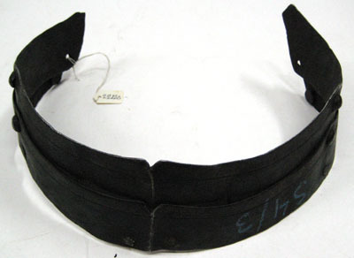 Två välvda skenor av svärtat stål, fästade i varandra med nitar i sidorna. Centrerad mittås, nertill avslutad med spetsig infilning. Längs nedre kant tre spetsar, filad enkel linje och en ca 6 mm bred bård med rester av förgyllning.