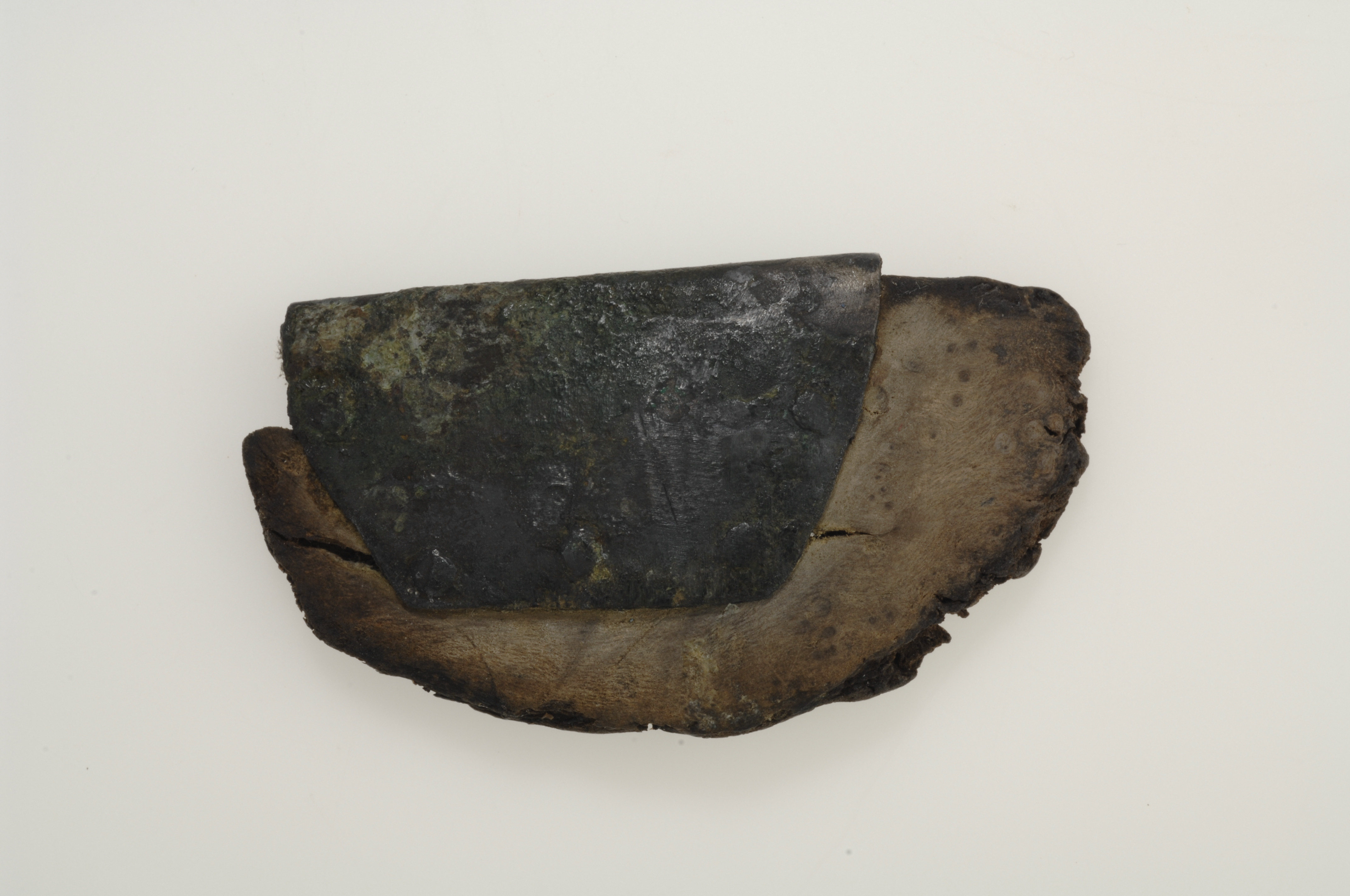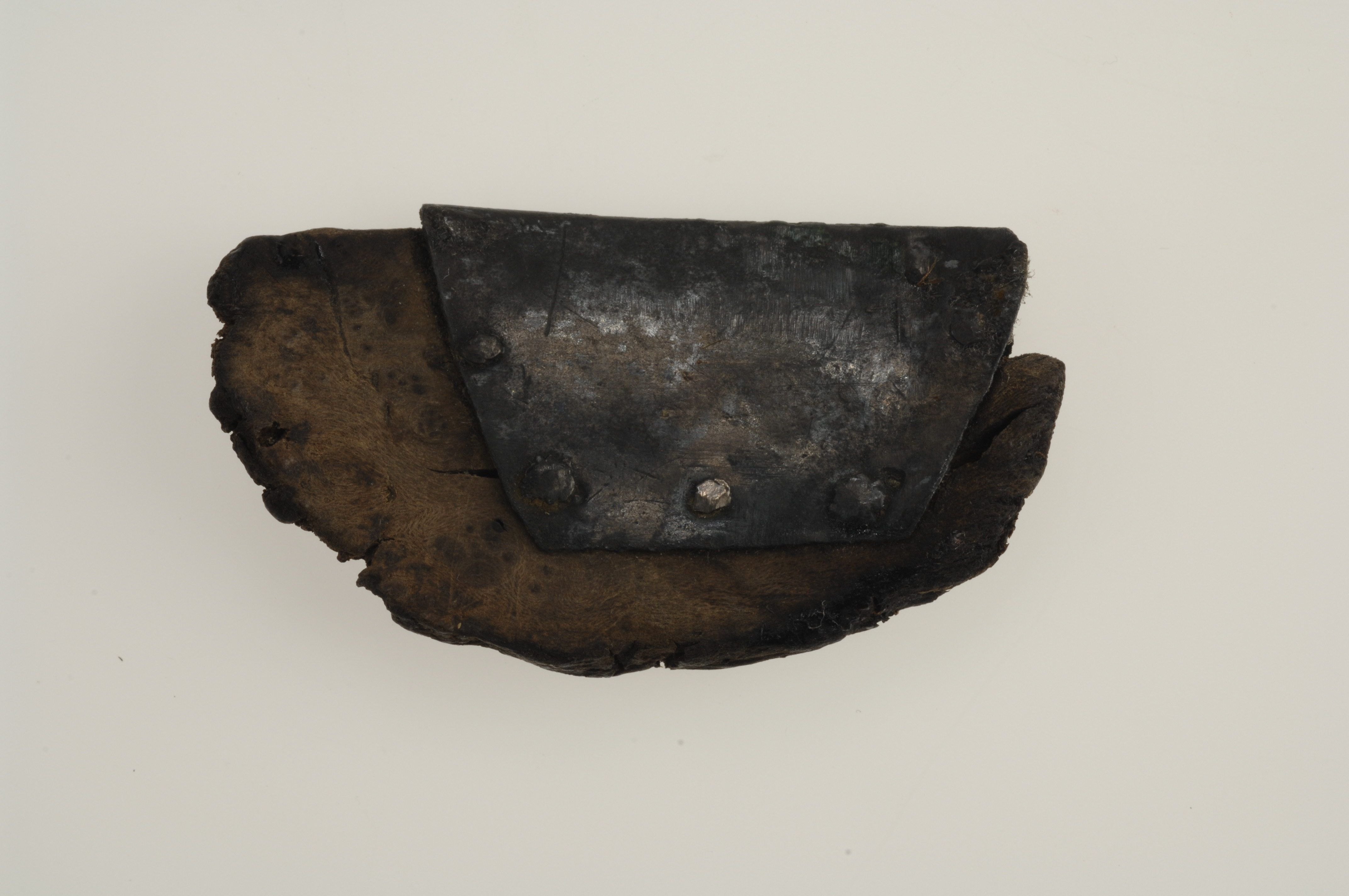fragment av ett träkärl med silverbeslag