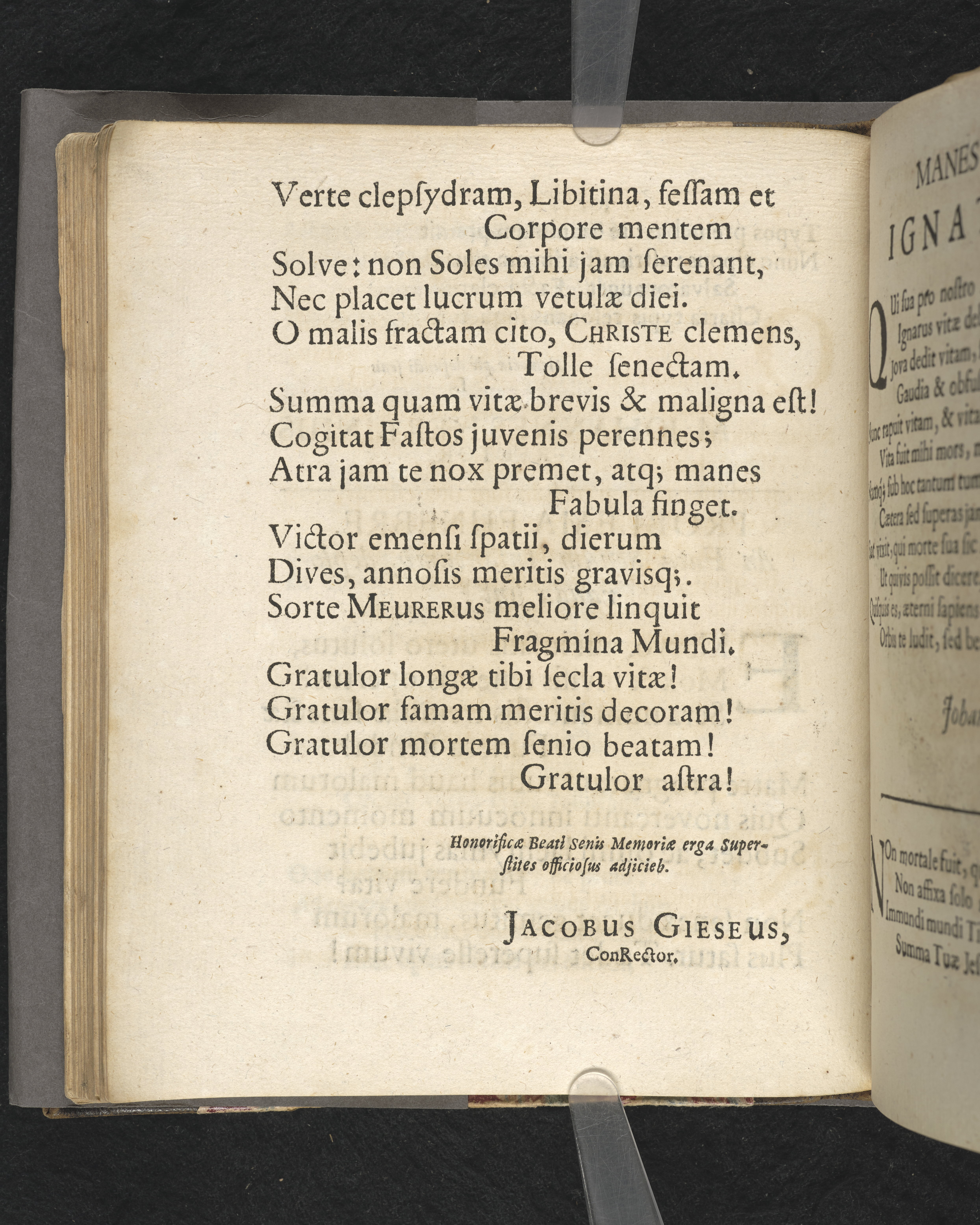 Epicedia in obitum ... Dn. Ignatii Meureri ... MDCLXXII d. 26 martij Holmiæ denati, ac d. 3 maij ejusdem anni in æde Jacobea Solemniter tumulati, â collegis scholæ teut: Holm: conscripta.
