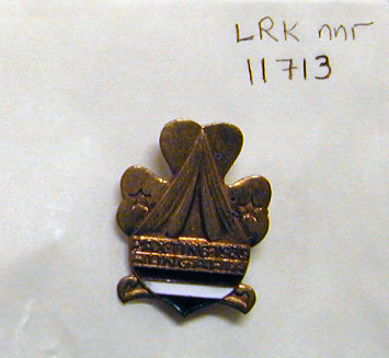 Märke pressat i gulmetall i form av treklöver med femuddiga, försänkta stjärnor på armarna. Därframför tält, stående på band med relieftext: PAX. TING 1939 ((HUNGARIA, "därnedanför tredelad,. Emaljerad sköld i Ungerns färger rött-vitt-grönt. På frånsidan fäst säkerhetsnål av gulmetall.
