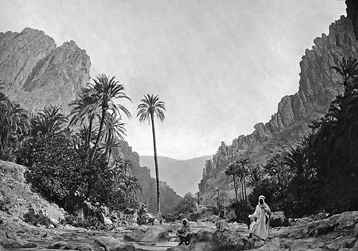 Algeriet. El Kantara. Flod och ravin. Foto från resa genom Algeriet och Tunisien samt åter över Schweiz, 11 februari - 19 maj 1889. Samtliga foton i gruppen LXVI:F. är inköpta av Wilhelmina von Hallwyl i Alger, Biskra, Tunis, Constantine, Oran och Blidah vid hennes vistelse i nämnda städer tillsammans med sin make, Walther von Hallwyl, sin mor, Johanna Kempe, f. Wallis, dottern Irma samt fröknarna Caroline Pflaum och Ida Uhse. Uppgifterna kommer från fröken Ida Uhses reseanteckningar.