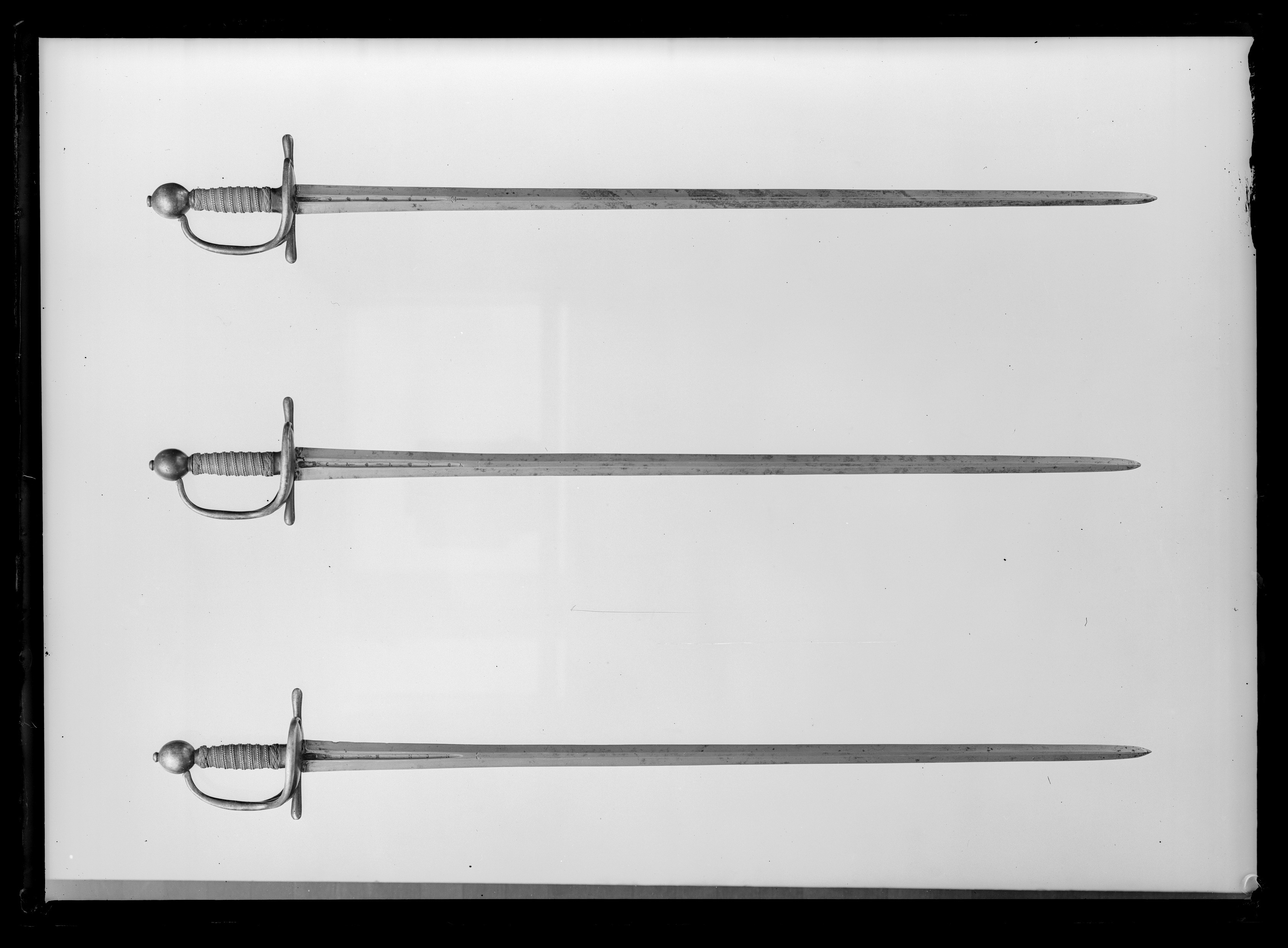 Modellenlig. Blåneringen umera gråaktig och delvis bortnött. Baktill på insidan av inre parerplåten punsat: "N.15".