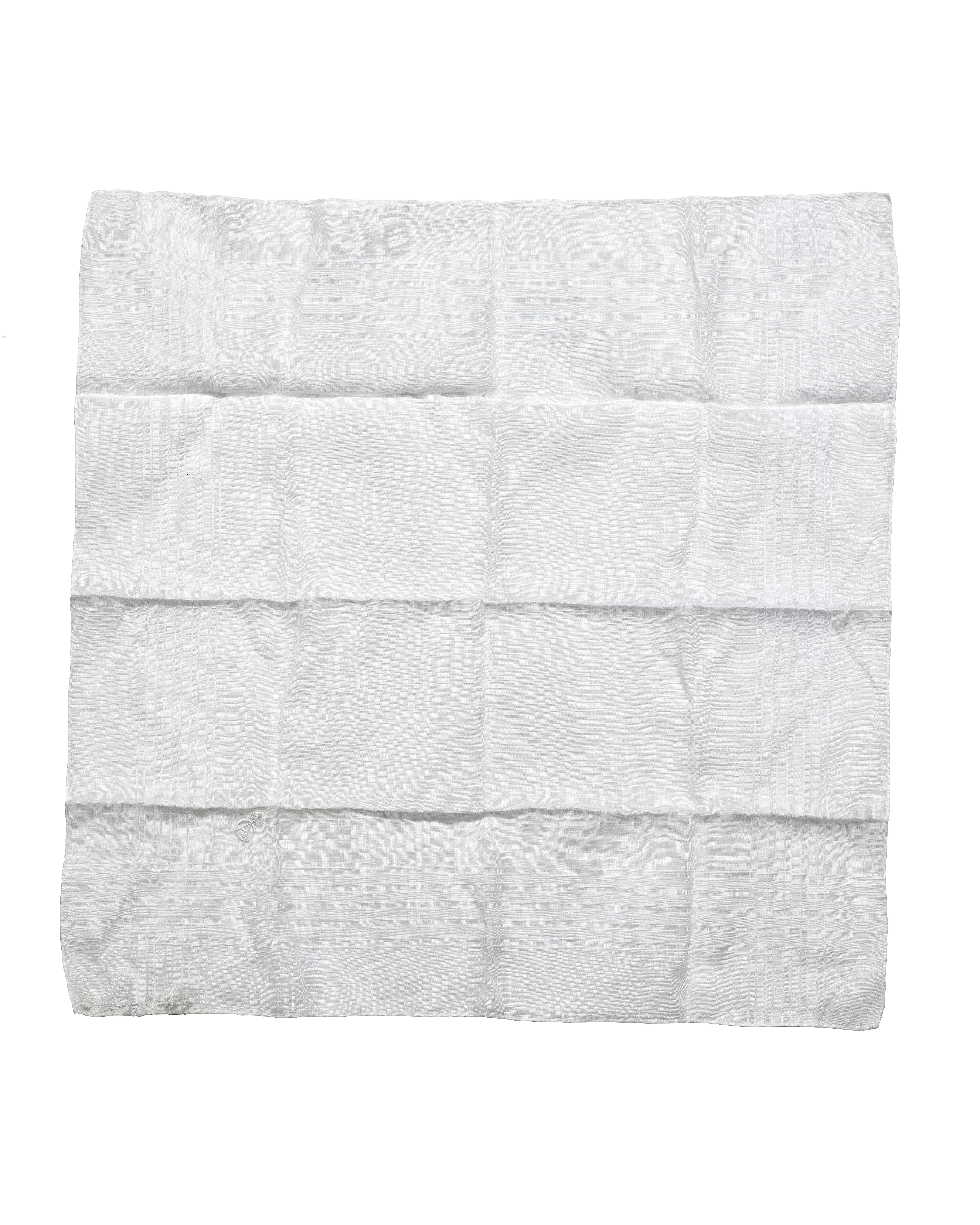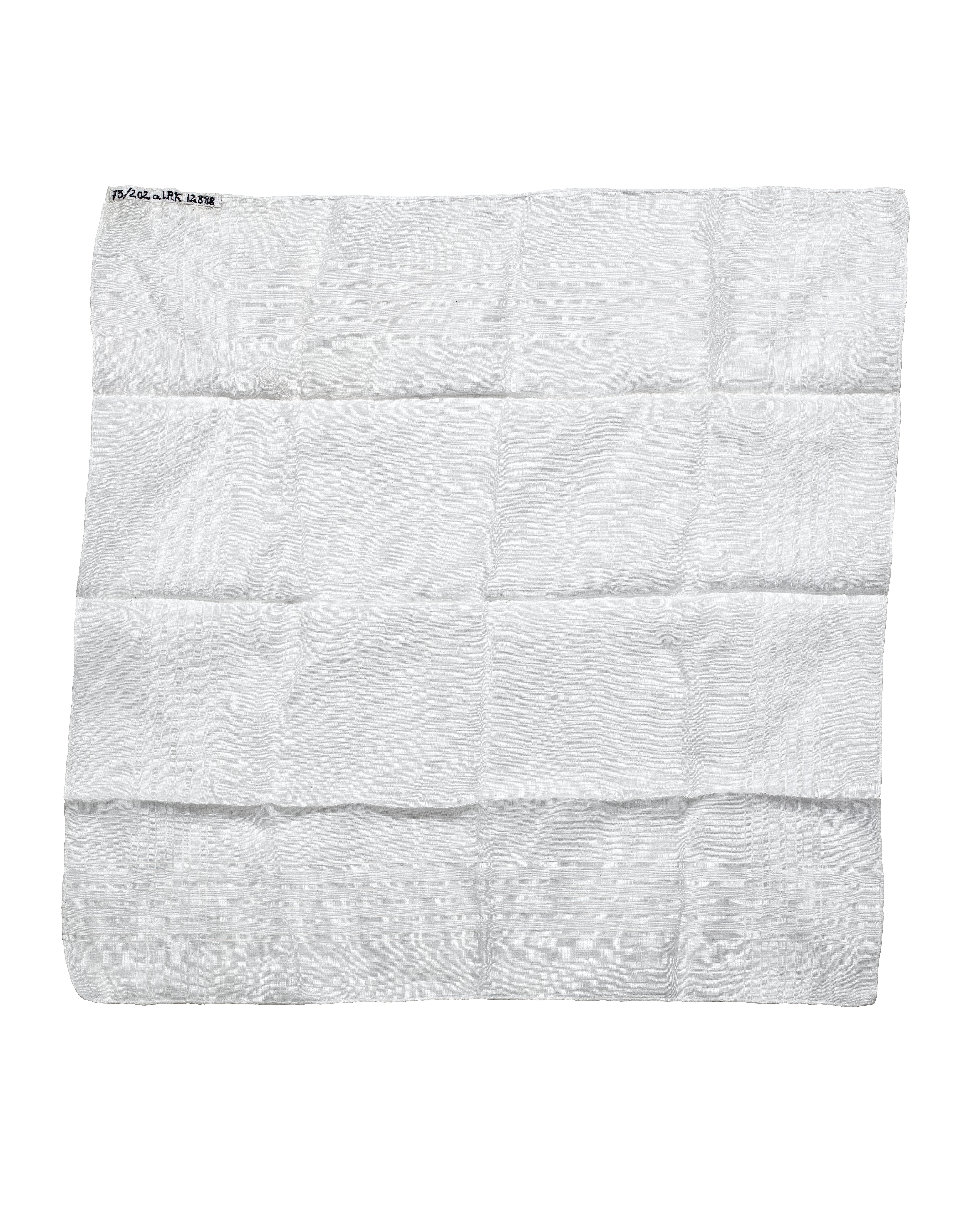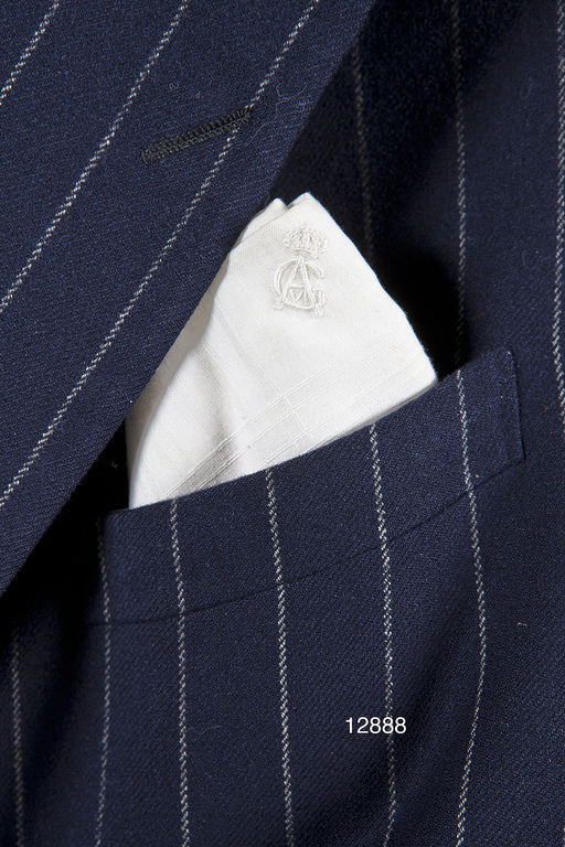 Näsduk av vit bomullsbatist med rullfåll samt märkt i en hörna GA nedanför kunglig krona.