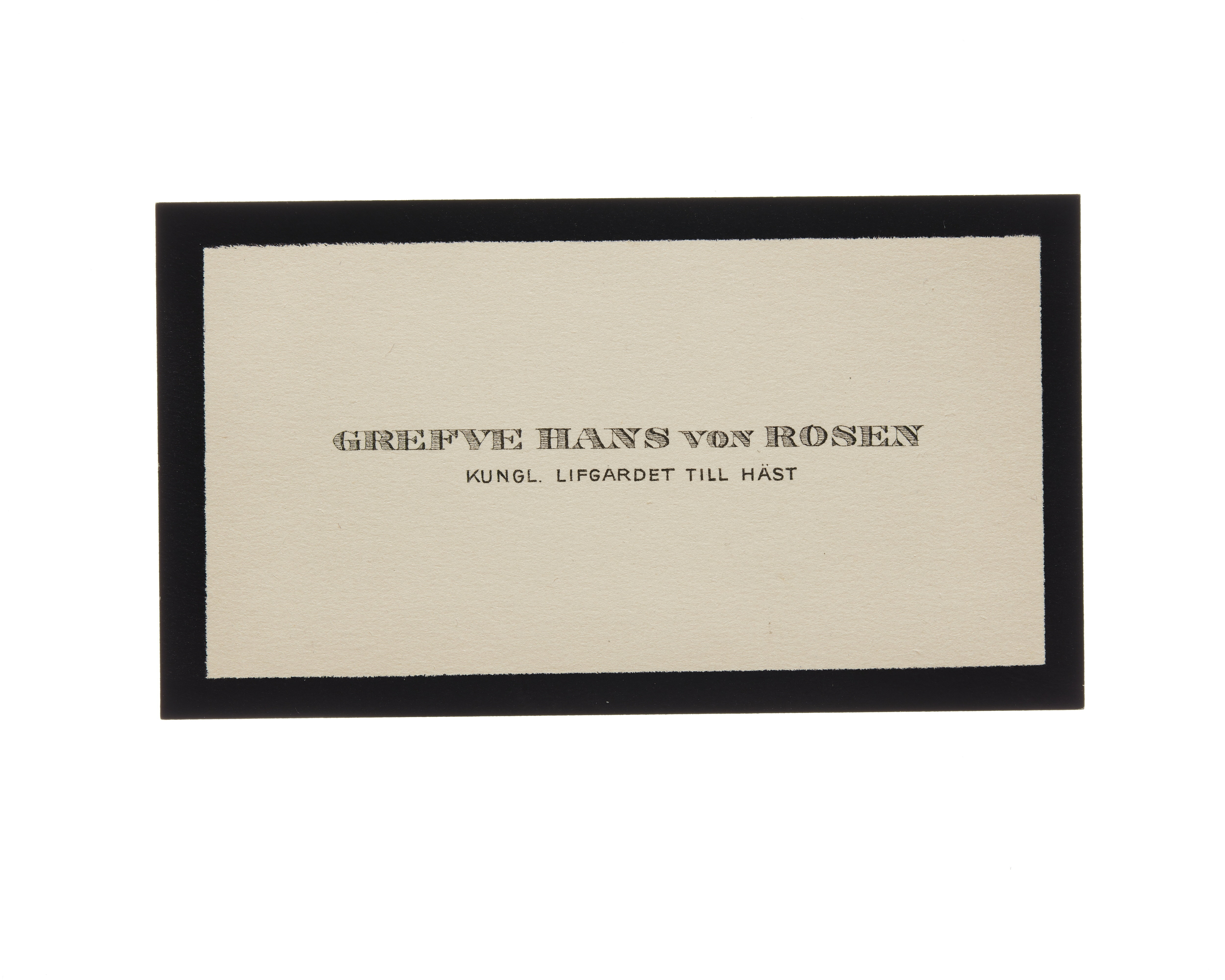 Ett visitkort från Greve Hans von Rosen, Kungl. Livgardet till häst, daterat 1917 samt sorg kant.