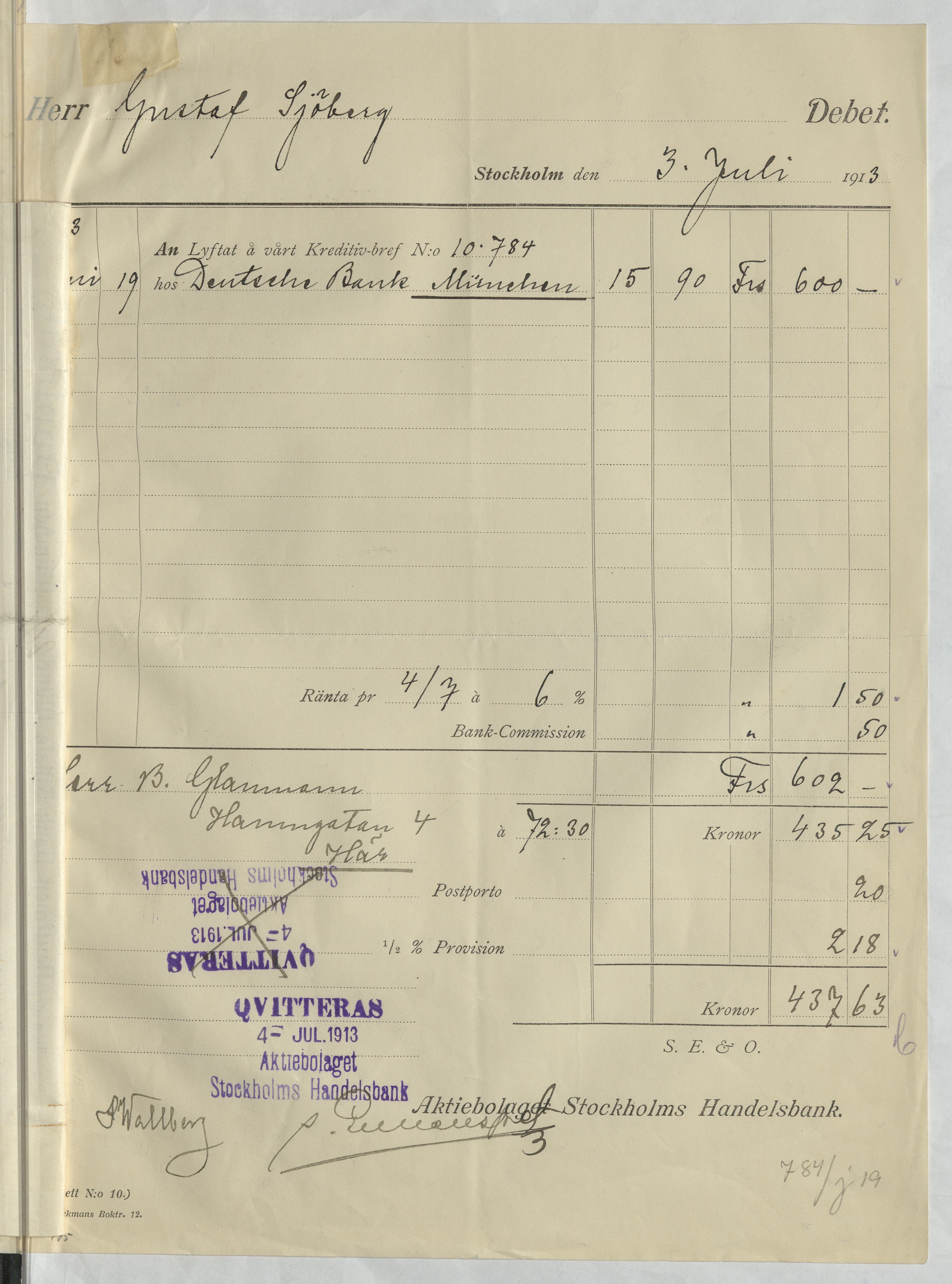 Upphov: Stockholms Handelsbank AB. Media: Statens historiska museer. Hallwylska museet/SHM, (PDM) Upphovsrätten till detta verk har gått ut och är därmed fritt att använda på alla sätt. Ange gärna upphovsperson om denne är känd.