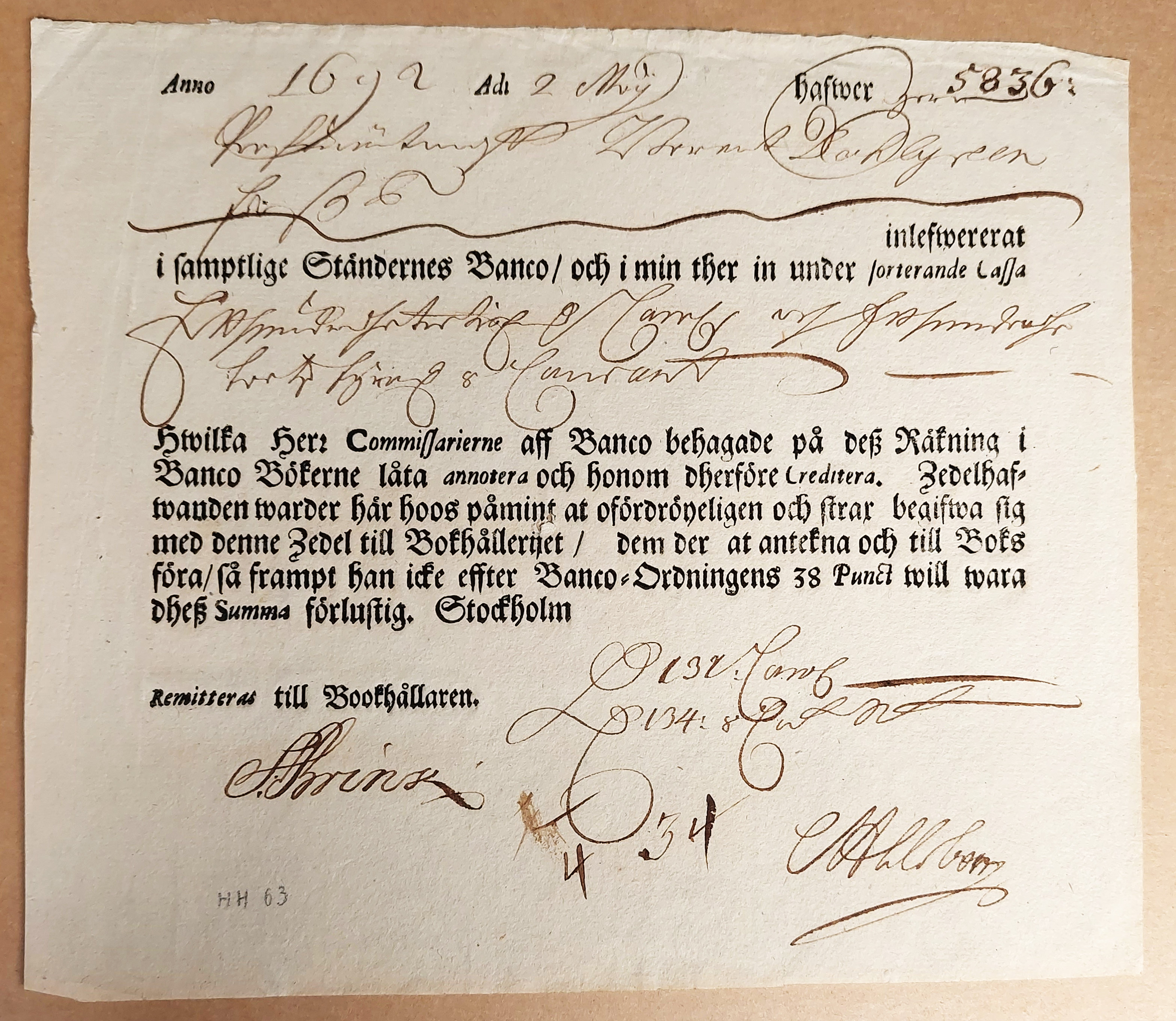 Upphov: Kungl. Maj:ts Ständers Bank. Media: Bonnevier, Helena. Ekonomiska museet - Kungliga myntkabinettet/SHM, (PDM) Upphovsrätten till detta verk har gått ut och är därmed fritt att använda på alla sätt. Ange gärna upphovsperson om denne är känd.