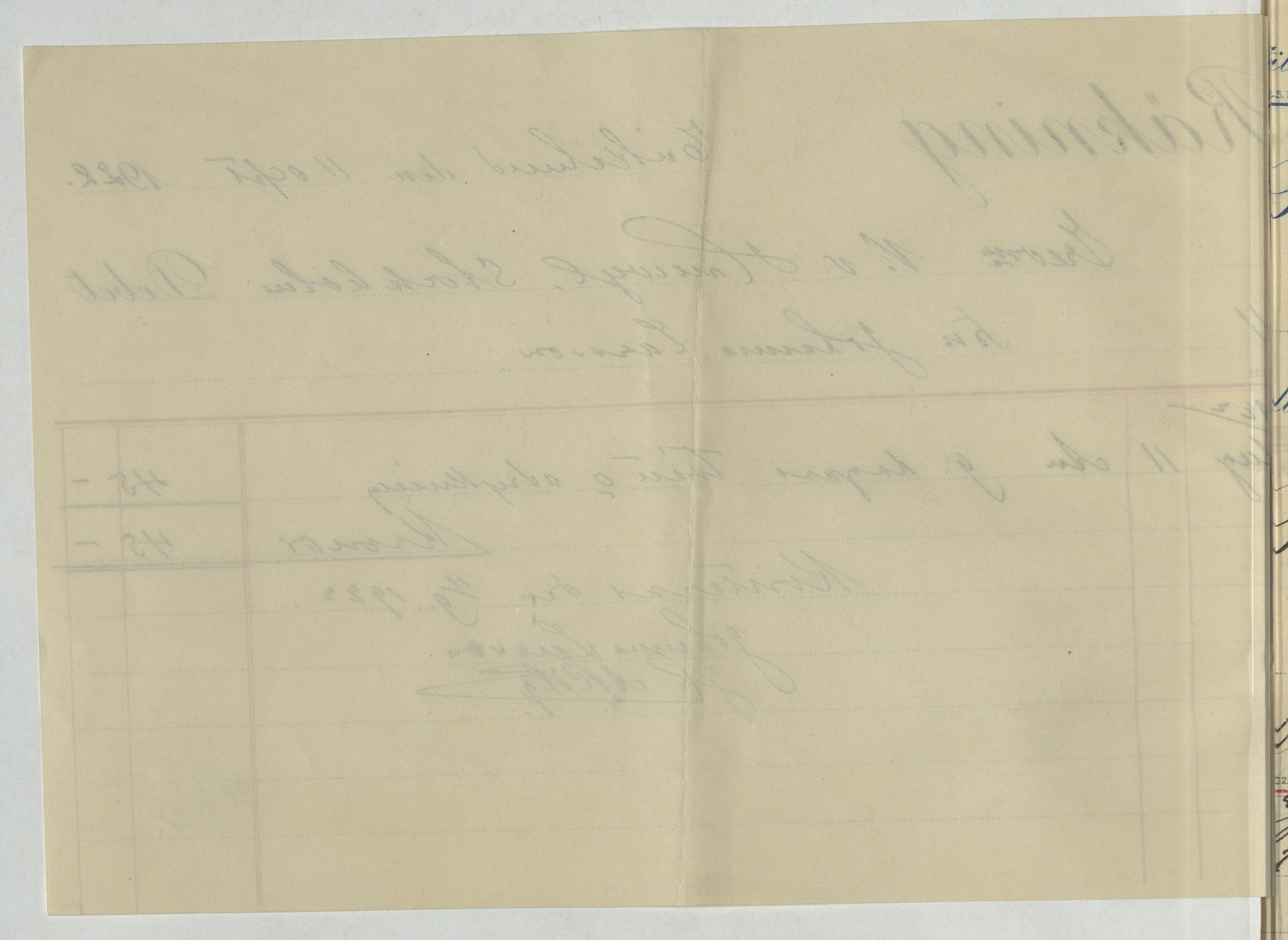 Kvitto från Johanna Larsson vid Erikslund. Gällande 9 dagars tvätt och strykning. Erikslund, 1922.