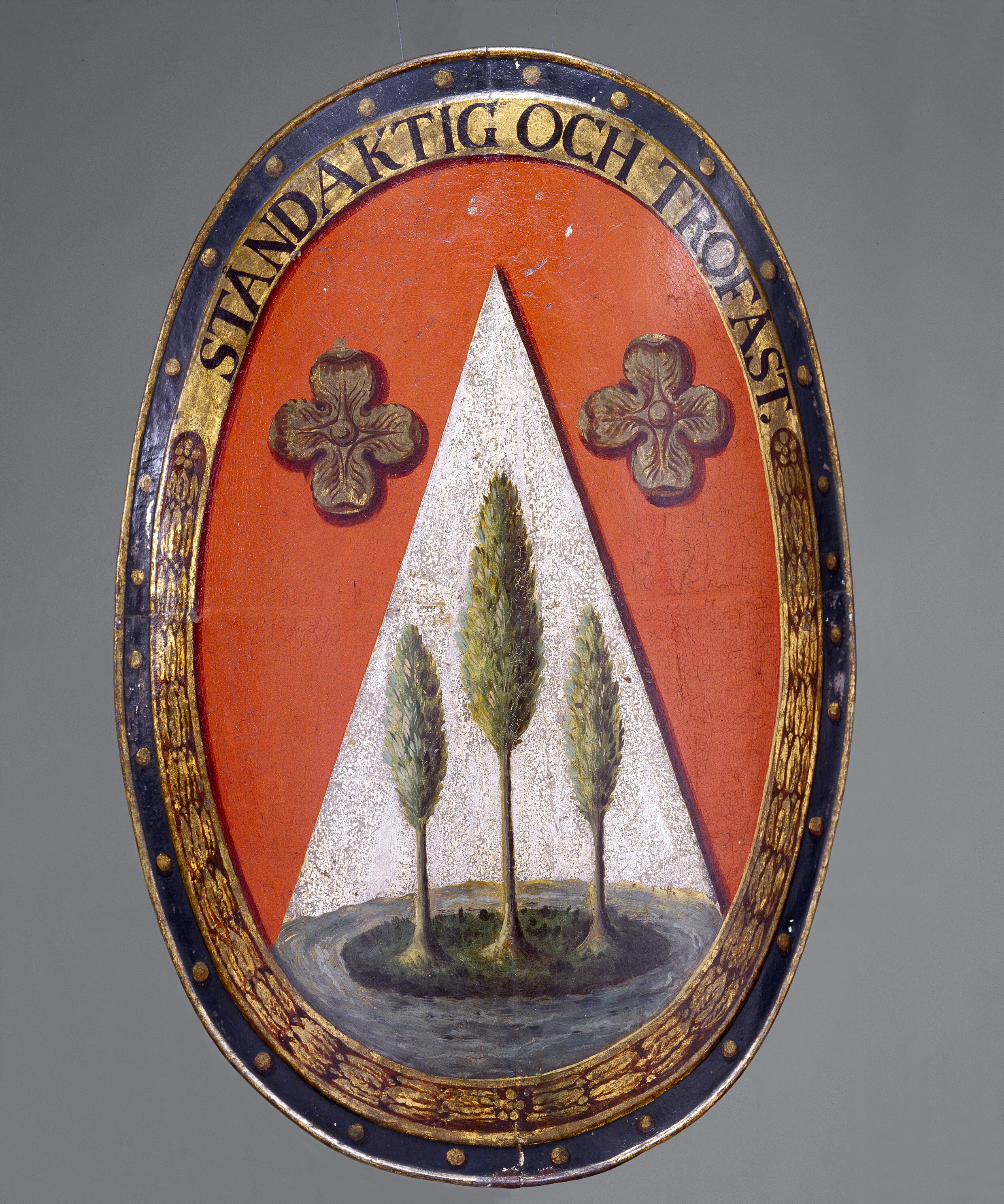 Tornérsköld, buren av friherre T. G. Cederström under torneringarna på Drottningholm 1799/1800. STÅNDAKTIG OCH TROFAST
