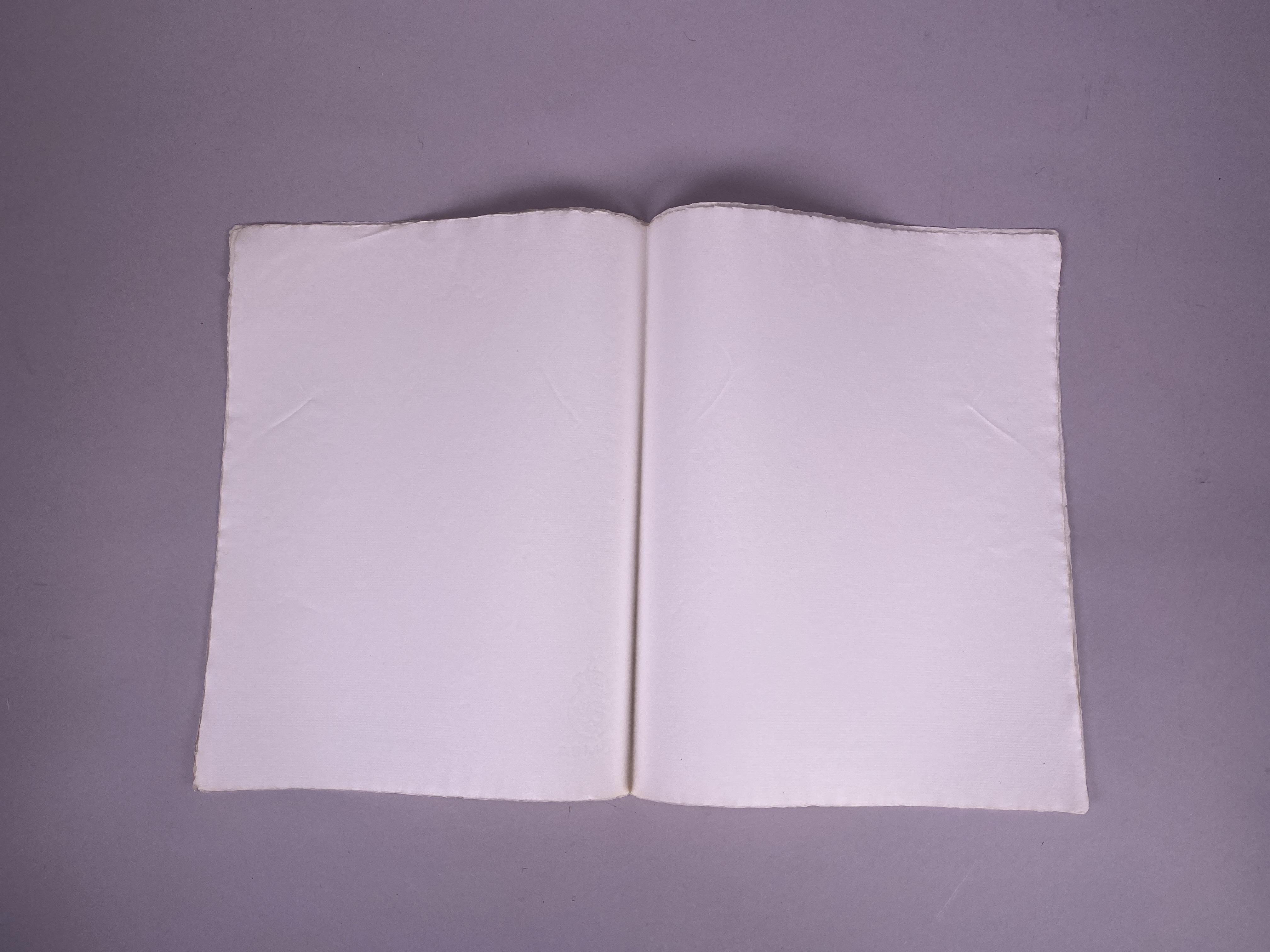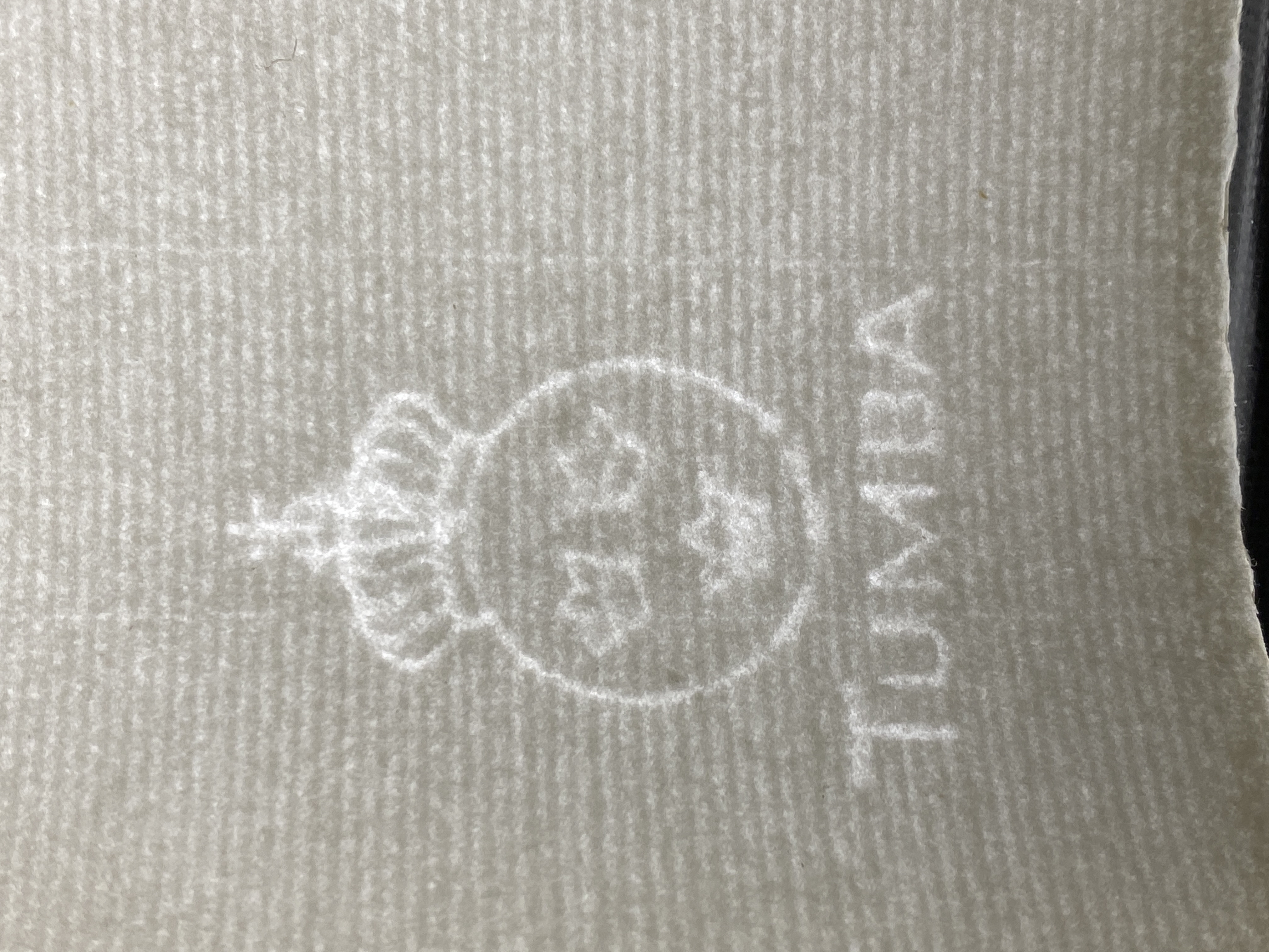 Papper, en bunt på fyra stycken ark. Handgjorda med enkelverkande vattenmärke föreställande logotyp för Tumba bruk.
