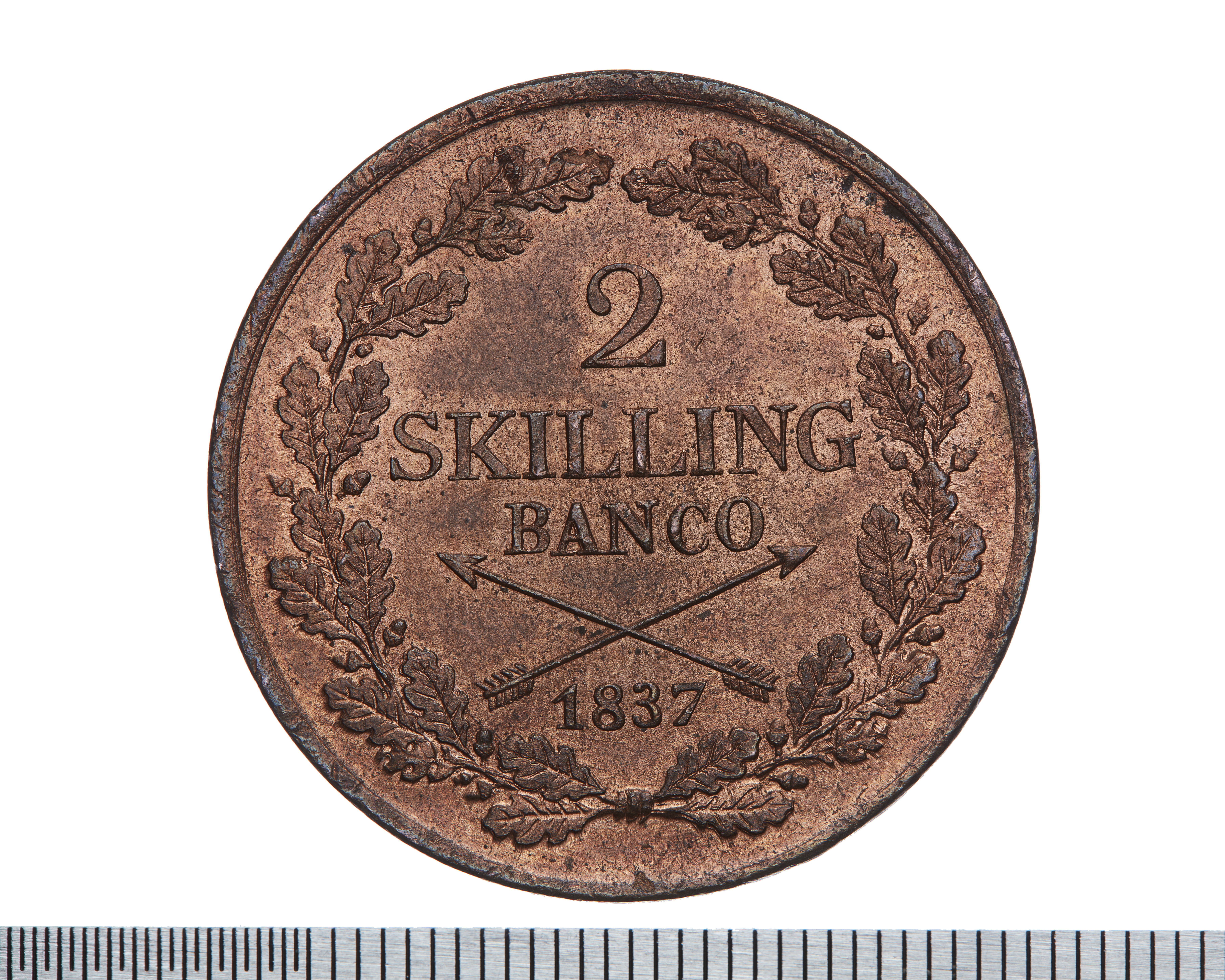 Upphov: Karl XIV Johan av Sverige och Norge. Media: Bonnevier, Helena. Ekonomiska museet - Kungliga myntkabinettet/SHM, (CC BY 4.0) Du får bearbeta och dela verket för alla ändamål, även kommersiella, så länge du anger upphovsperson och licensgivare.