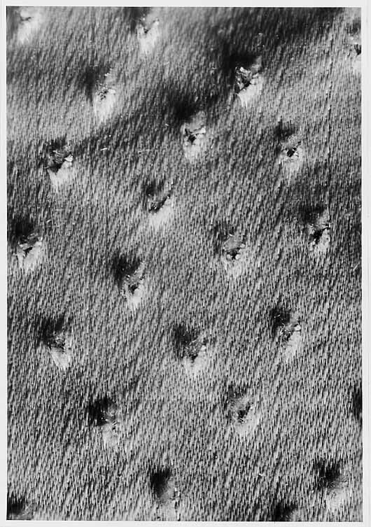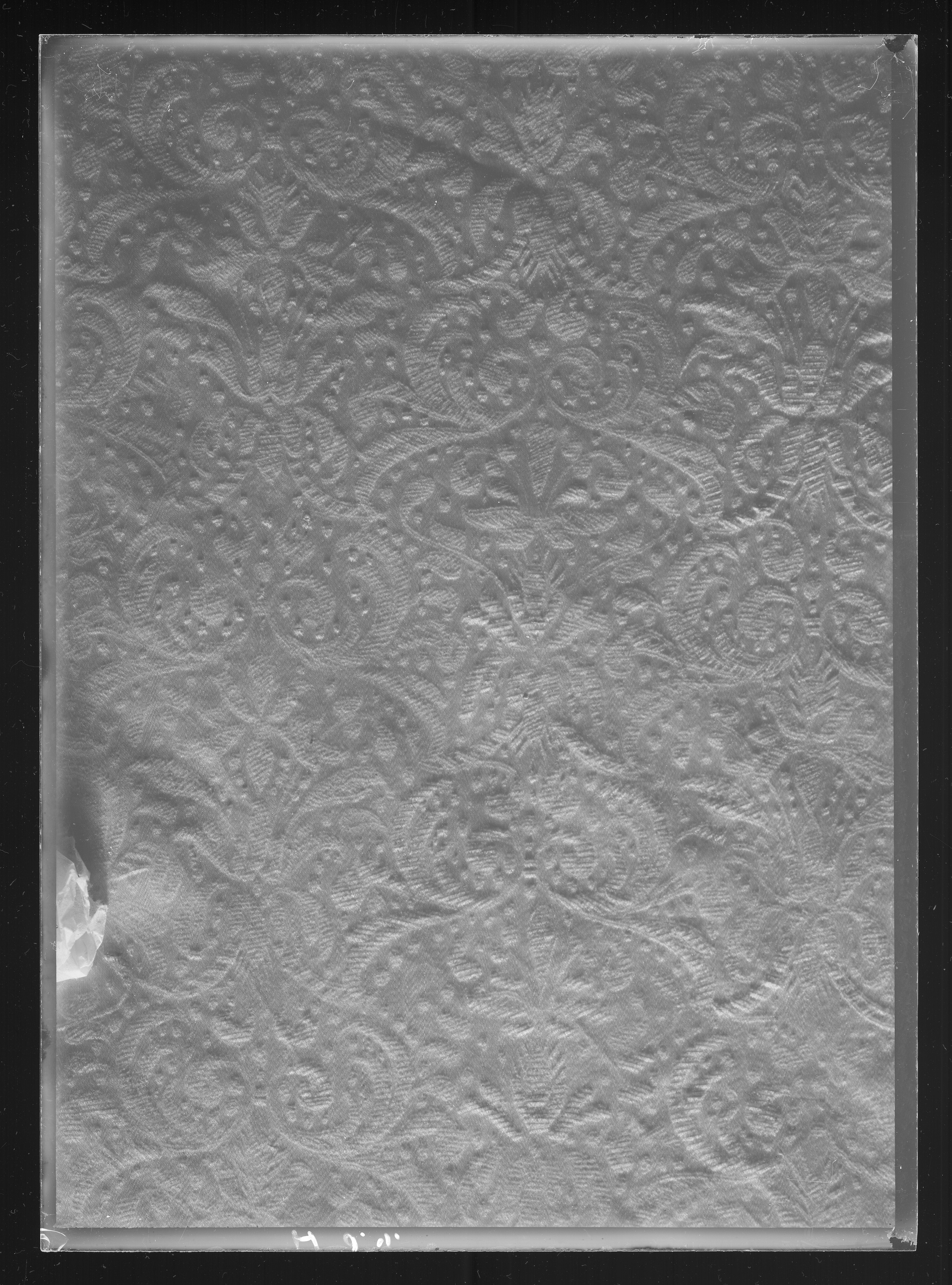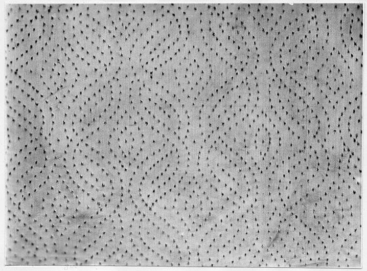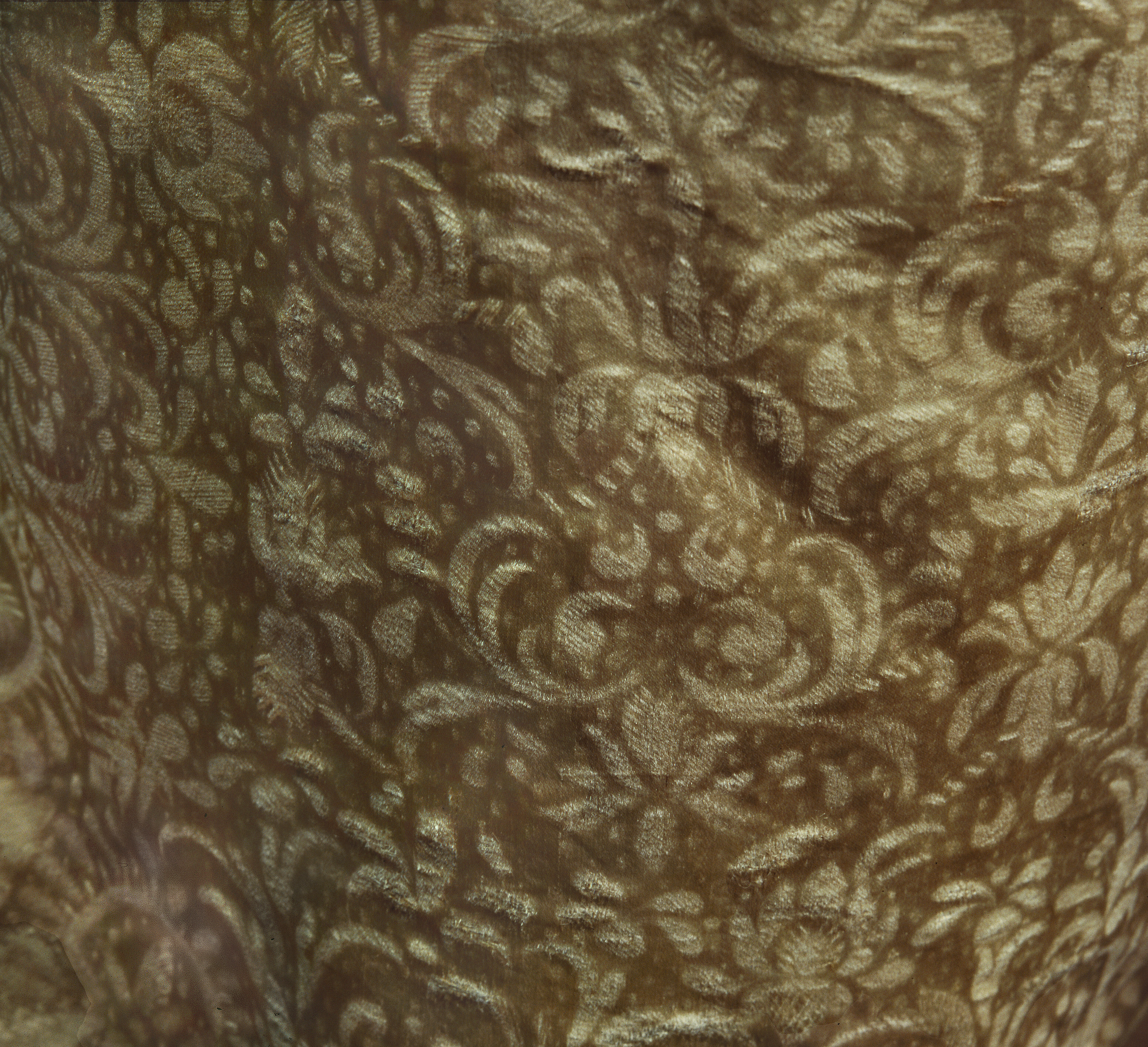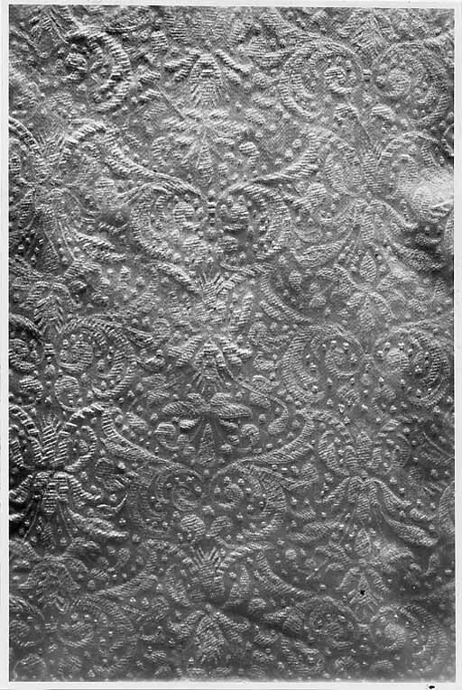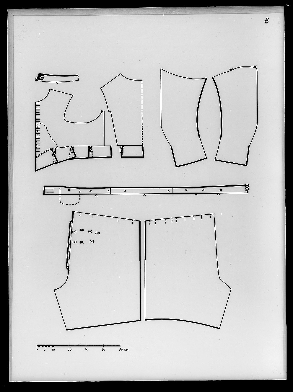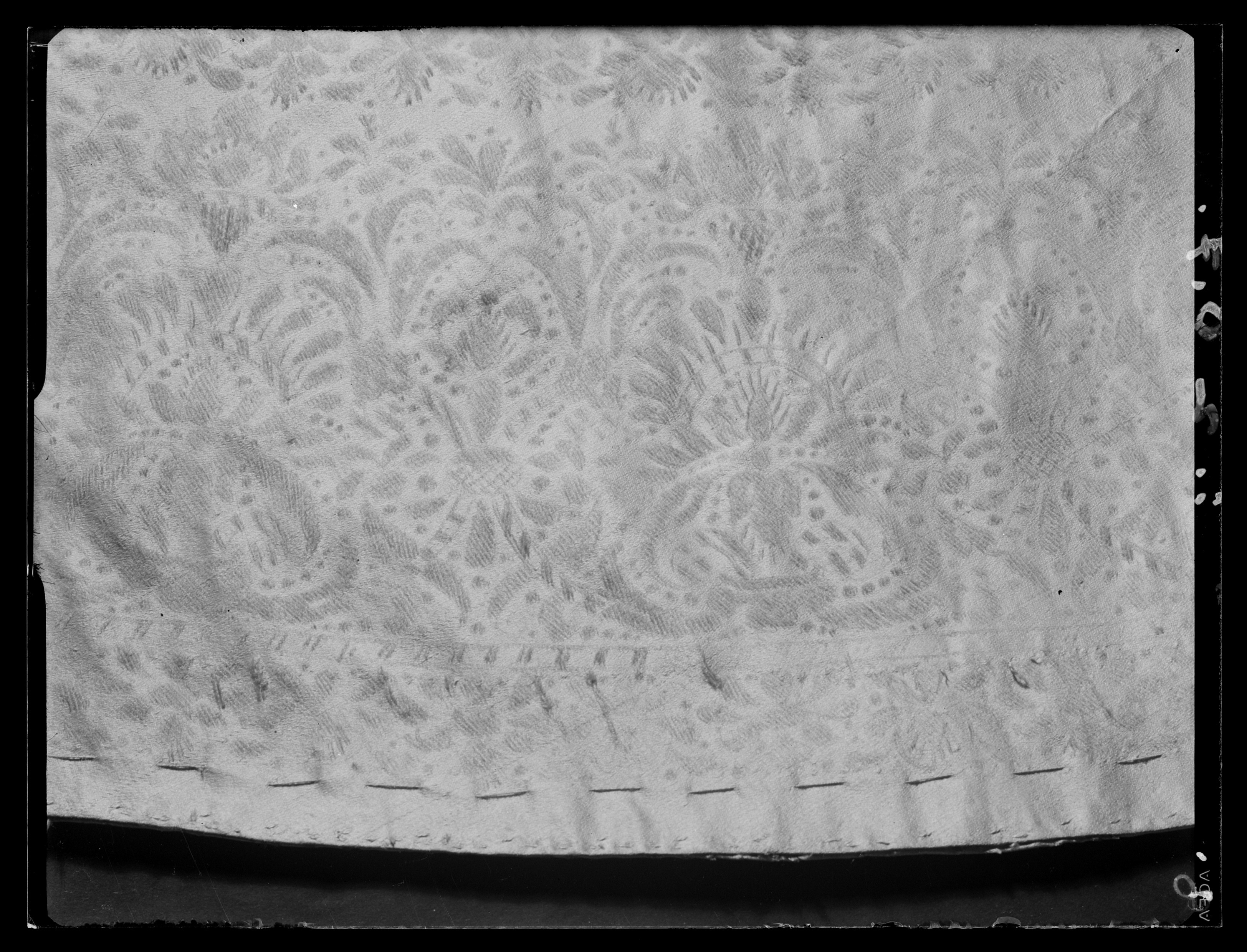 Anm. Först nämnd i Klädkammarens räkenskaper 1654. Buren av Karl X Gustav vid kröningsceremonien i Uppsala domkyrka den 6 juni 1654, troligen tillsammans med vita skor och handskar och en svart hatt med vita plymer. Dräktens ytdekor utförd 1654 av pärlstickaren Friderich Feuerbrun. Tröjan är av innocenttyp, skuren i 2 framstycken, utefter vilkas framkanter staden ligger, 1 bakstycke, 10 små skört, 2 svängda ärmstycken till varje ärm samt ståndkrage skuren i ett enda svängt stycke. Längs vänster framkant går en knapphålsrad med 21 knapphål (2 cm långa, sydda med vitt, högertvinnat silke c:a 9 stygn/cm över 1 tråd). Endast 19 av knapparna är kvar på motsatta sidan. De är klädda med silvertråd (d: 1,2 cm). Ståndkragens samtliga 3 knappar är i behåll. Kragen som framtill är 5 cm hög och 3,5 cm hög baktill har för knäppningen på vänster sida 3 st i flätteknik utförda silversnören. Kragen är fastkastad vid halsurringningen med vitt, högertvinnat silke. Den är styv med mellanfoder av grovlinnelärft (16x14 tr/cm2) med insydda fiskben. Dess foder utgörs på insidan av vit taft (54x52 tr/cm2). På de båda framstyckena har ytterligare ett stycke atlas, med samma mönstring, av 10-14 cm bredd fästs ovanpå det "ordinarie" tyget, liksom små flikar extratyg sytts på de 2 främsta skörten. Tröjan är f.ö. hopsydd av tygstycken, som inte alltid passats ihop med samma precision som den rundskurna kappan. Ärmarna är, som vanligt, öppna utefter den svängda inre sömmen sånär som på de 14 nedersta cm som bildar uppslaget. Nedtill i ärmarna finns också ett mellanfoder av grov, oblekt linnelärft (17x15 tr/cm2), det gällde att få styrsel i uppslagen. Tröjan är fodrad med silverbrokad, dess vådbredd är minst 51 cm. (66x17 á 18tr/cm2). Botteninslaget har på rätan silverlan. Mot detta avtecknar sig blommönstret i flotterande trådar utan metalltrådstillsats. Silket är vitt och otvinnat. Staden är 0,9 cmbred. (13 gröna, 4 orange, 11 gröna, 1 vit och orange tjockare tråd. Tuskaft). Mönsterrapport: h: 7,3 cm, b: 6,8 cm. Mönstret är detsamma som fodret i tröjan nr 3386.Tröjan är helt mellanfodrad med grov linnelärft (16x13 tr/cm2). Mitt fram i de till en spets utdragna framstyckena är planschetter inlagda, som når till en höjd av 21 cm. Av den ursprungliga dekoren av silverspetsar återstår nu blott ett fragment på den översta knappen. Antagligen har spetsen löpt som en 4 cm bred garnering runt plaggets sömmar och kanter. De har rönt samma öde som kappans spetsar. I midjan sitter på insidan i tröjan 8 st byxtampar av foderbrokaden vardera med 2 hål.