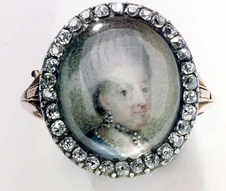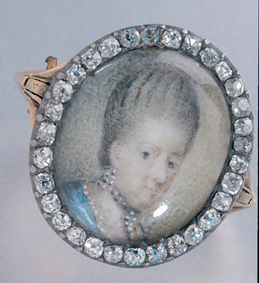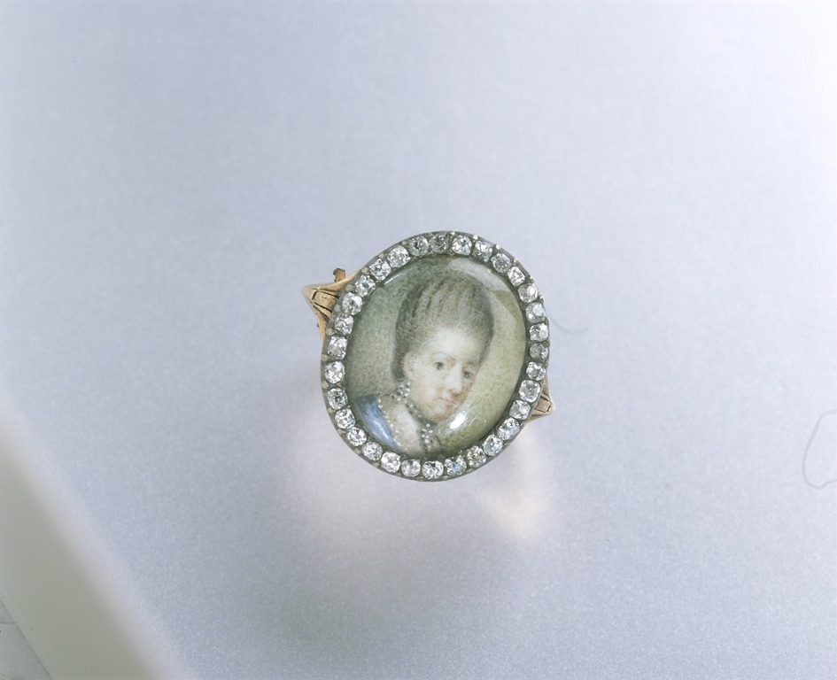 Ring med miniatyrporträtt av Lovisa Ulrika, A U Berndes, cirka 1770.
