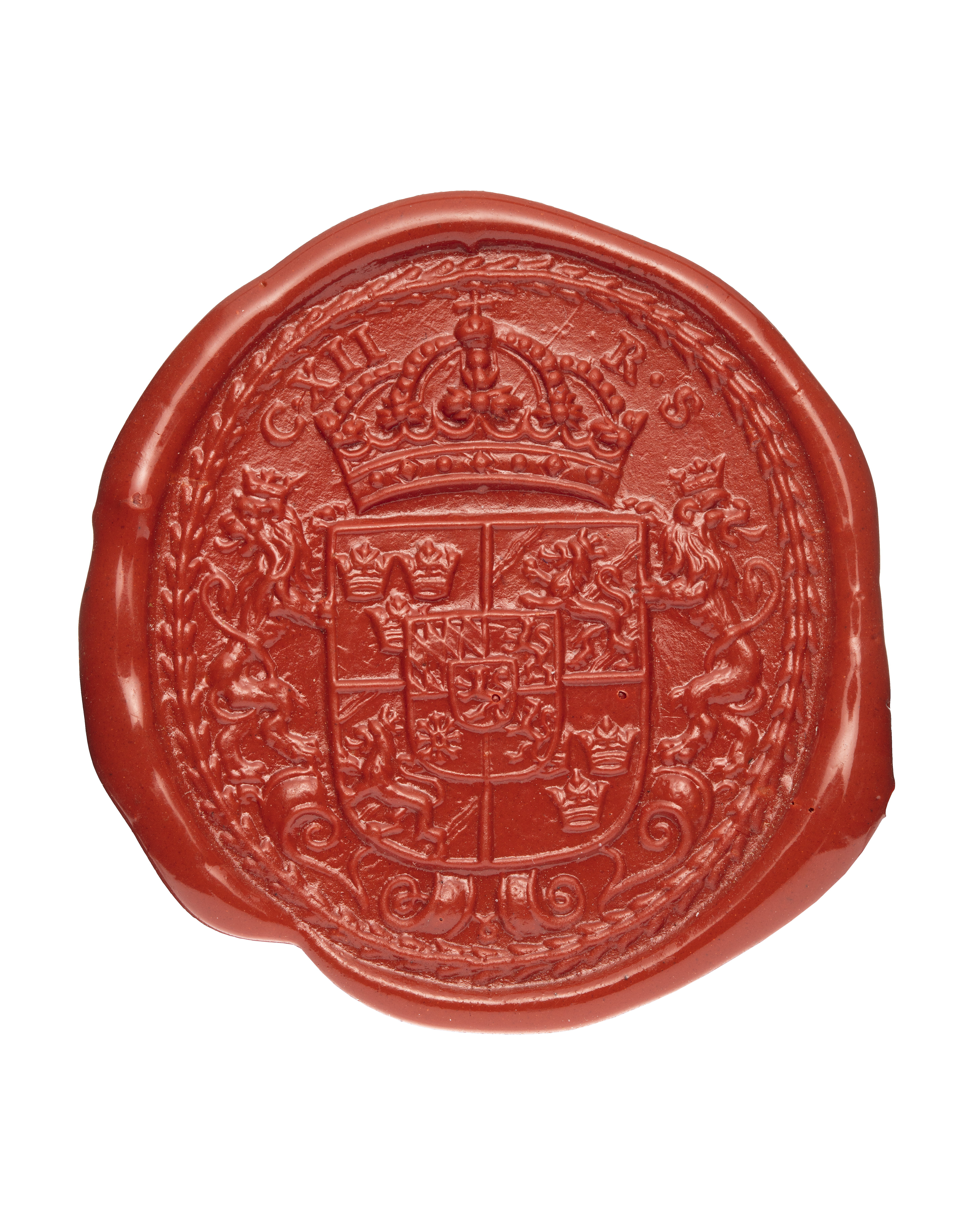 Signet, använt av Karl XI och Karl XII, graverad av Arvid Karlsteen för Karl XI 1681-07-12.