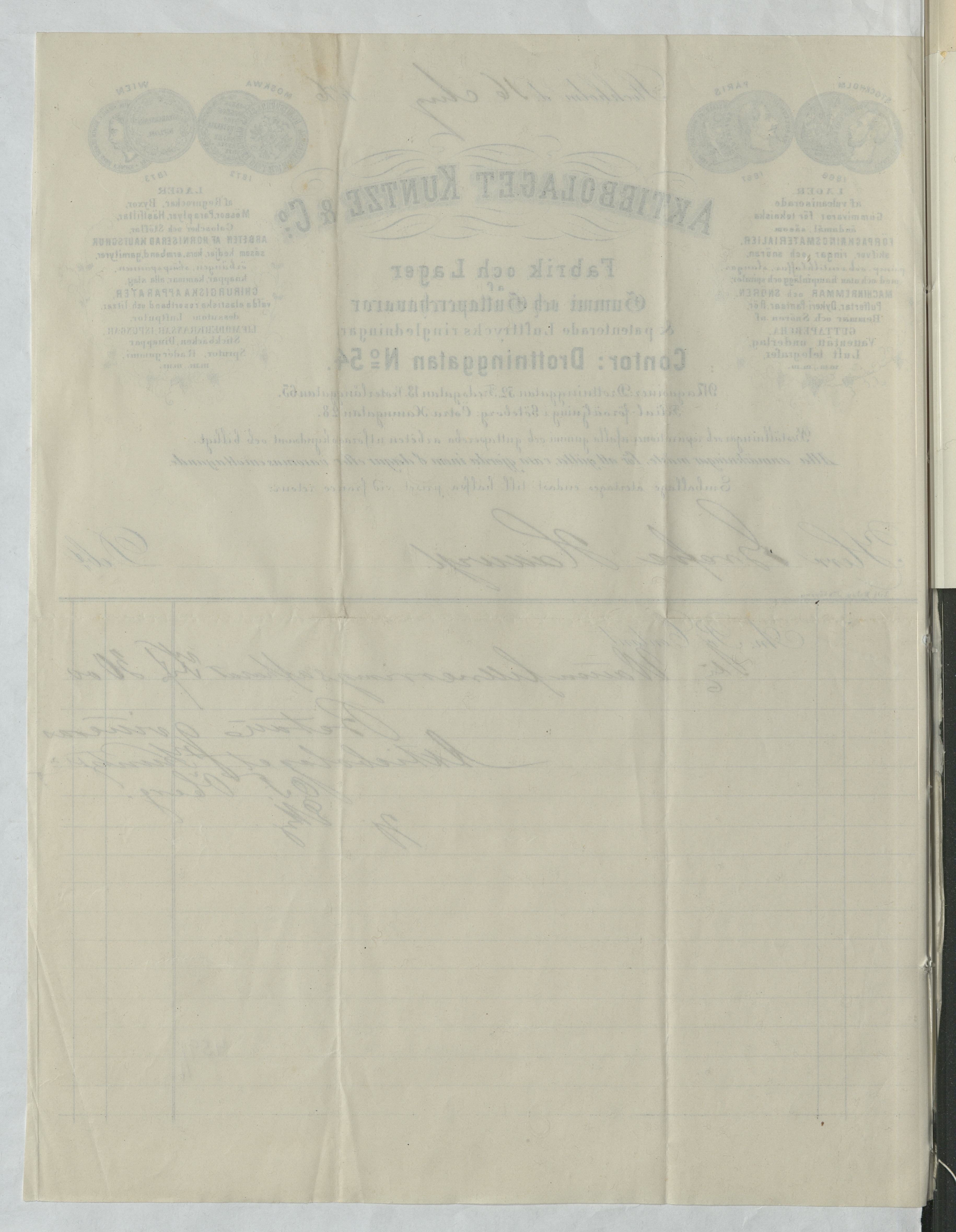 Kvitto från Aktiebolaget Kuntze & C:o, Fabrik och Lager af Gummi och Guttaperkavaror