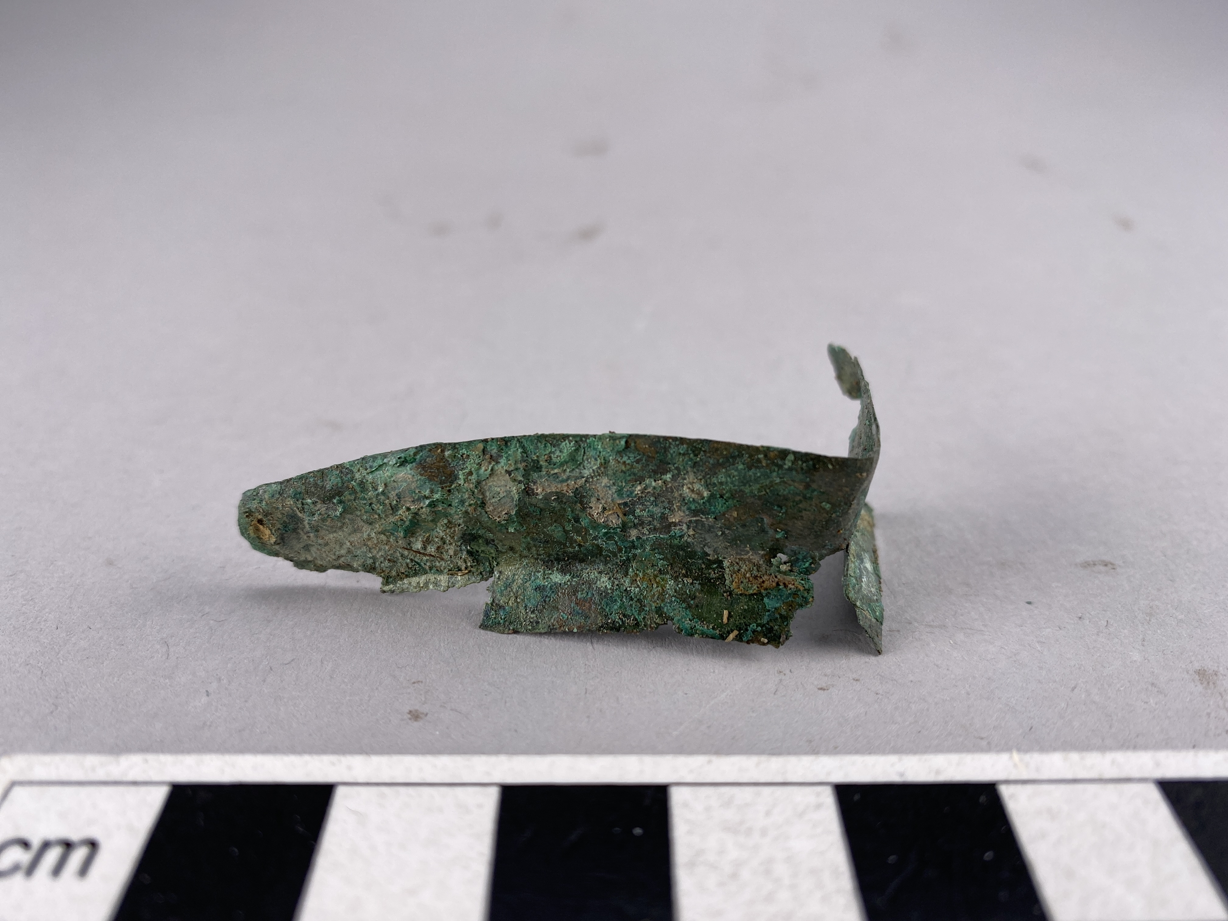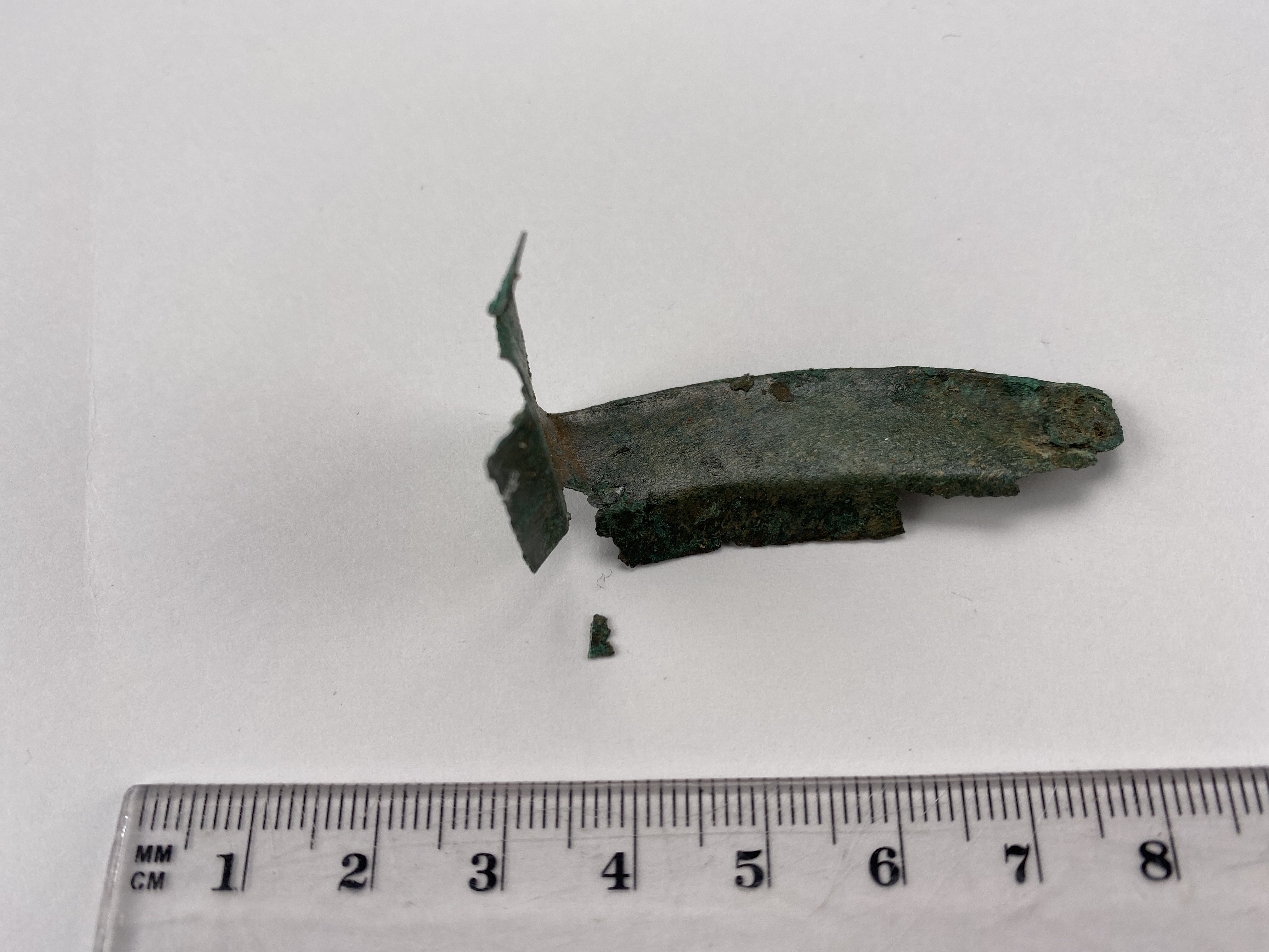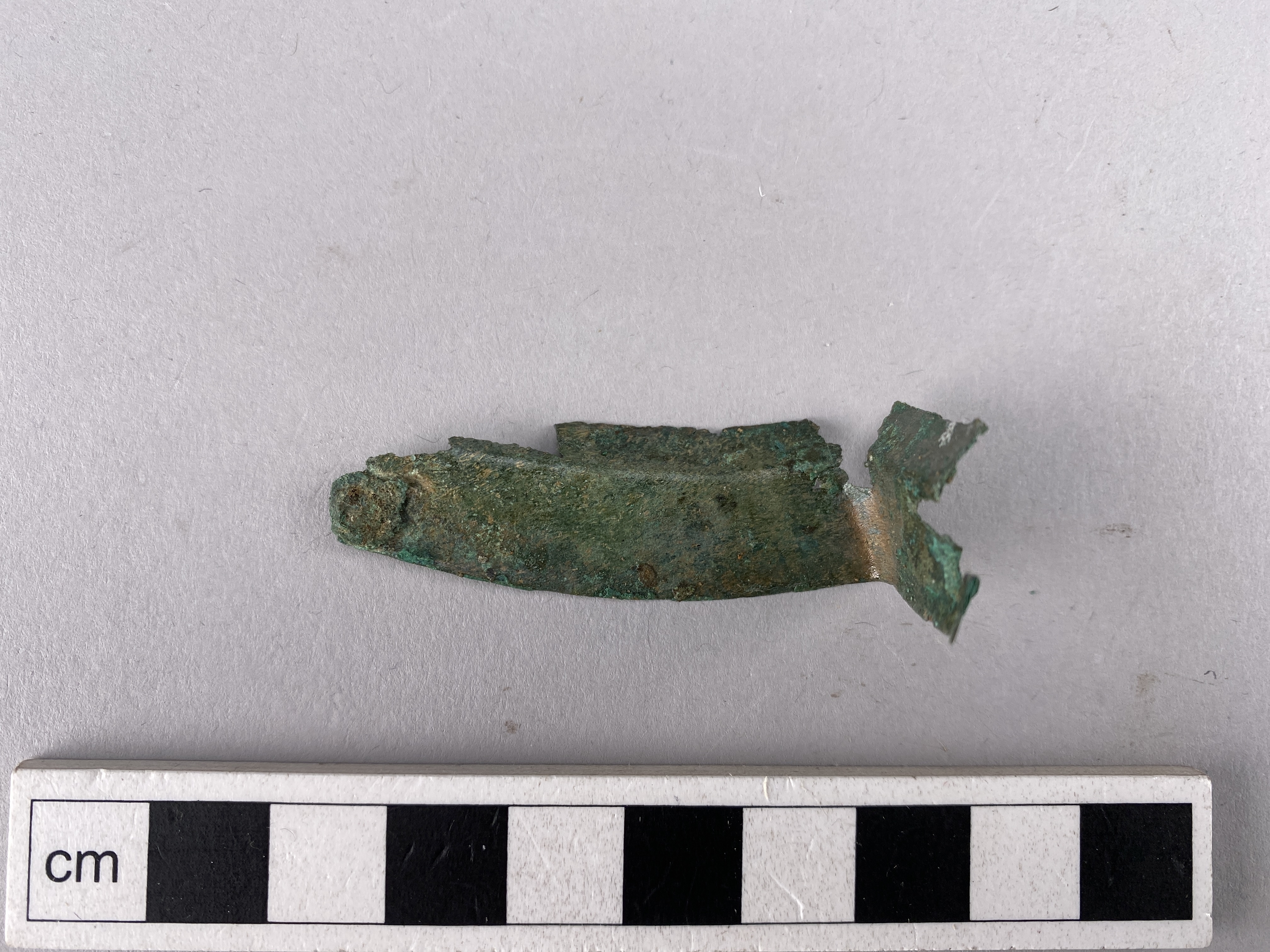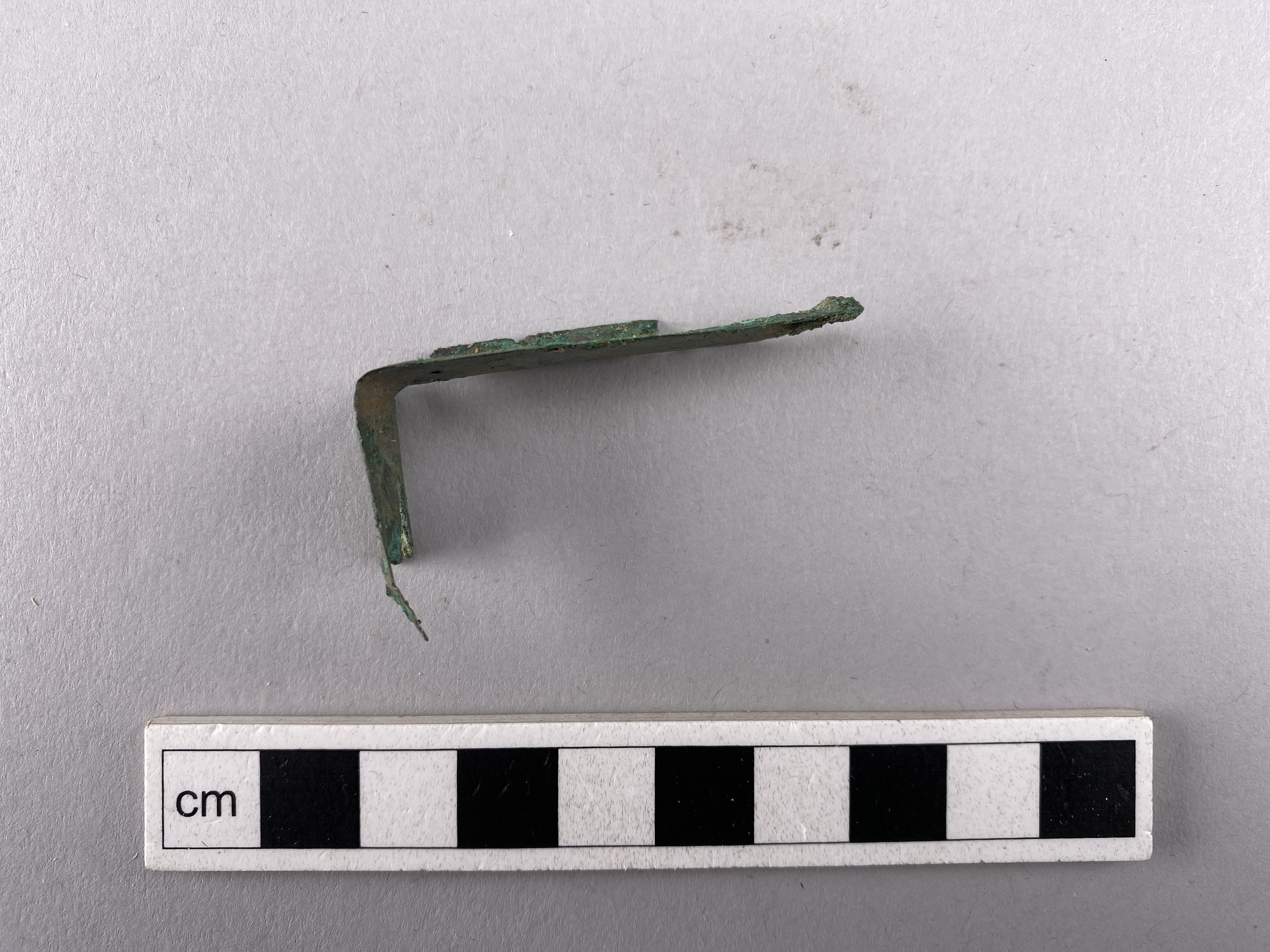 långsmalt plåtfragment tillyttre del av en av plattorna. Vikt i längdriktningen