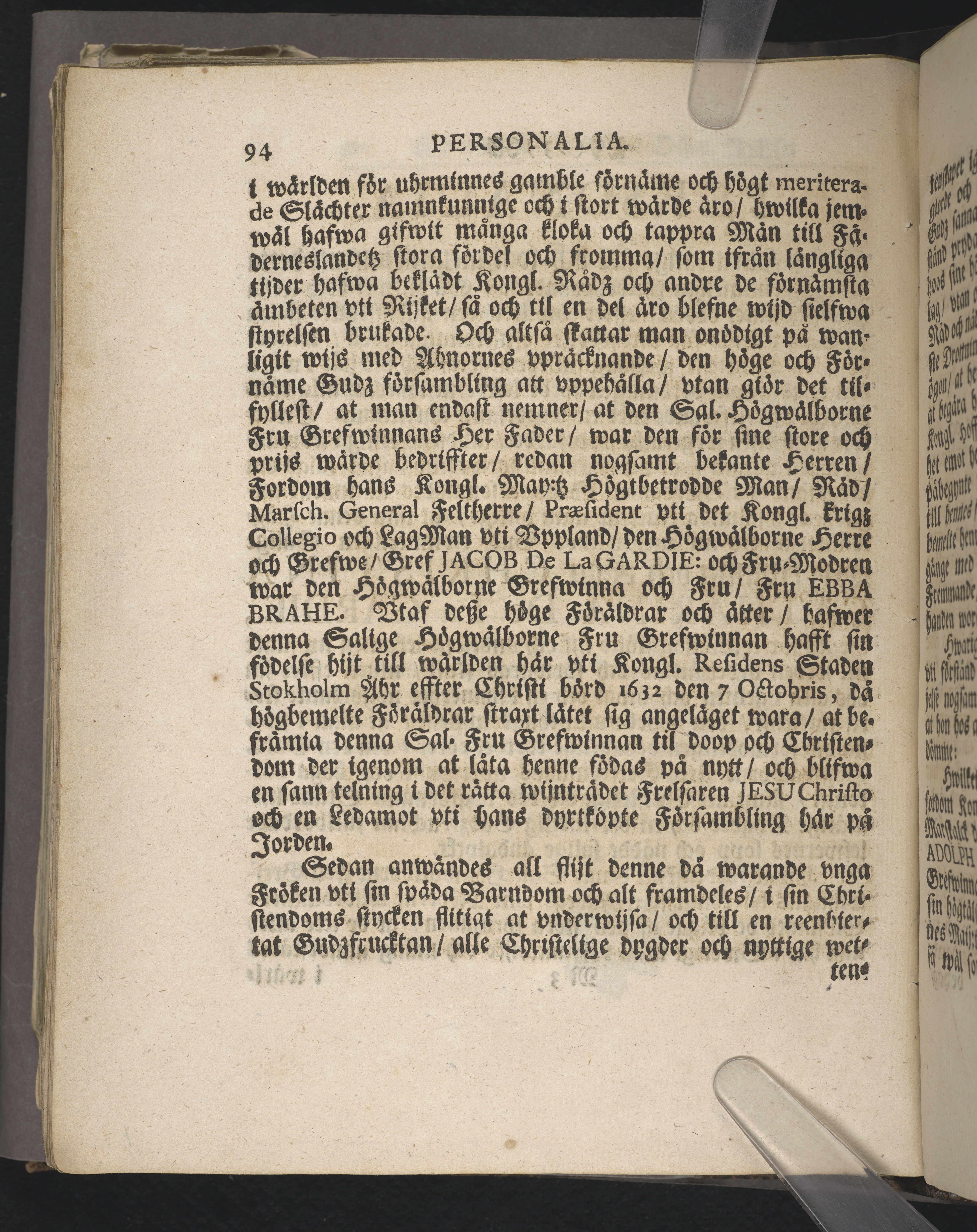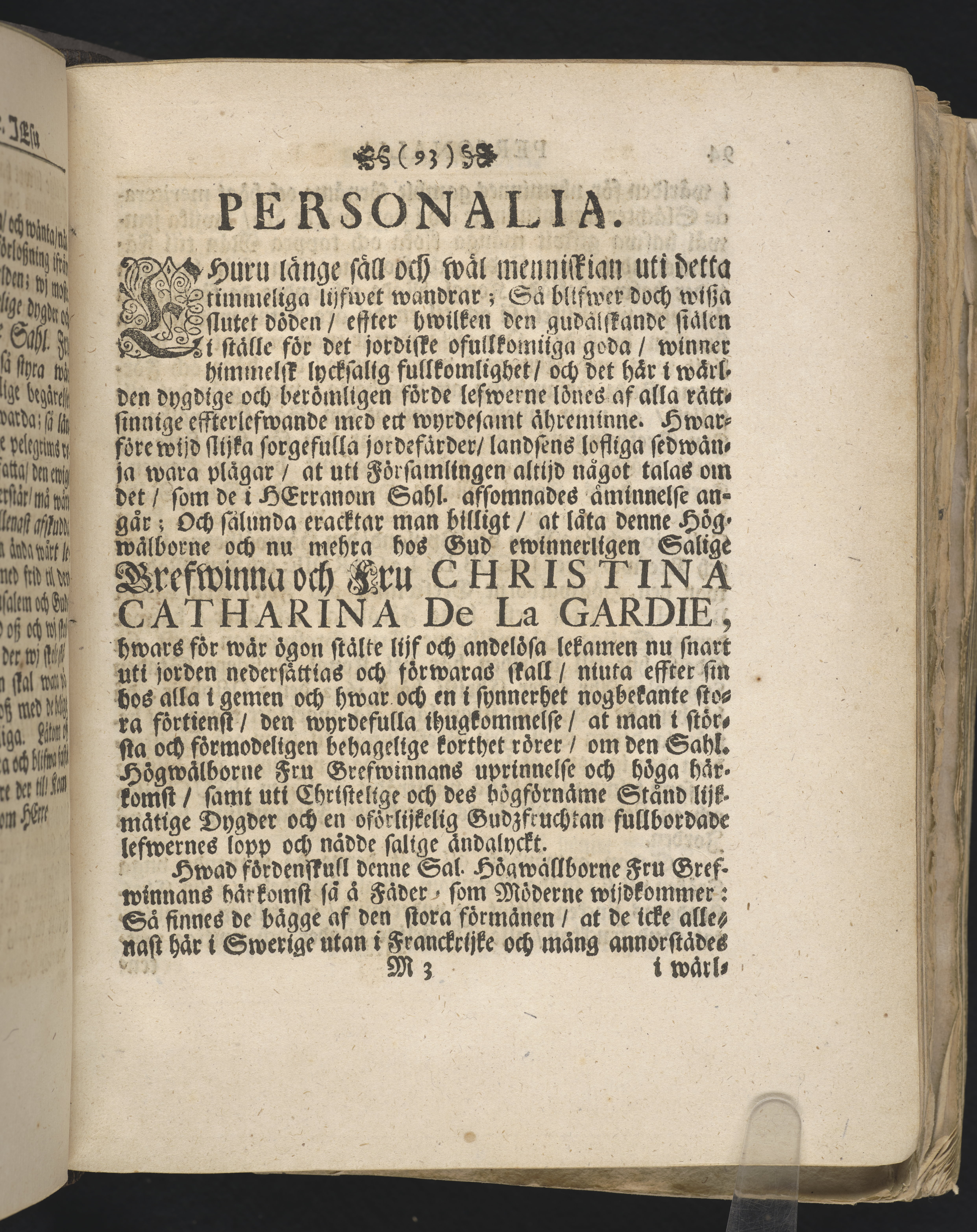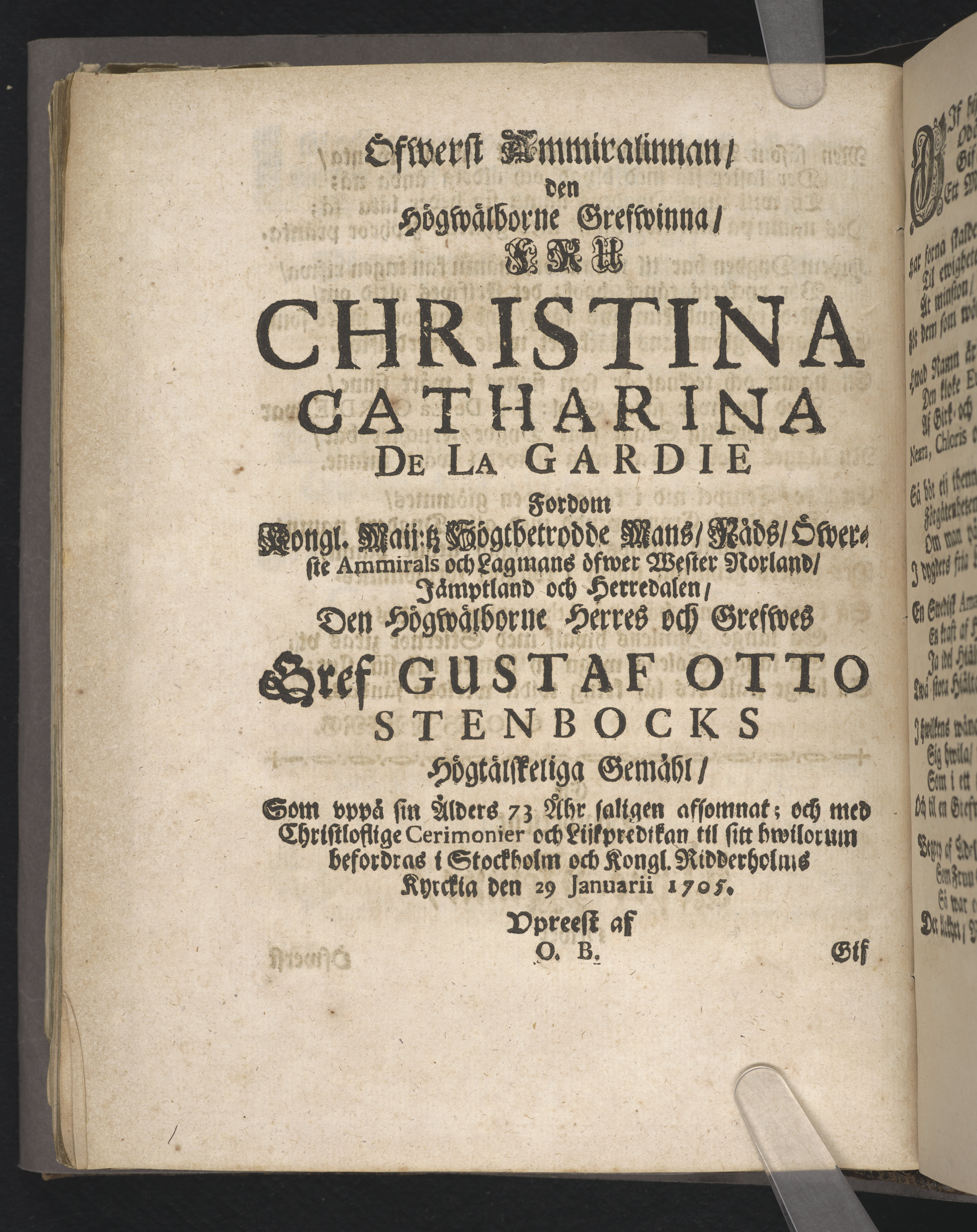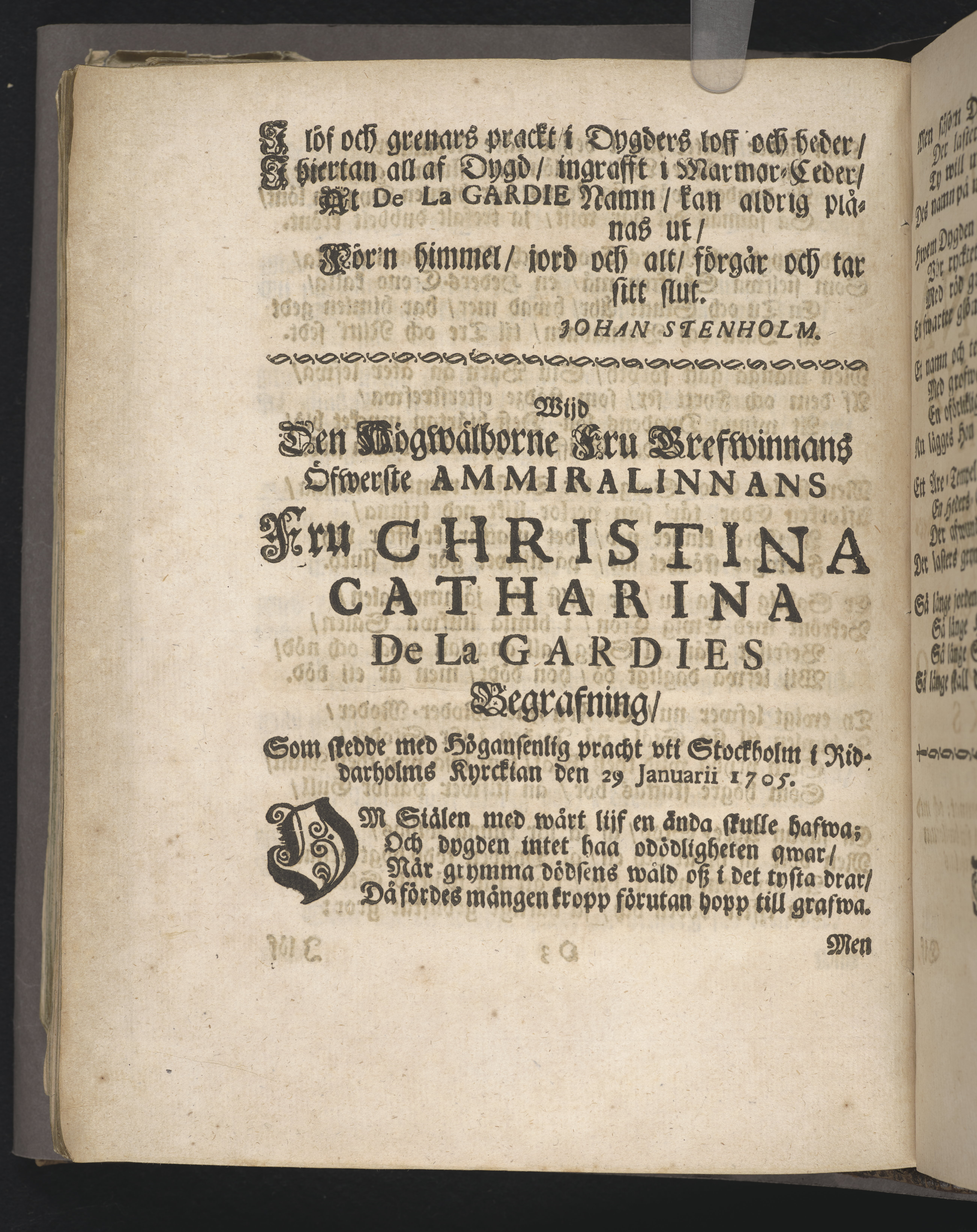 Begravningen av Christina Catharina De la Gardie (Omnämnd på/i)