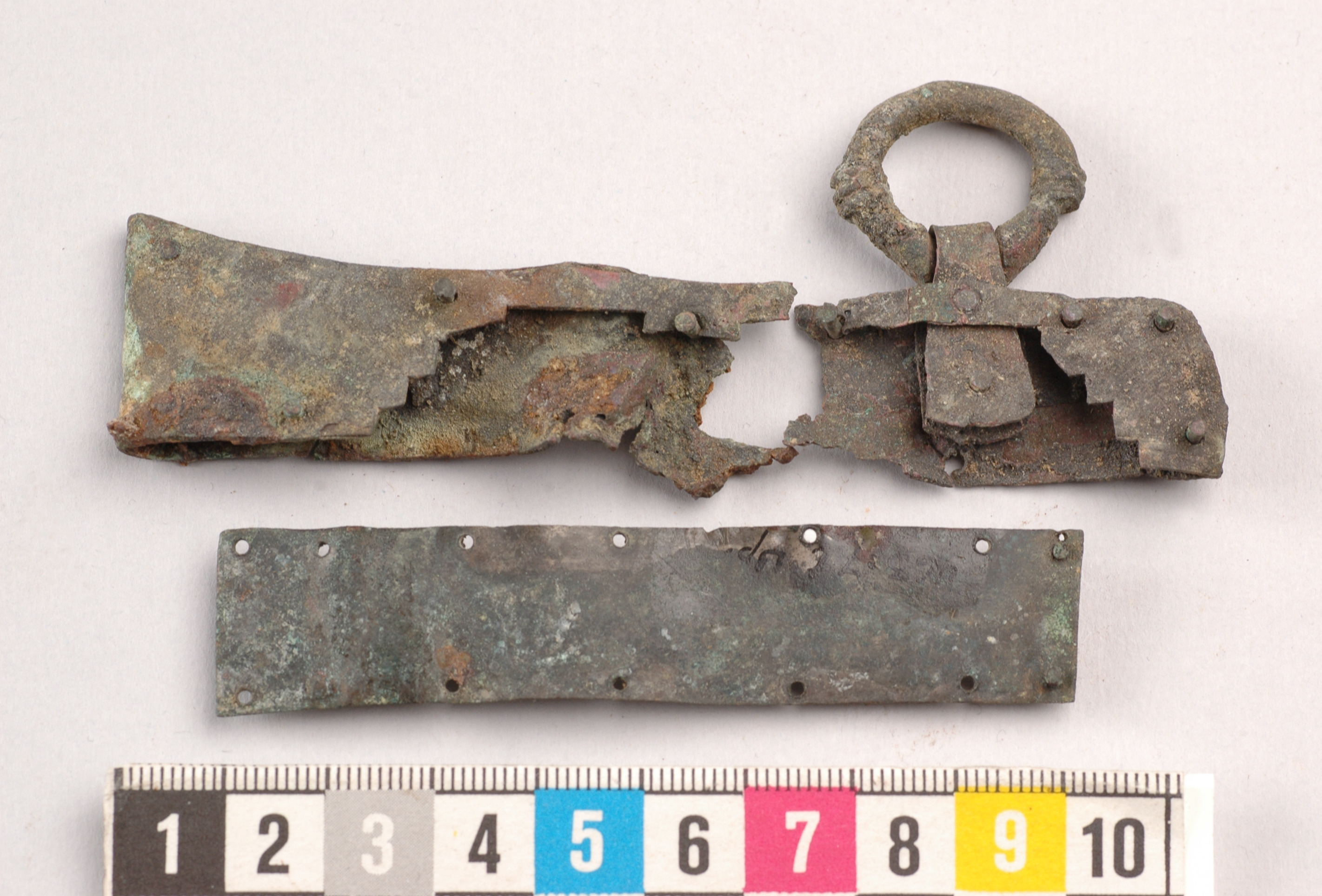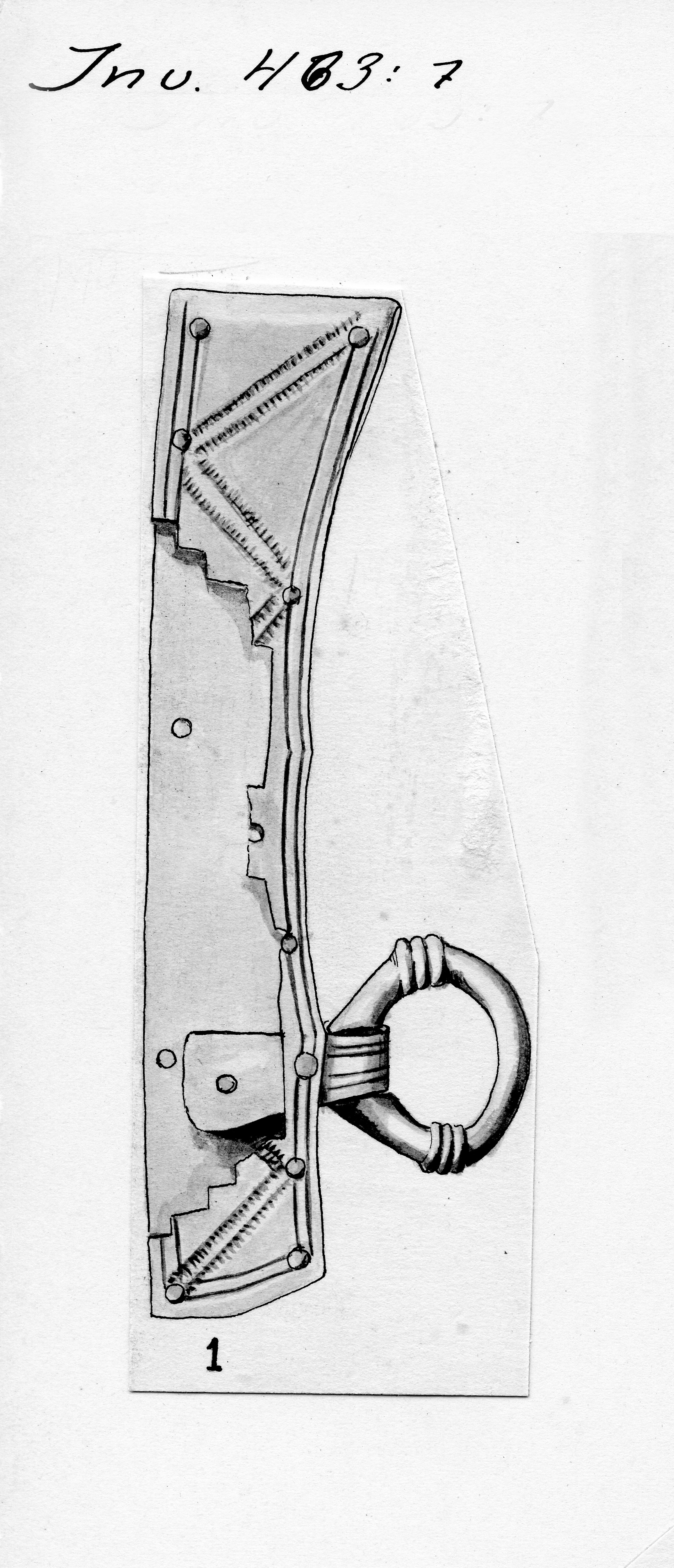 3 fragmentariska knivslidebeslag från en vapenknivsilda - sannolikt till 463:7h