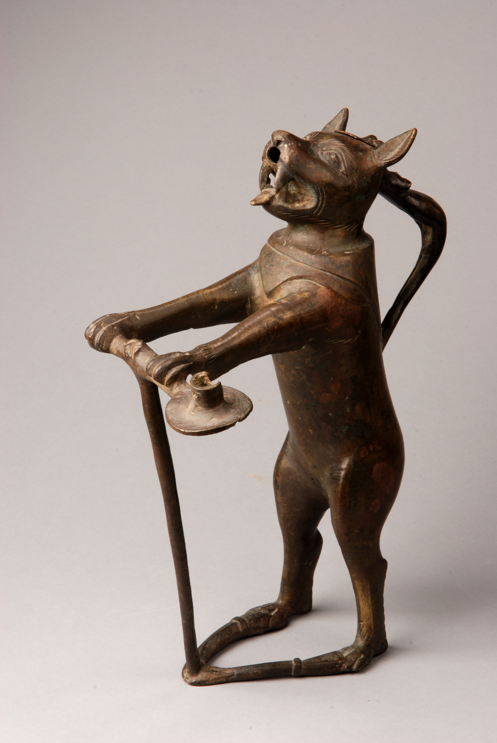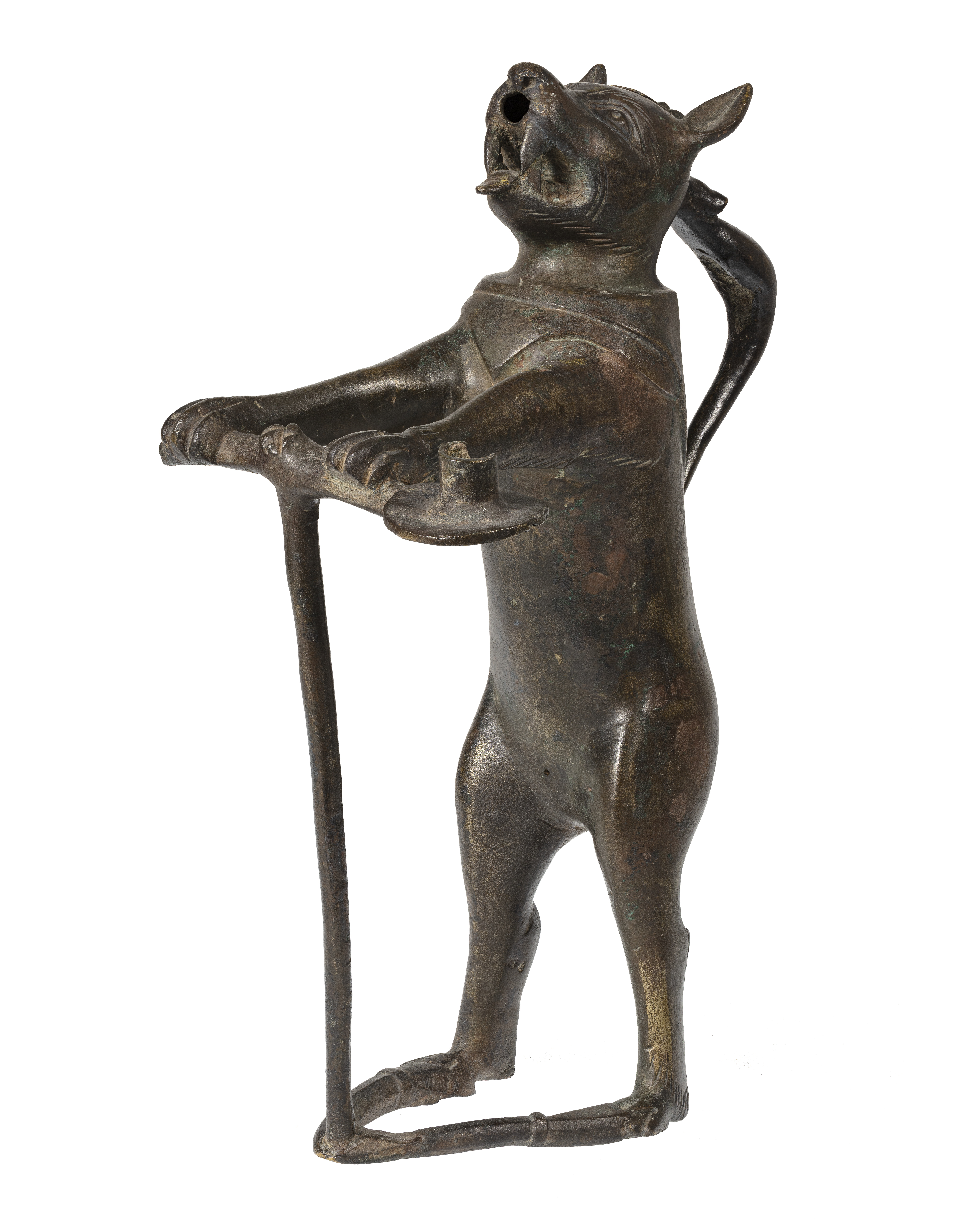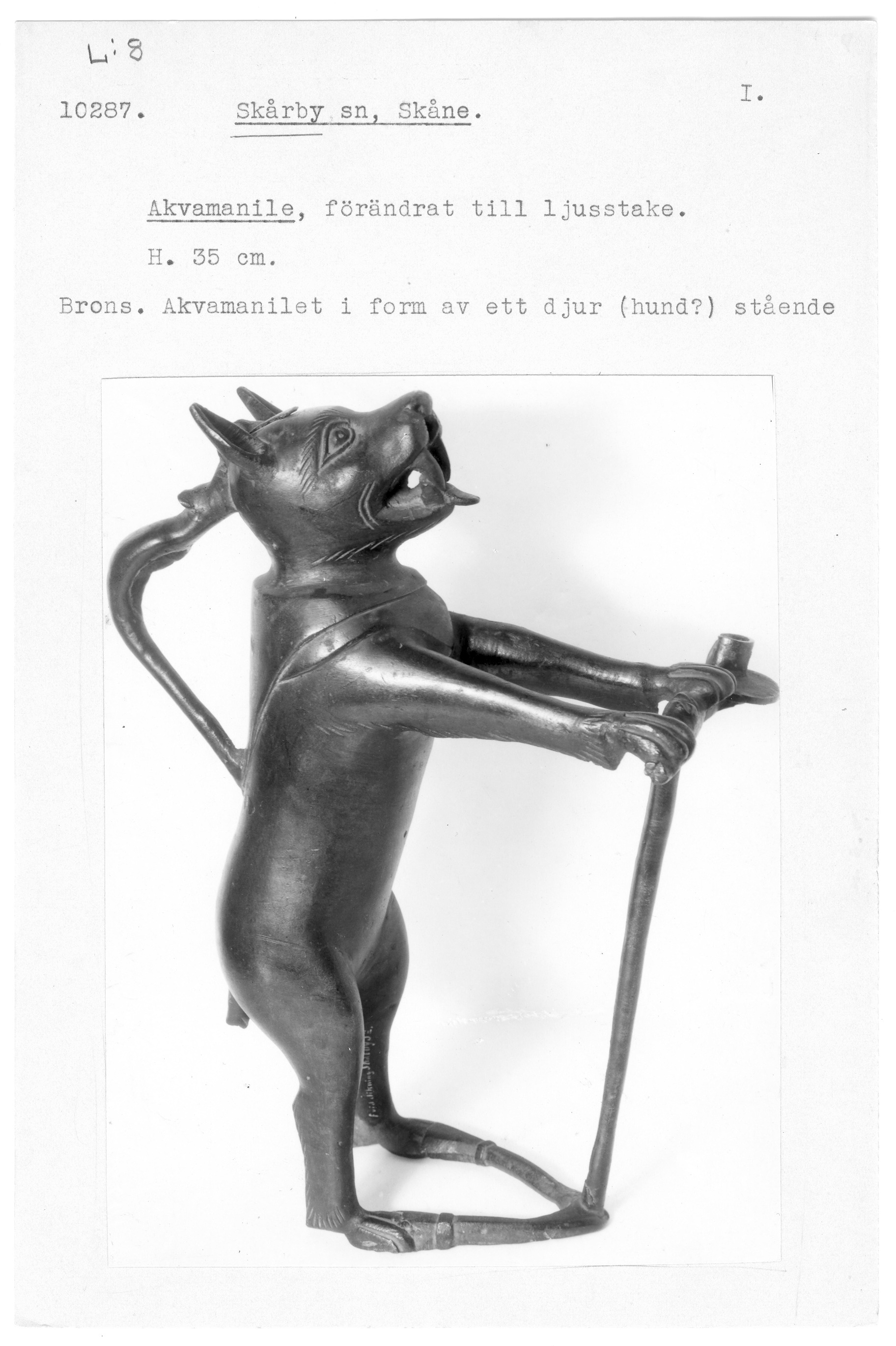 Akvamanile/ljusstake i form av en räv. En ljushållare sitter vid rävens vänstra framtass. Eventuellt har det funnits en ytterligare en ljushållare vid andra tassen.