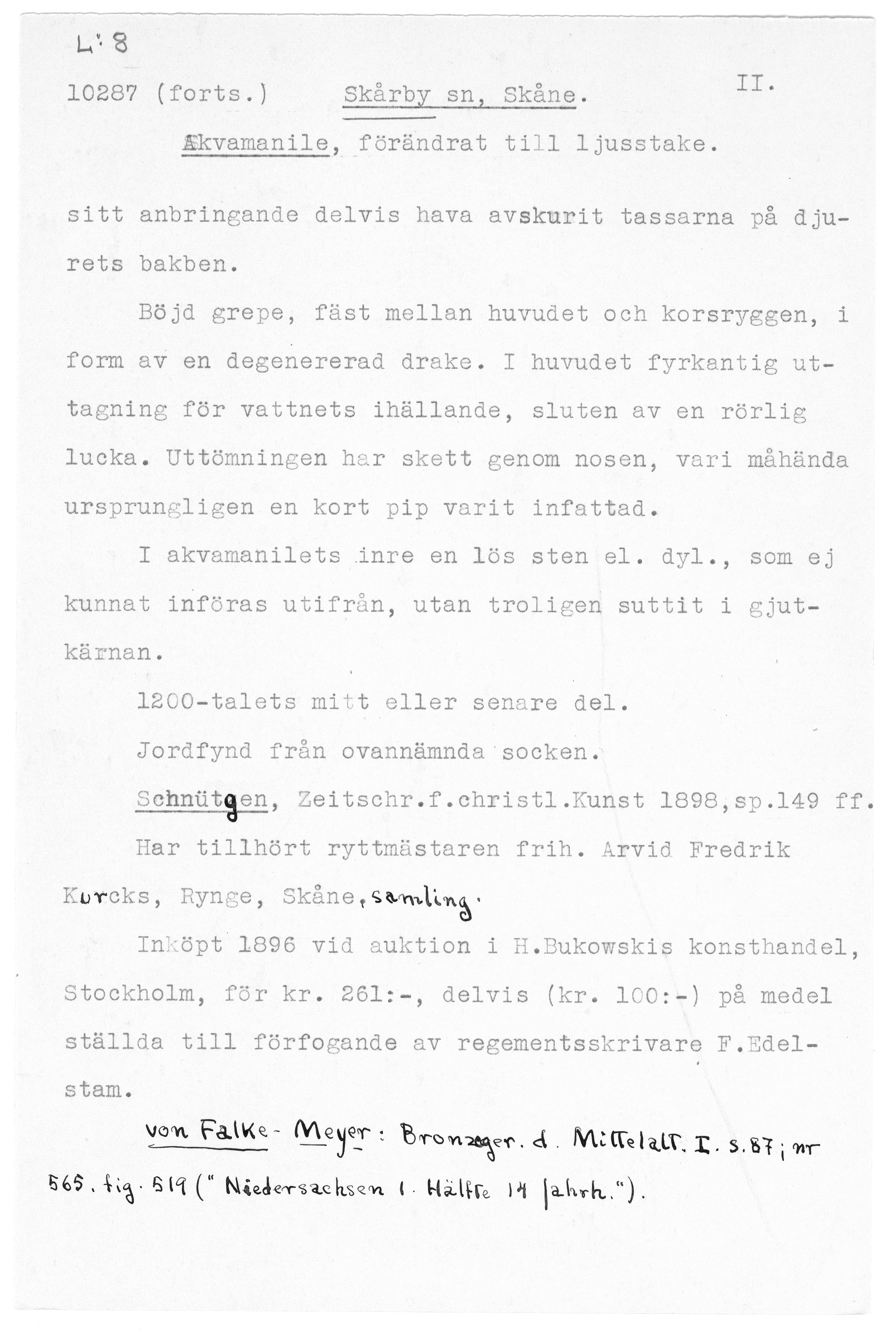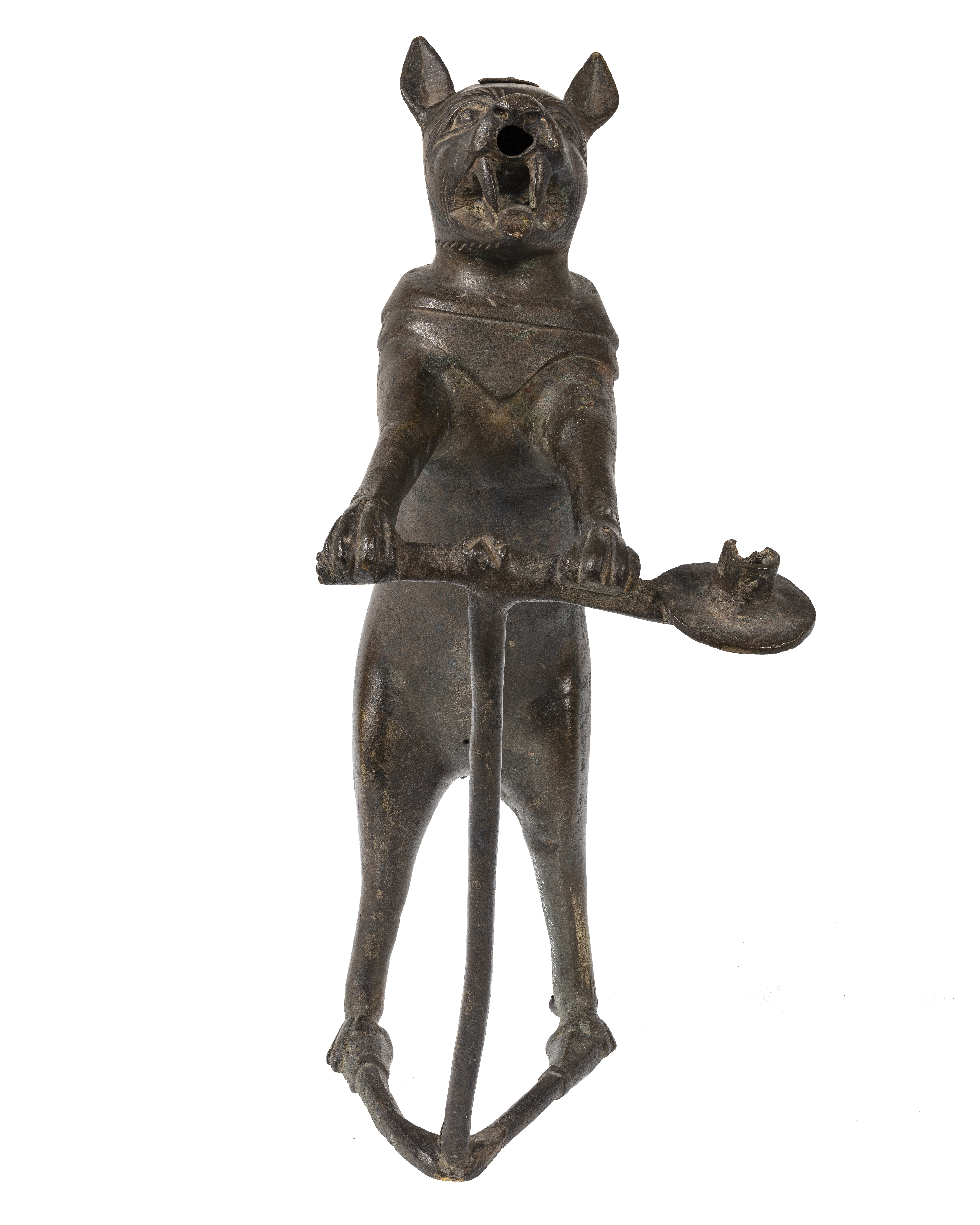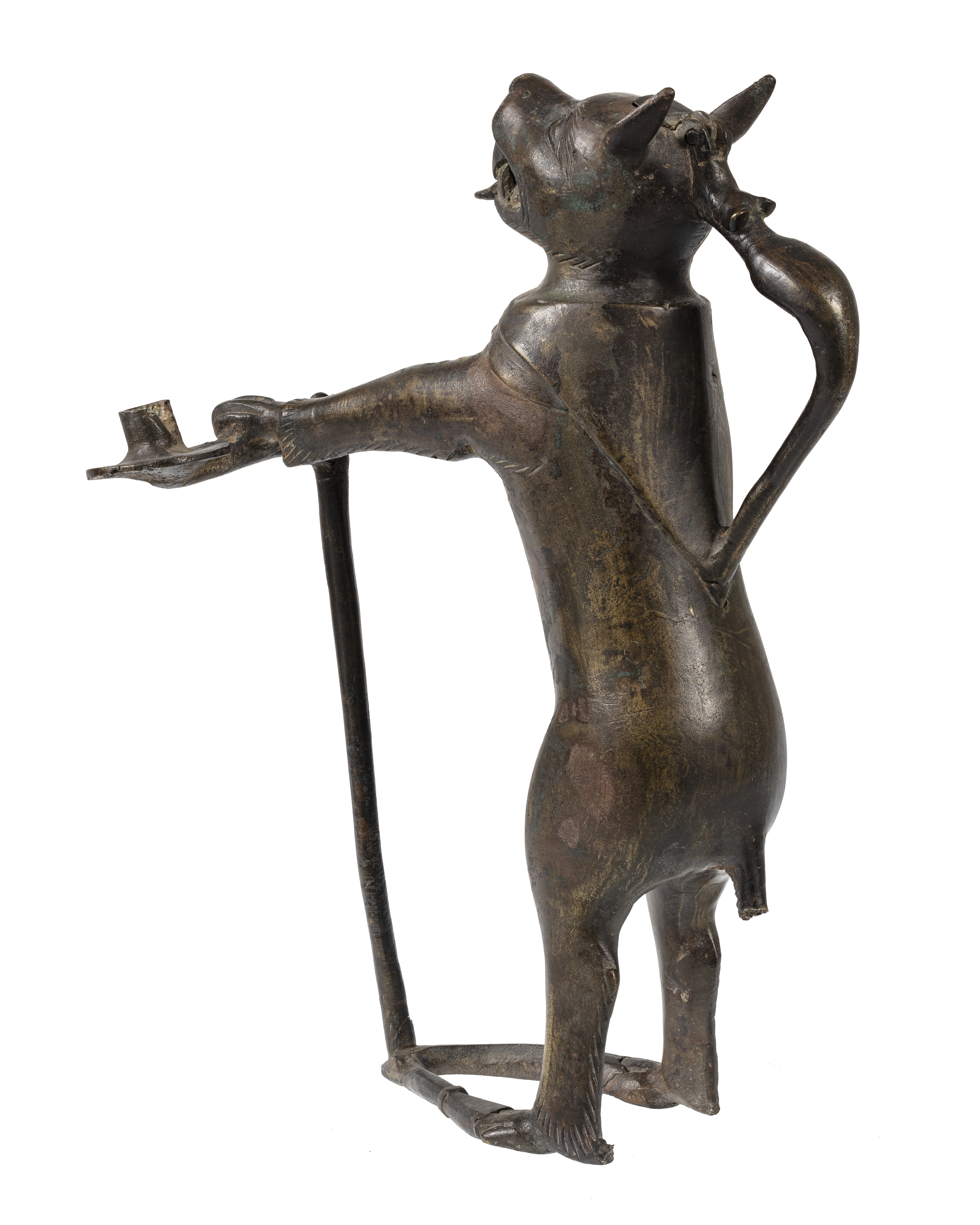 Akvamanile/ljusstake i form av en räv. En ljushållare sitter vid rävens vänstra framtass. Eventuellt har det funnits en ytterligare en ljushållare vid andra tassen.