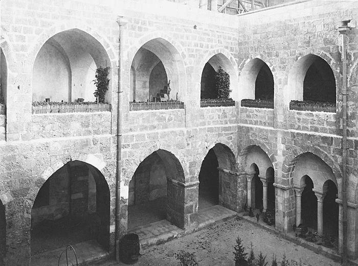 Interiör från handelskvarteren Muristan i Jerusalem. Text på originalet: "Interior of the Muristan/Intérieur du Mouristan". Fotografierna LXVI:N.01.-180. kommer från resan till Palestina och Syrien som Wilhelmina och Walther von Hallwyl gjorde den 30 mars-27 april 1901. De lämnade Sverige den 5 november 1900 för Egypten, där de stannade till den 28 mars 1901, då de fortsatte till Palestina. Med på resan var Wilhelminas sällskapsdam, fröken Ida Uhse. Den 27 april fortsatte de till Turkiet och Mindre Asien. De mindre fotografierna (utom de från Samos) LXVI:N.90.-100. är tagna av Wilhelmina själv, under en resa till häst från Jerusalem till Damaskus 8-20 april 1901. Övriga fotografier är inköpta av Wilhelmina i Jerusalem, Damaskus och Beirut. Alla uppgifter kommer från Ida Uhses reseanteckningar.
