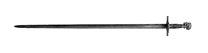 Blank, tveeggad, jämnt avsmalnande mot udden, med rundade sidor och spetsig, något stukad udd. Upptill på vardera sidan en blodrand. Tyskt arbete från omkring 1600. (Ej gjord av italienska klingsmeder i Milano, men falskt angivet som italienskt, eftersom Milanoklingor var eftersökta).