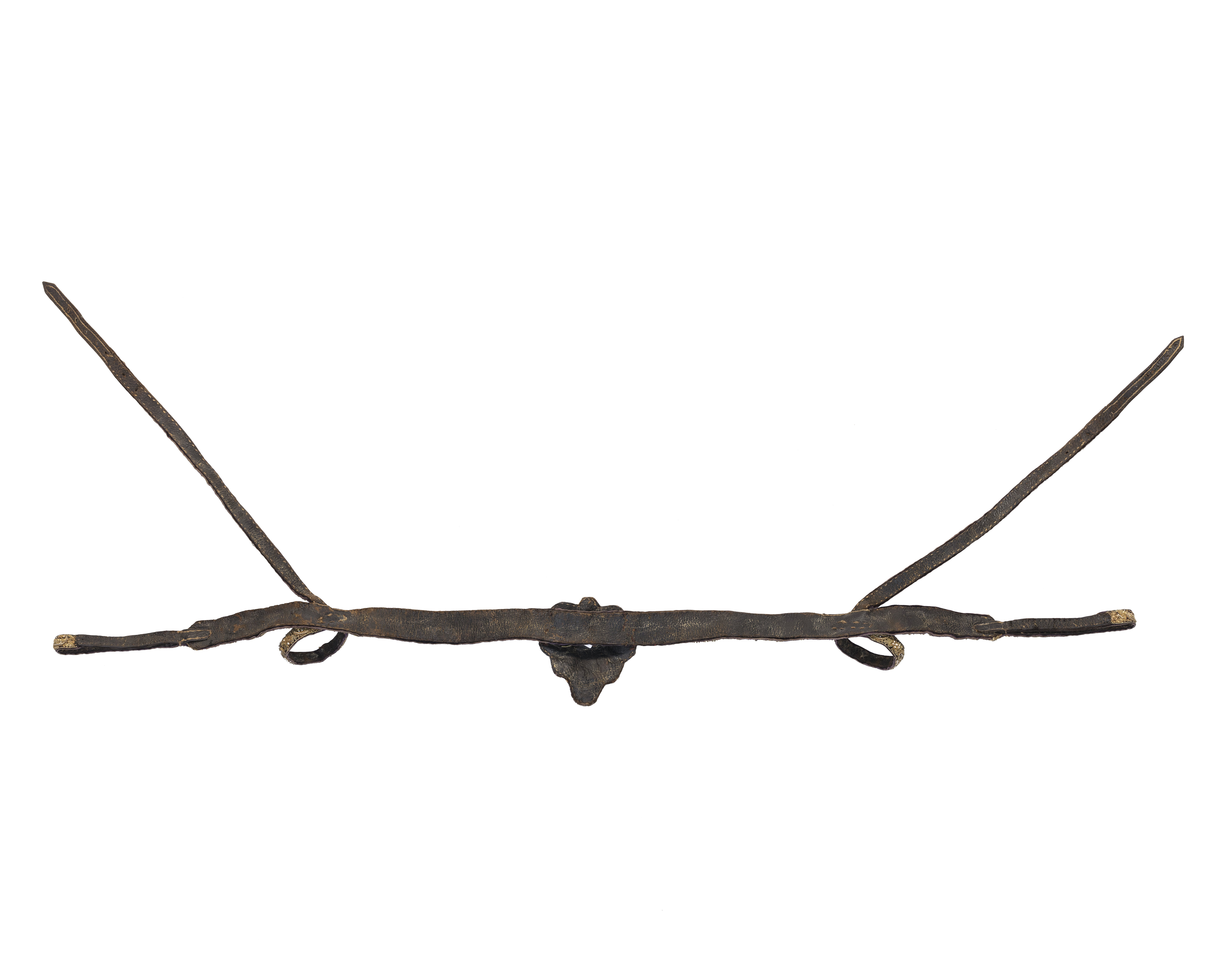 Betselstång af jern, emaljerad med 2ne pucklor och 3 rosetter. På betselstången och rostterne äro infattade 44 stenar (ändrat till 43, 109), på ena puckeln 42 dito och på den andra puckeln 37, eller tillsammans 122 stenar.
