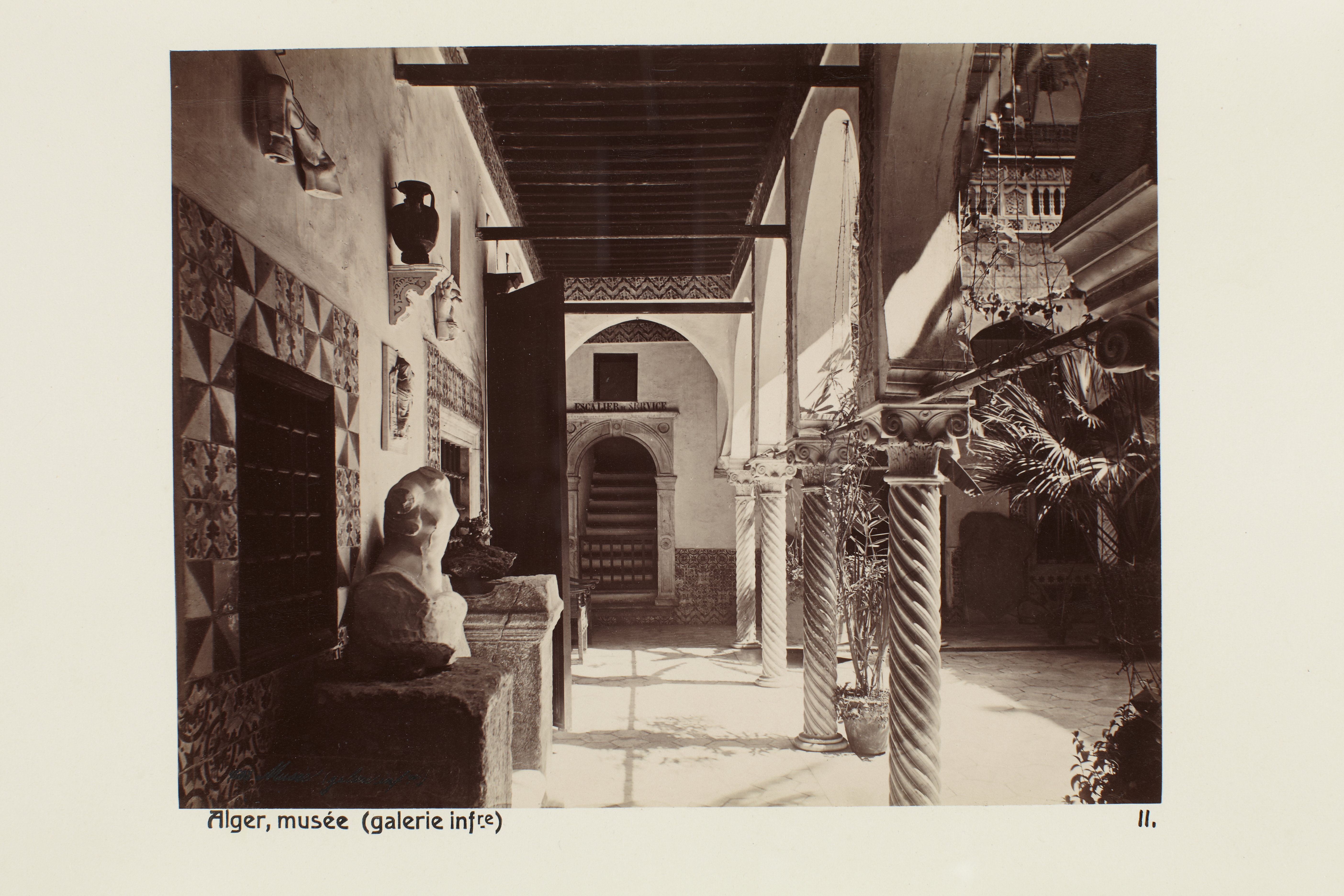 ALGER, Algeriet. Museum (nedre galleriet). Foto från resa genom Algeriet och Tunisien samt åter över Schweiz, 11 februari - 19 maj 1889. Samtliga foton i gruppen LXVI:F. är inköpta av Wilhelmina von Hallwyl i Alger, Biskra, Tunis, Constantine, Oran och Blidah vid hennes vistelse i nämnda städer tillsammans med sin make, Walther von Hallwyl, sin mor, Johanna Kempe, f. Wallis, dottern Irma samt fröknarna Caroline Pflaum och Ida Uhse. Uppgifterna kommer från fröken Ida Uhses reseanteckningar.
