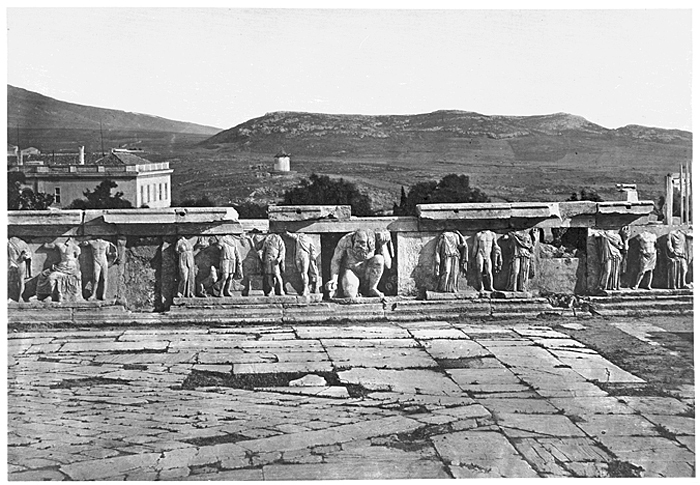 Kimons mur vid Akropolis i Aten, Grekland. Text på originalet: "Athènes. Acropole: Mur de Simon." (Ska vara Cimon). Foto från resa genom Grekland, Makedonien och Serbien, 15 mars-6 juni 1896. Fotografierna LXVI:K.18.-147. är köpta av Wilhelmina von Hallwyl, f. Kempe på Korfu samt i Patras, Nafplion, Aten, Thessaloniki och Belgrad. Med på resan var maken Walther von Hallwyl och fröken Ida Uhse. Uppgifterna kommer från Ida Uhses reseanteckningar.