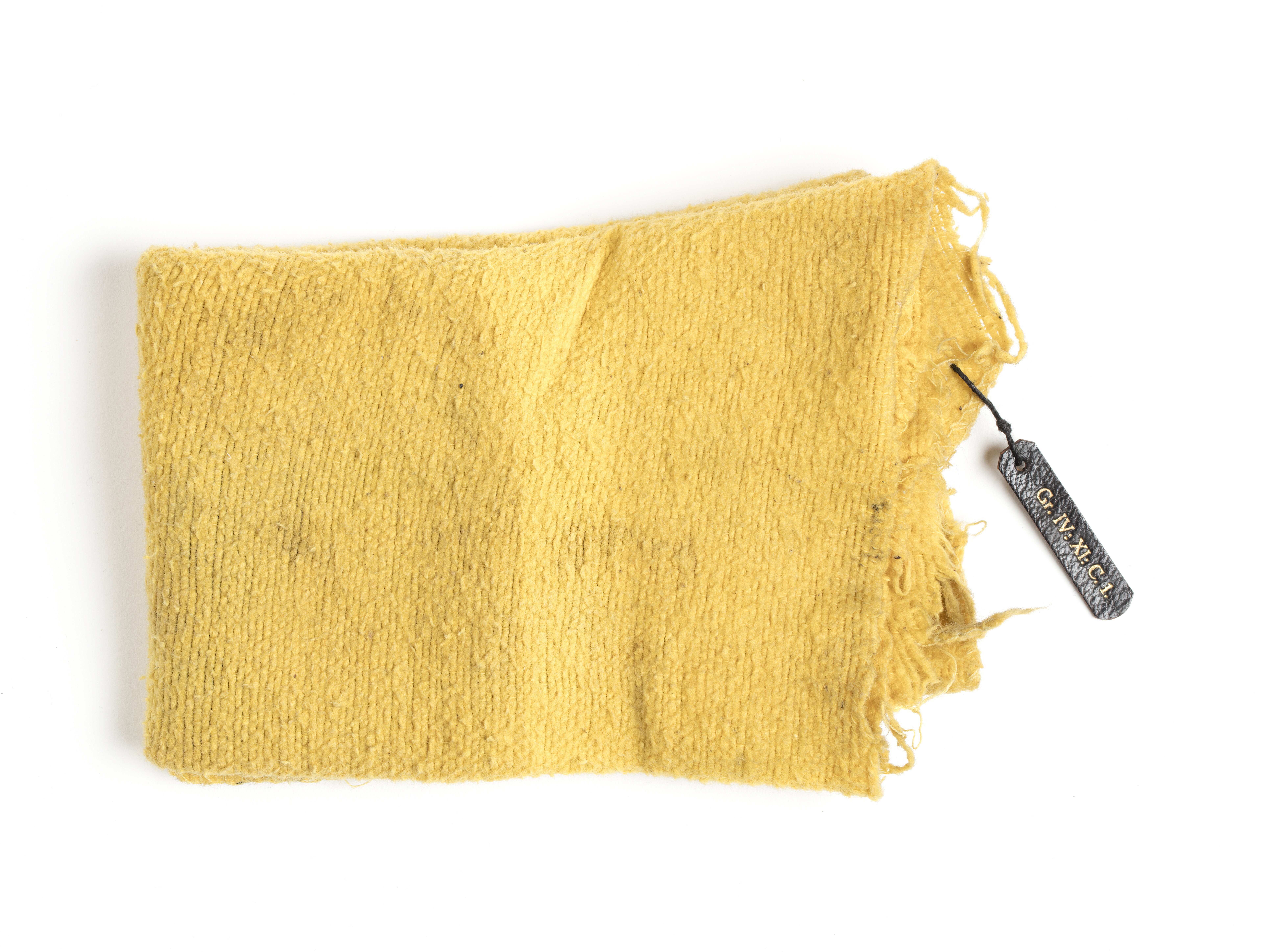 PUTSDUKAR, två stycken. Av gult plyscherat bomullstyg. Rektangulära med rundade hörn och glest langetterade kanter. Längd: omkring 38 och 43 cm, bredd: omkring 30 och 33 cm. Inköpt av Wilhelmina von Hallwyl efter år 1900 hos handlare i Stockholm. Placering: Övre trappskrubben.