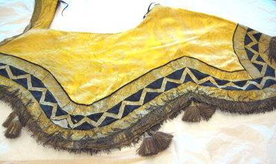 Schabrak som har använts under riddarspelen i hertig Karls kadrilj vid Drottninghomsspelen 1776 och på Adolf Fredrikstorg 1777.