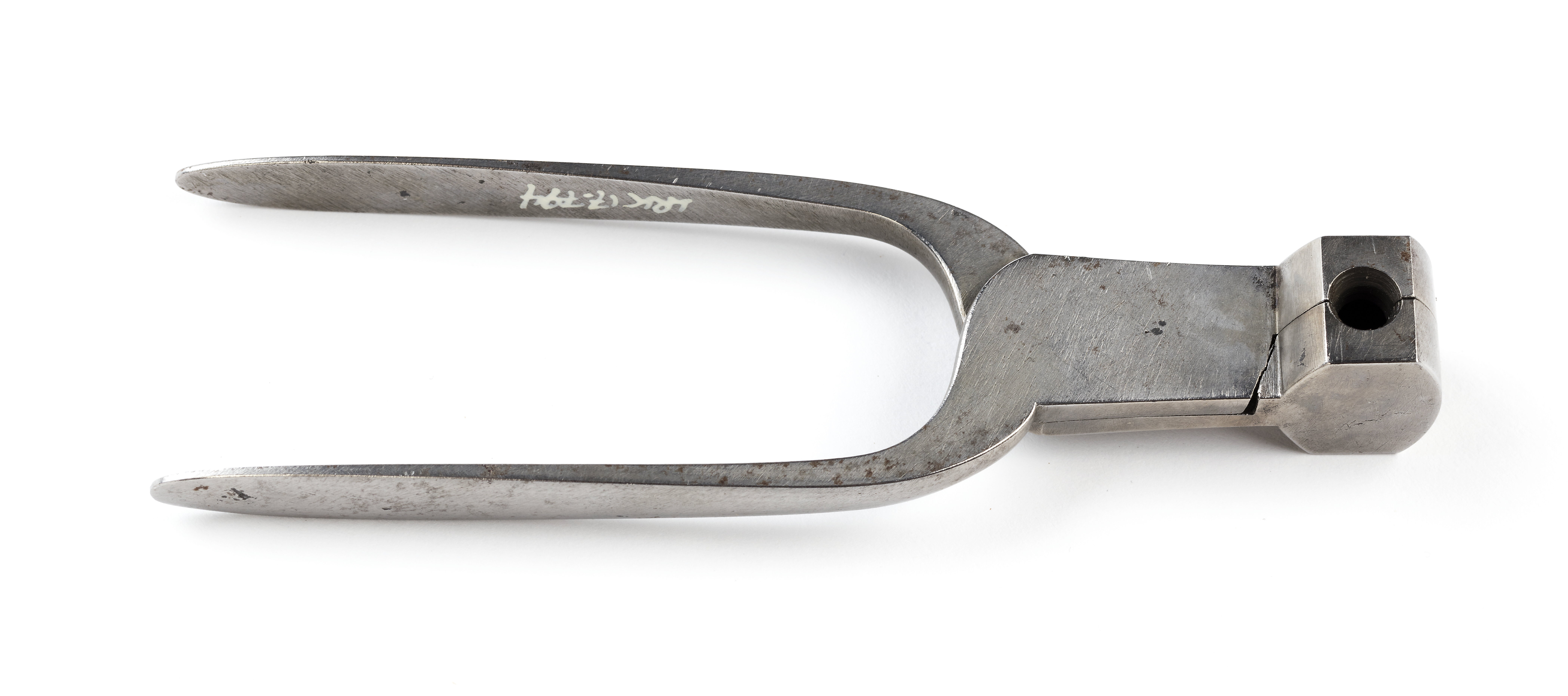 Kultång av stål med u-formiga skänklar, rundade utsidor. Oval gjutform med plan över- och undersida samt fram- och baksida, i framsidan ett runt påfyllningshål med fasade kanter, kullägets diameter:11,3 mm. Tureholm