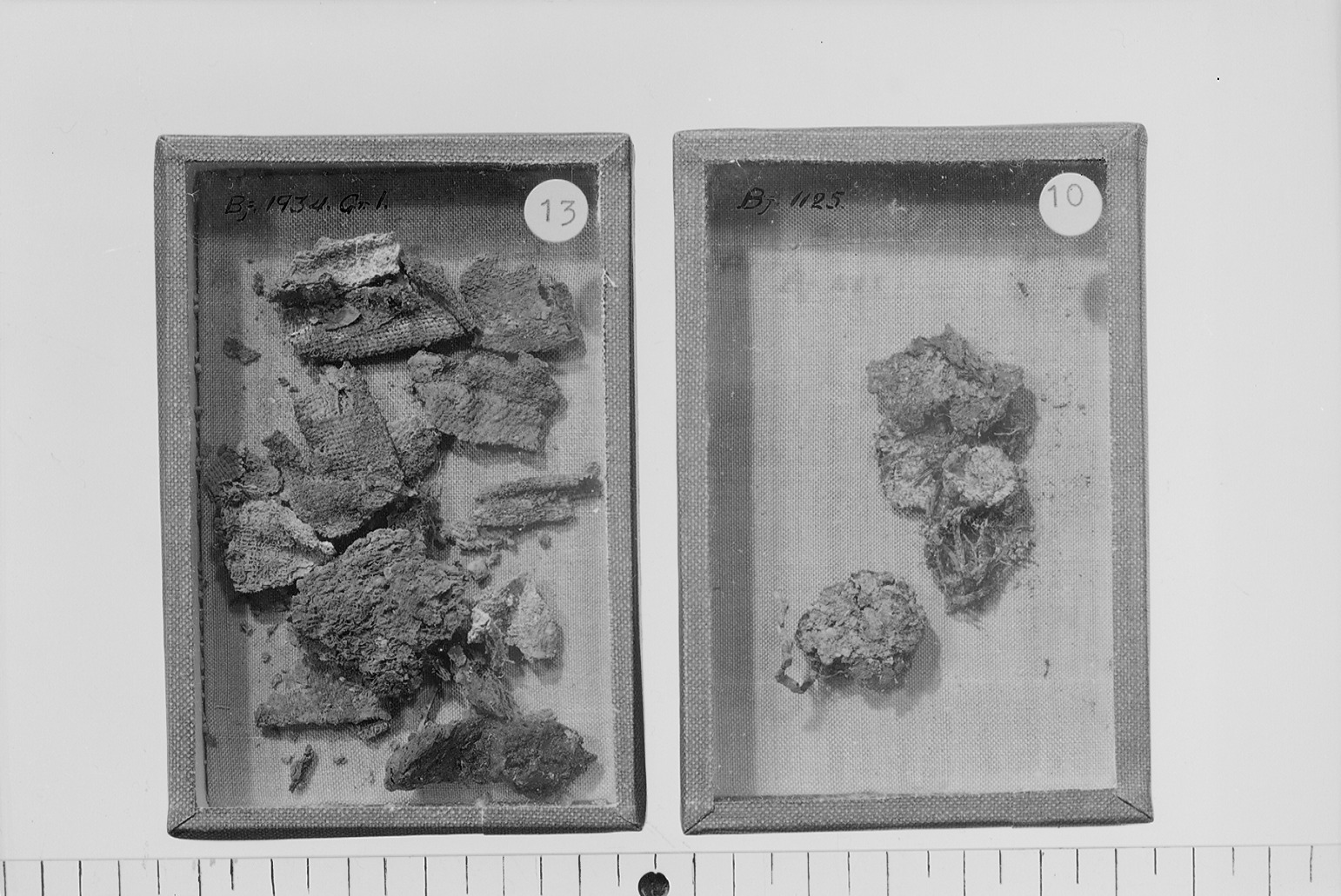 Klumpar, spår av brickband med silverinslag m.m.