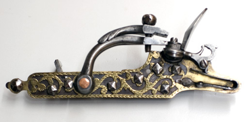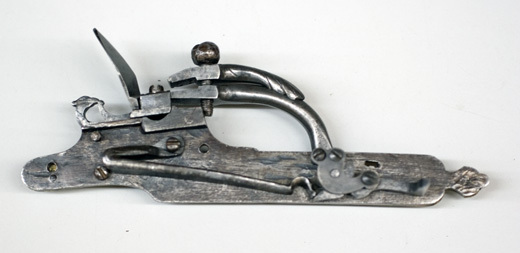Snapplåslodbössa, springlås av baltisk typ, infjäderslås, 1600-talets mitt.