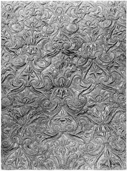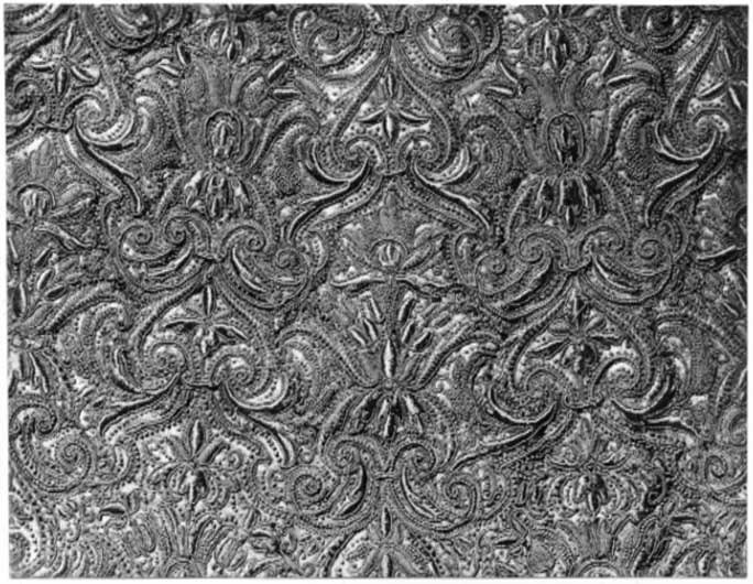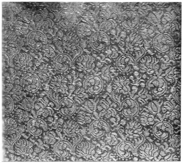 Av svart, slät atlas broderad med svart silke. Till dräkten hör, liksom beskrivet redan i 1671 års inv., kappa, tröja, byxor, knärosor, skorosor och handskar, allt utfört i svart s.k. pärlsticksarbete. D.v.s. dräkten är sydd av svart, slät atlas som broderats på ett synnerligen konstmässigt sätt med svart silke, så att hela ytan täcks härav. Materialet är svart sidenatlas med en vådbredd av c:a 51 cm. Staden är randig: grön, vit, grön, vit, grön. Kappan är rundskuren och sydd av 4 våder och mäter 190 cm från fram- till bakkant längs mitten. Vid halsringningen sitter en rektangulär krage. På insidan är kappan fodrad med guldbrokad med svart botten. Detta tyg har en vådbredd av 53 cm (utan stad, c:a 70 x 18 á20 tr/cm2). I varje inslagstråd är på rätan en guldlan invävd. Mönstret bildas genom inslagstrådar av gult silke tvinnade med guldlan. Varpen utgöres av svart otvinnat silke. Stad: 0,9 cm (12 gröna, 4 vita, 12 gröna, 2 vita trådar). Mönsterrapport: h 9,3 cm, b 6,4cm. Mönstret är detsamma som i guldbrokadsfodret i tröjan med ett slags krokigt rotsystem under.