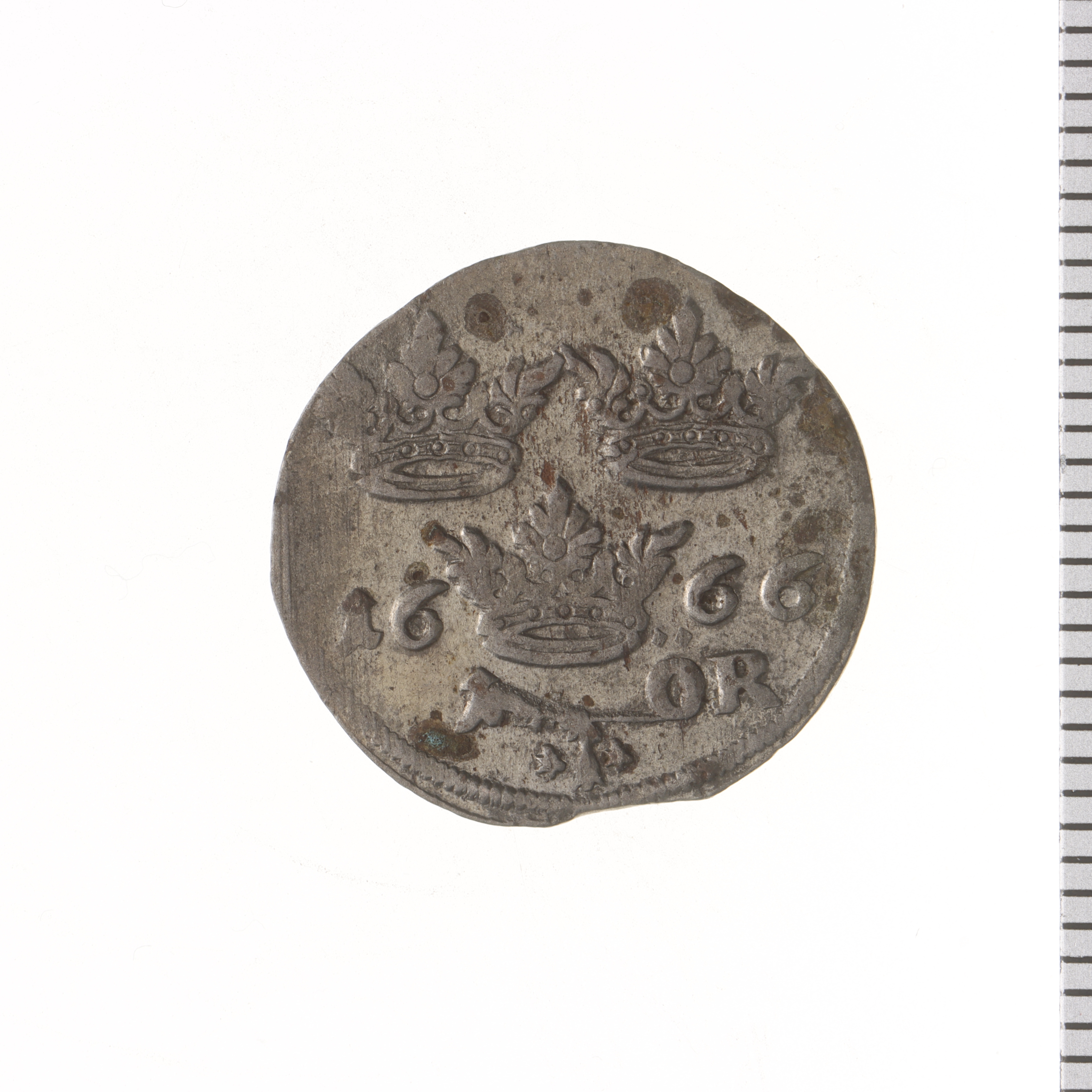 Upphov: Karl XI av Sverige. Media: Hedin, Albin. Ekonomiska museet - Kungliga myntkabinettet/SHM, (CC BY 4.0) Du får bearbeta och dela verket för alla ändamål, även kommersiella, så länge du anger upphovsperson och licensgivare.