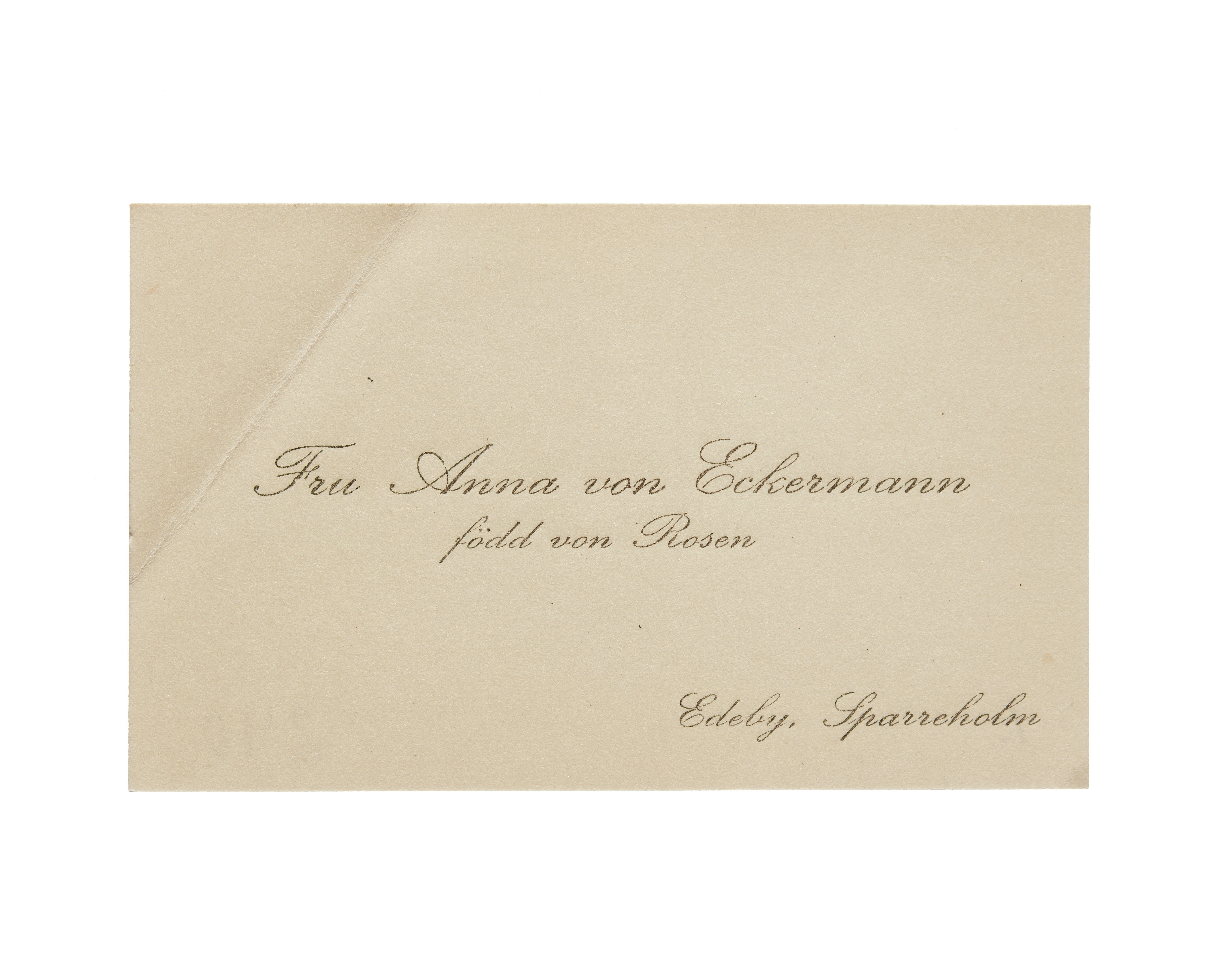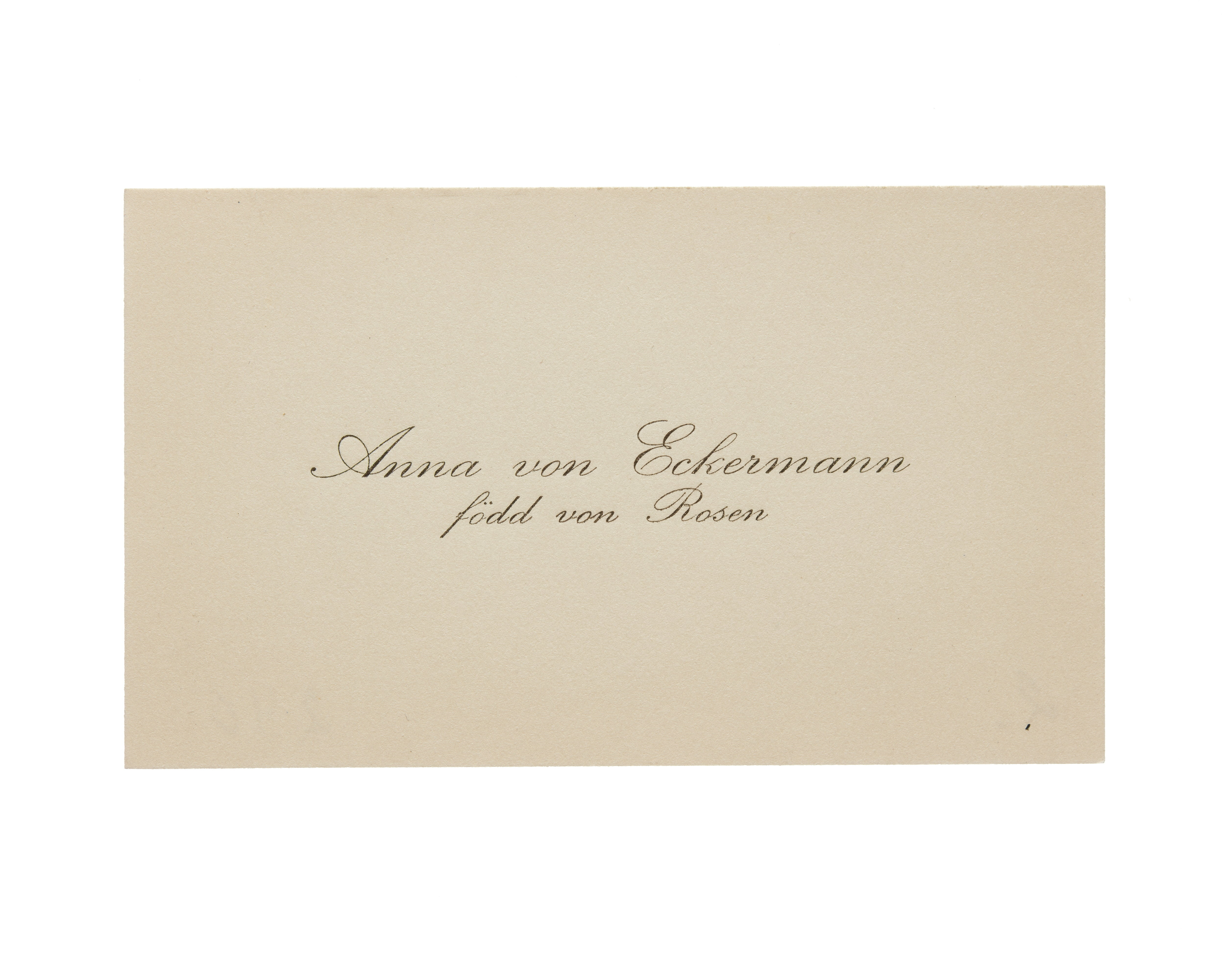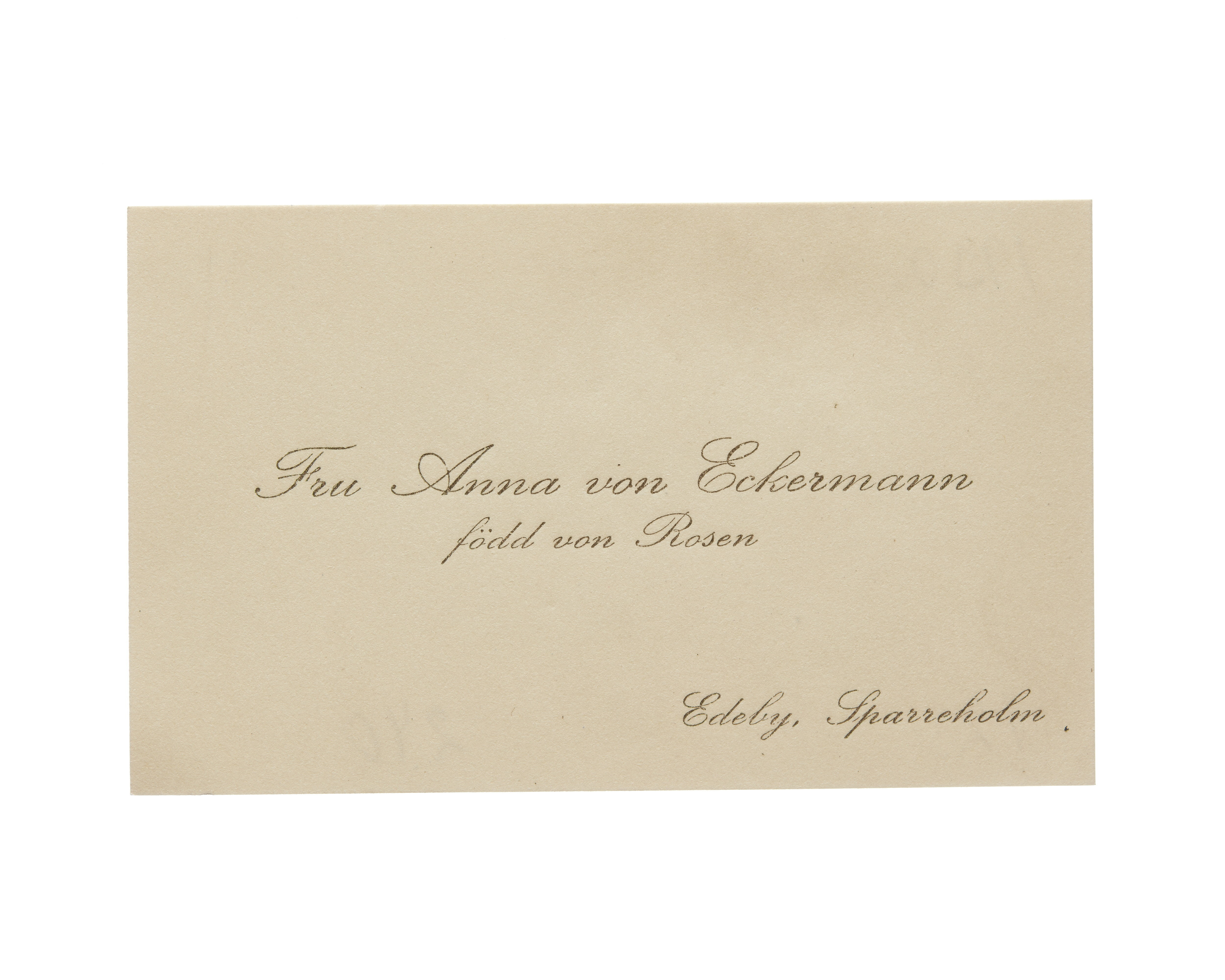 Visitkort från Fru Anna von Eckermann f. von Rosen.