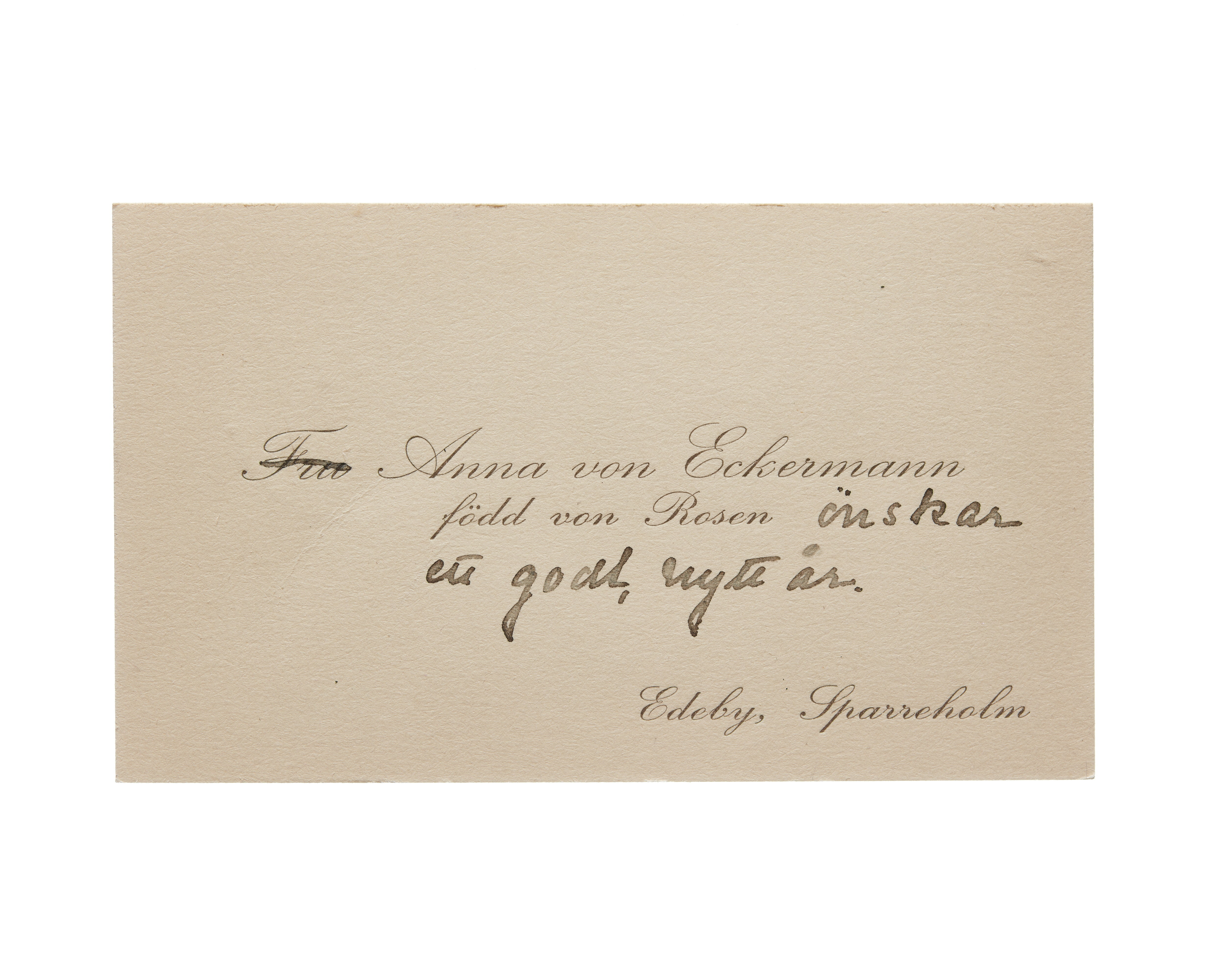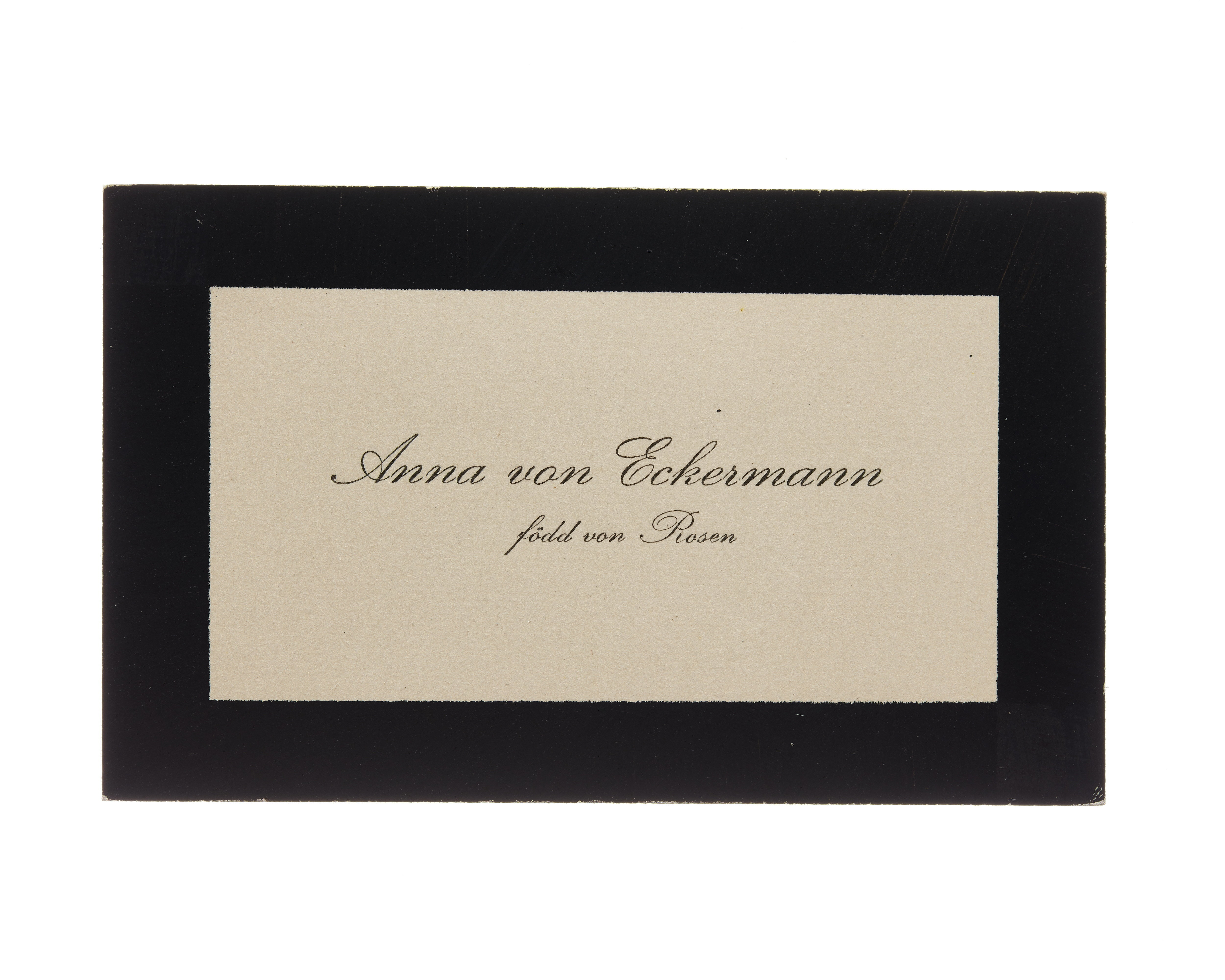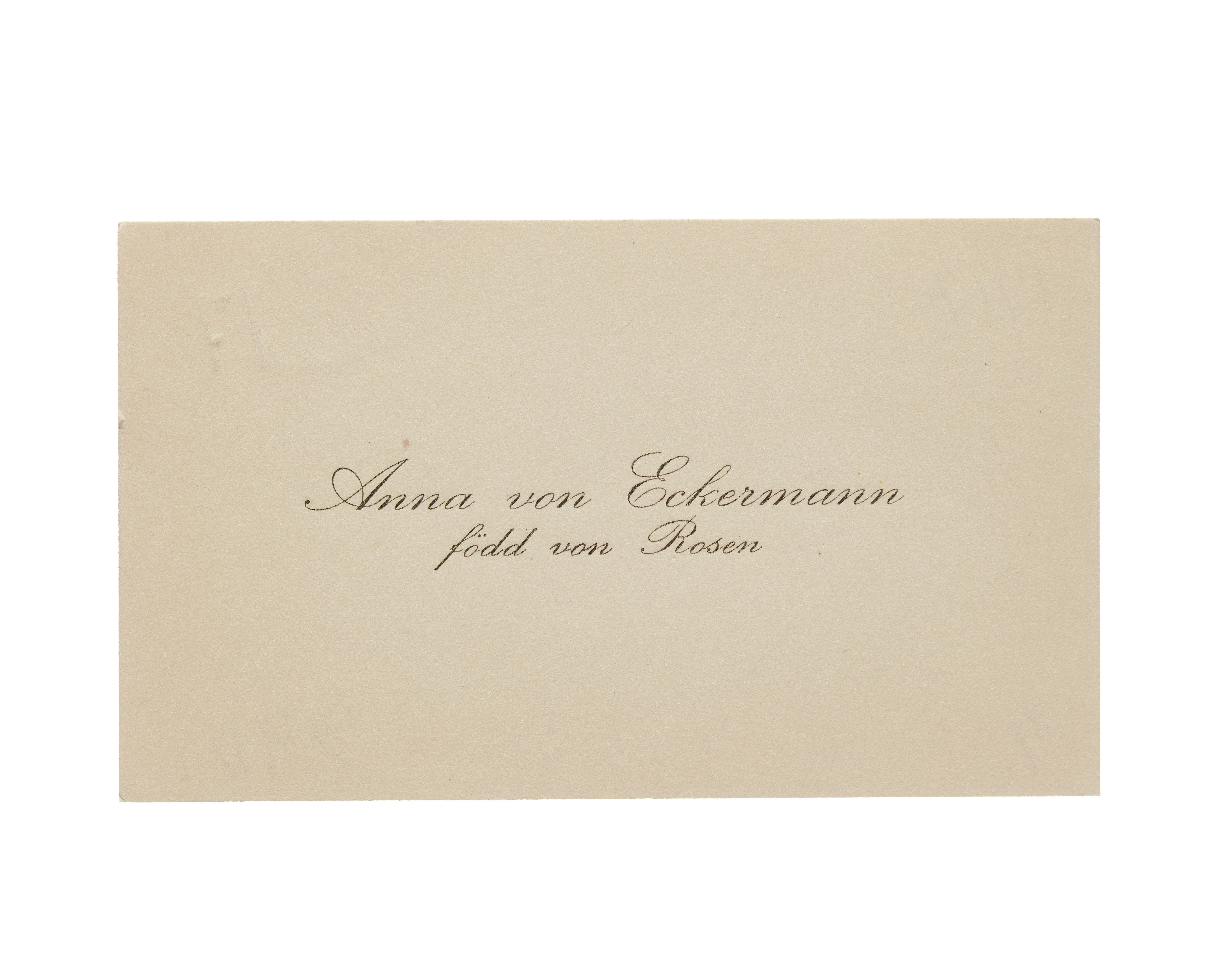 Visitkort från Fru Anna von Eckermann f. von Rosen.