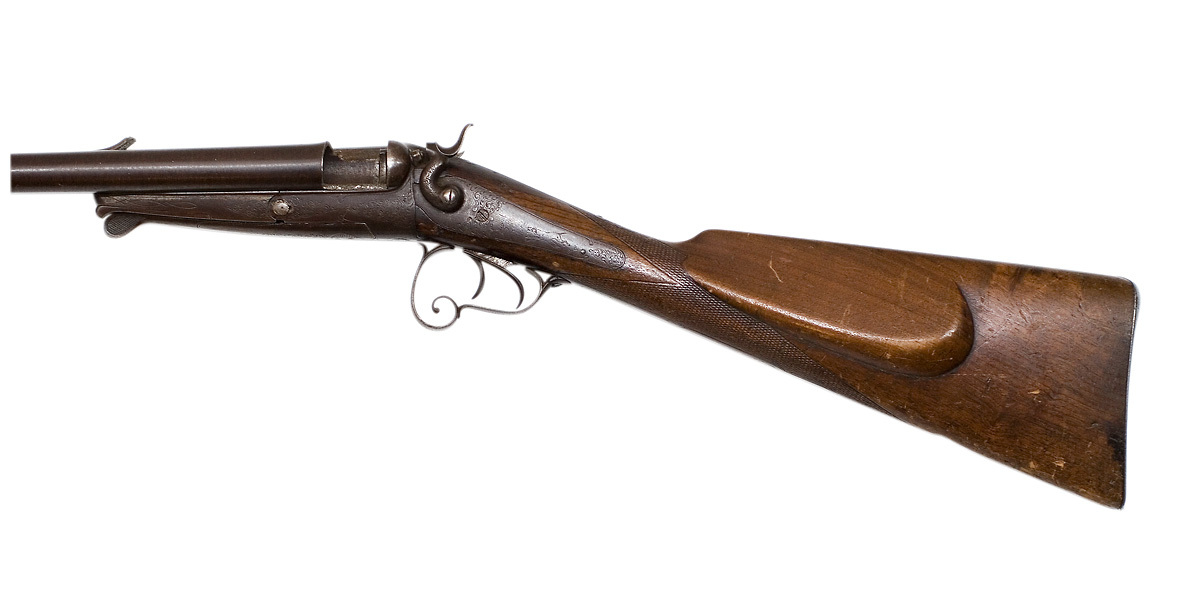 Dubbelbössa cal. 16, Husqvarna Vapenfabrik, modell 15, äldre modellen, tillverkningsnr 3565, slutning med Lefaucheux-nyckel.