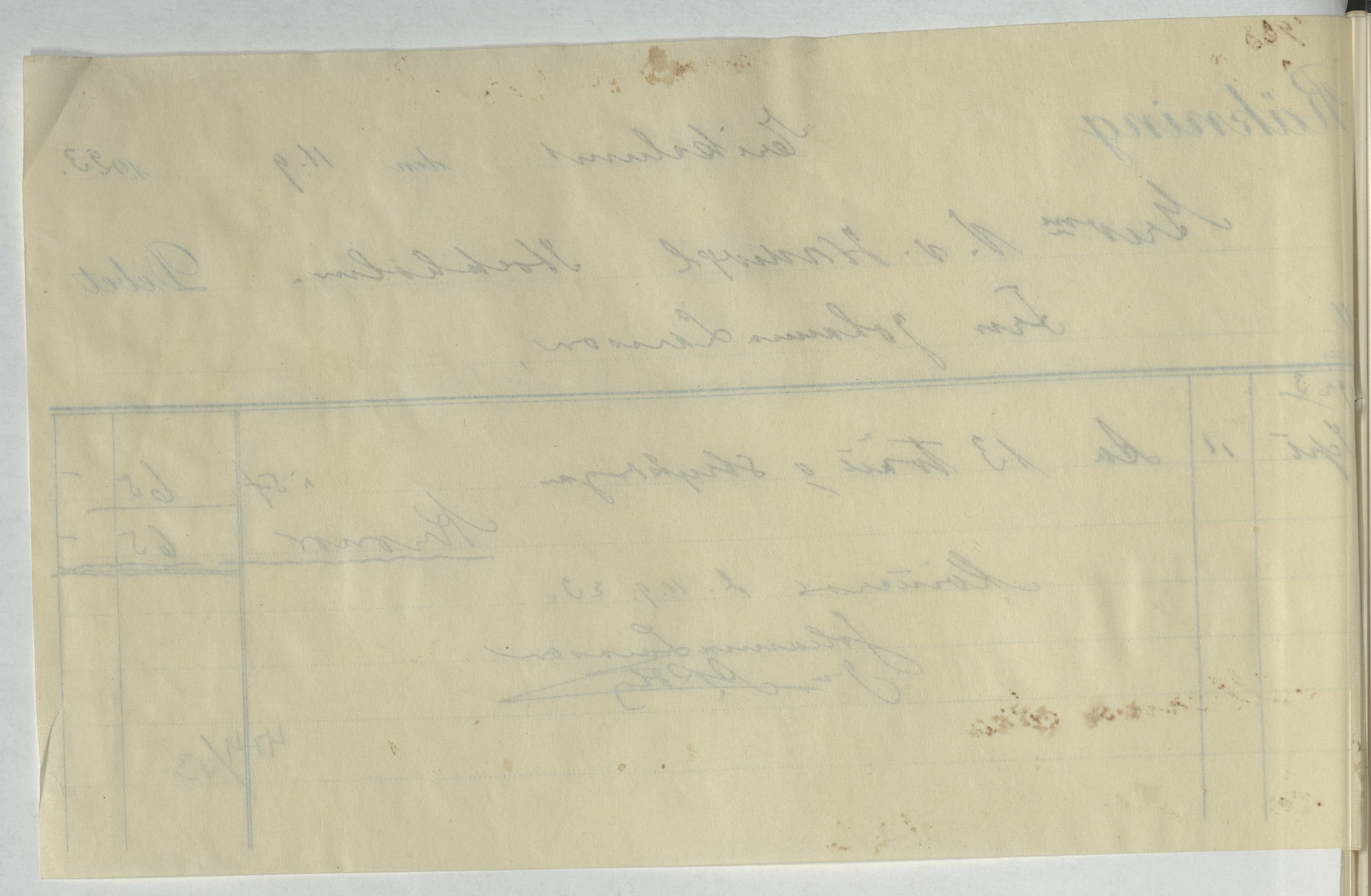 Kvitto från Johanna Larsson i Erikslund. Gällande 13 tvätt- och strykdagar. Erikslund, 1923.