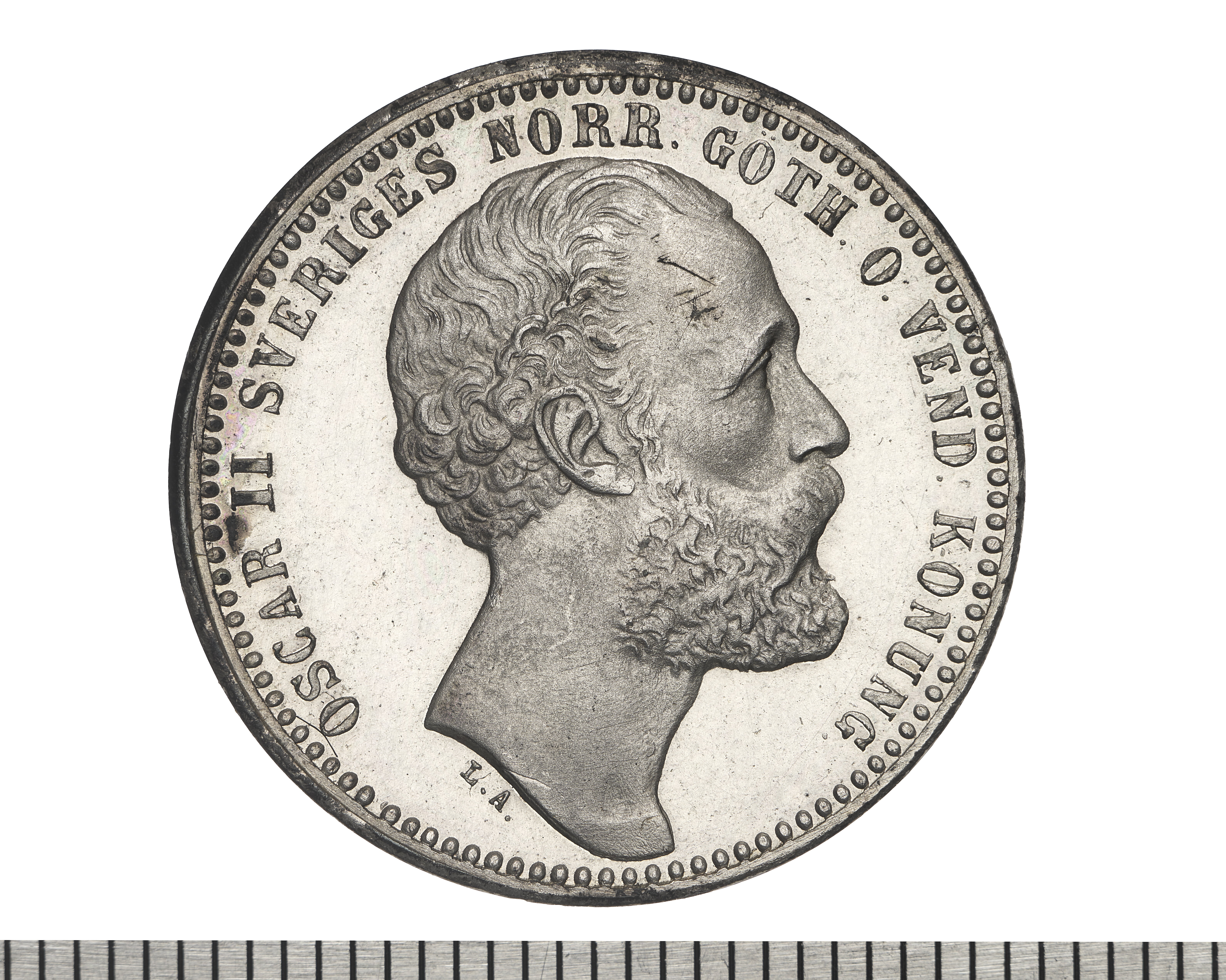 Upphov: Oscar II av Sverige och Norge. Media: Bonnevier, Helena. Ekonomiska museet - Kungliga myntkabinettet/SHM, (CC BY 4.0) Du får bearbeta och dela verket för alla ändamål, även kommersiella, så länge du anger upphovsperson och licensgivare.