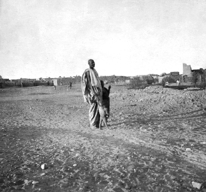 Khartoum, Sudan. Text på fotografiet: Khartum. Fotografierna LXVI:M.01.- 201. kommer från resan till Egypten och Sudan som Wilhelmina och Walther von Hallwyl gjorde vintern 1900-1901. De lämnade Sverige den 5 november 1900 och fortsatte från Egypten till Palestina den 28 mars 1901. Med på resan var döttrarna Ellen med maken Henric de Maré och Irma med maken Wilhelm von Geijer. Wilhelminas sällskapsdam, fröken Ida Uhse reste också med. Under en del av resan anslöt sig ledamoten av Internationella domstolen i Kairo, assessorn Otto Conrad Waldemar Cedercrantz med makan Anna Elisabeth. Vid resan uppför Nilen hade Walther von Hallwyl hyrt ångfartyget Columbia med besättning. Båtresan startade i Kairo 27 december 1900, gick ända till Wadi Halfa varifrån man reste vidare med tåg till Khartum och tillbaka till Wadi Halfa. Båten vände åter i riktning mot Kairo, men det verkar som att sällskapet tog tåg sista biten, från Luxor. Henric och Ellen de Maré samt fru Cedercrantz lämnade båten redan då de passerade Luxor första gången. Resten av sällskapet återvände till Kairo den 1 mars. Fotografierna LXVI:M.01.-120. togs av resenärerna själva, de största av Ellen de Maré, de mellersta av Wilhelmina von Hallwyl och de minsta av Wilhelm von Geijer. Resten köptes av professionella fotografer i Kairo, de flesta från Studio Photogr. Artistique G. Lekegian & Cie. Alla uppgifter kommer från Ida Uhses reseanteckningar.