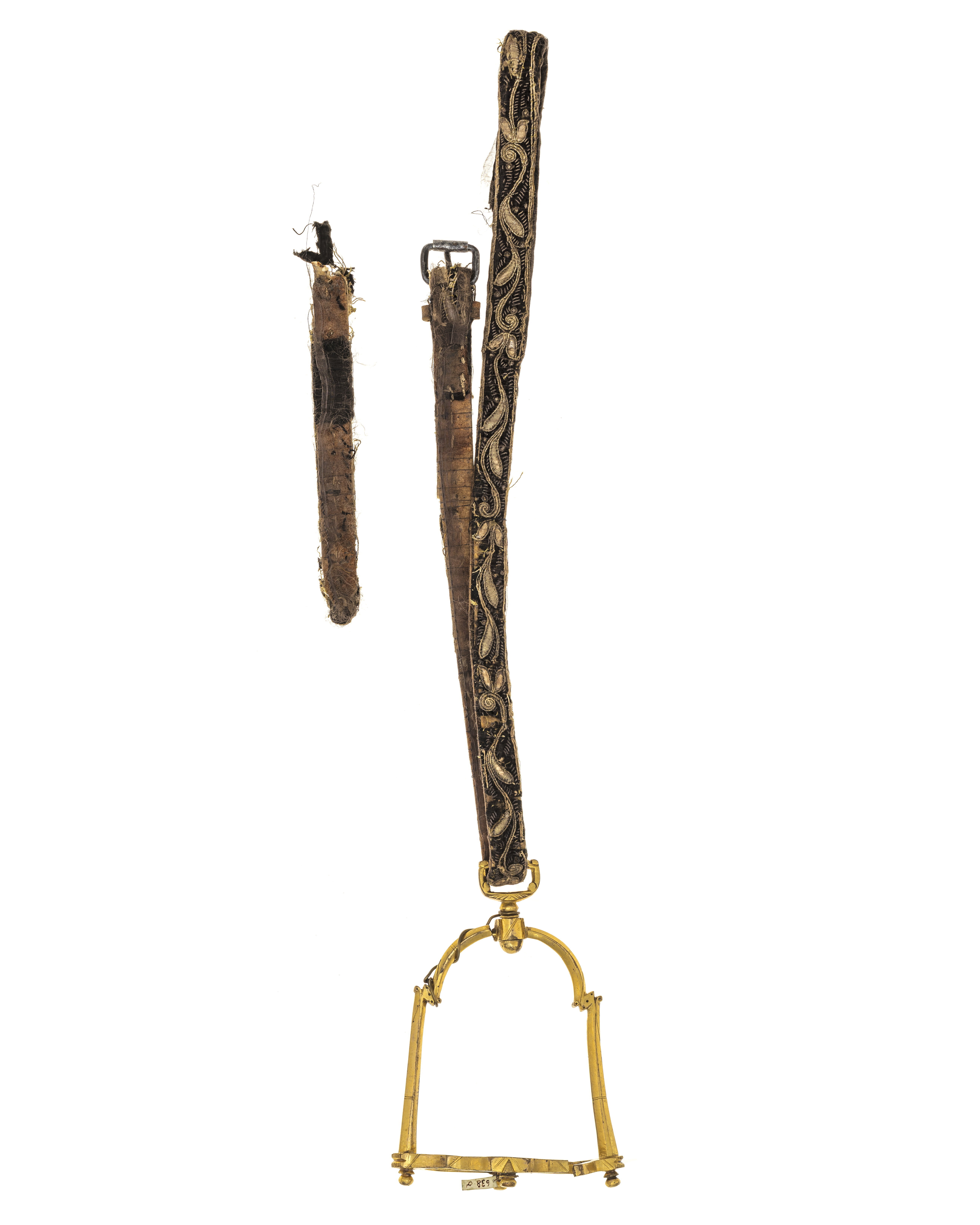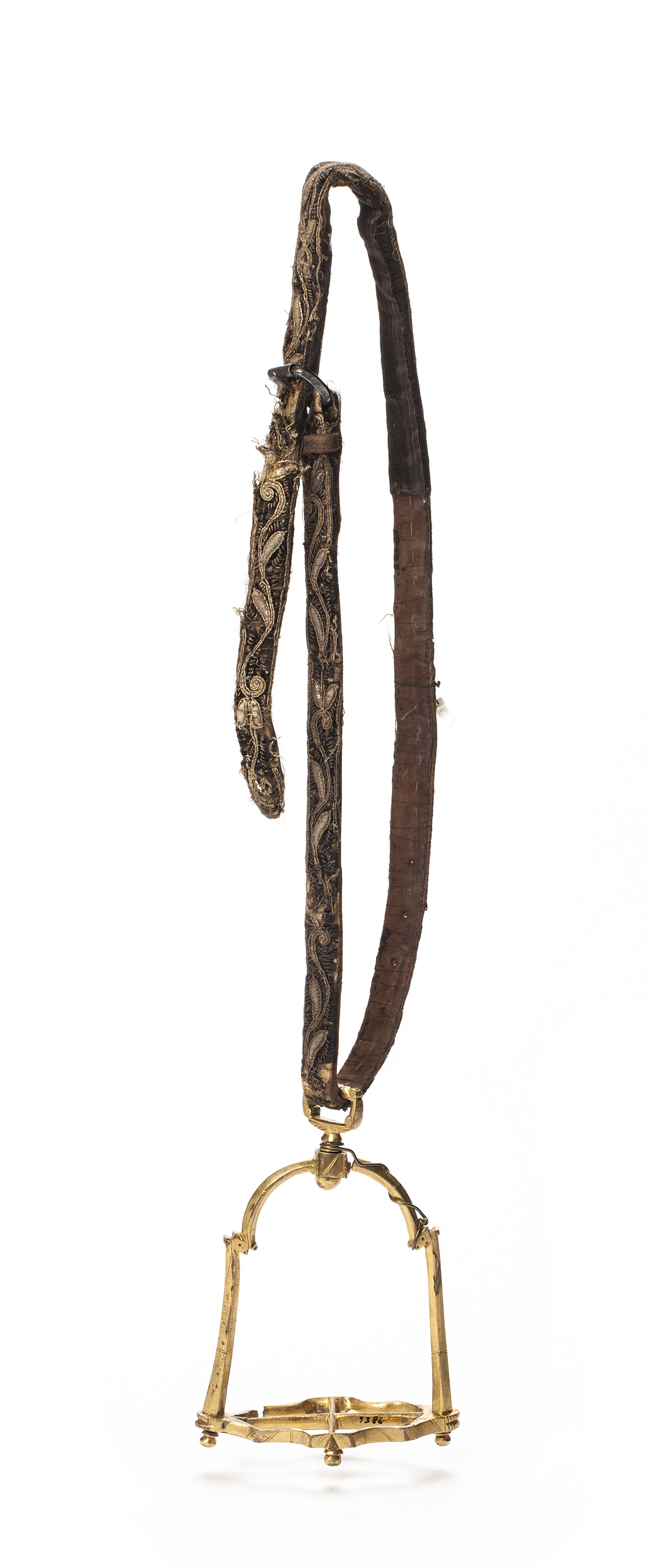 Stigläder, hör till Kyritzryttarens utrustning, vilken ingick i Karl X Gustavs begravningståg den 4 november 1660.