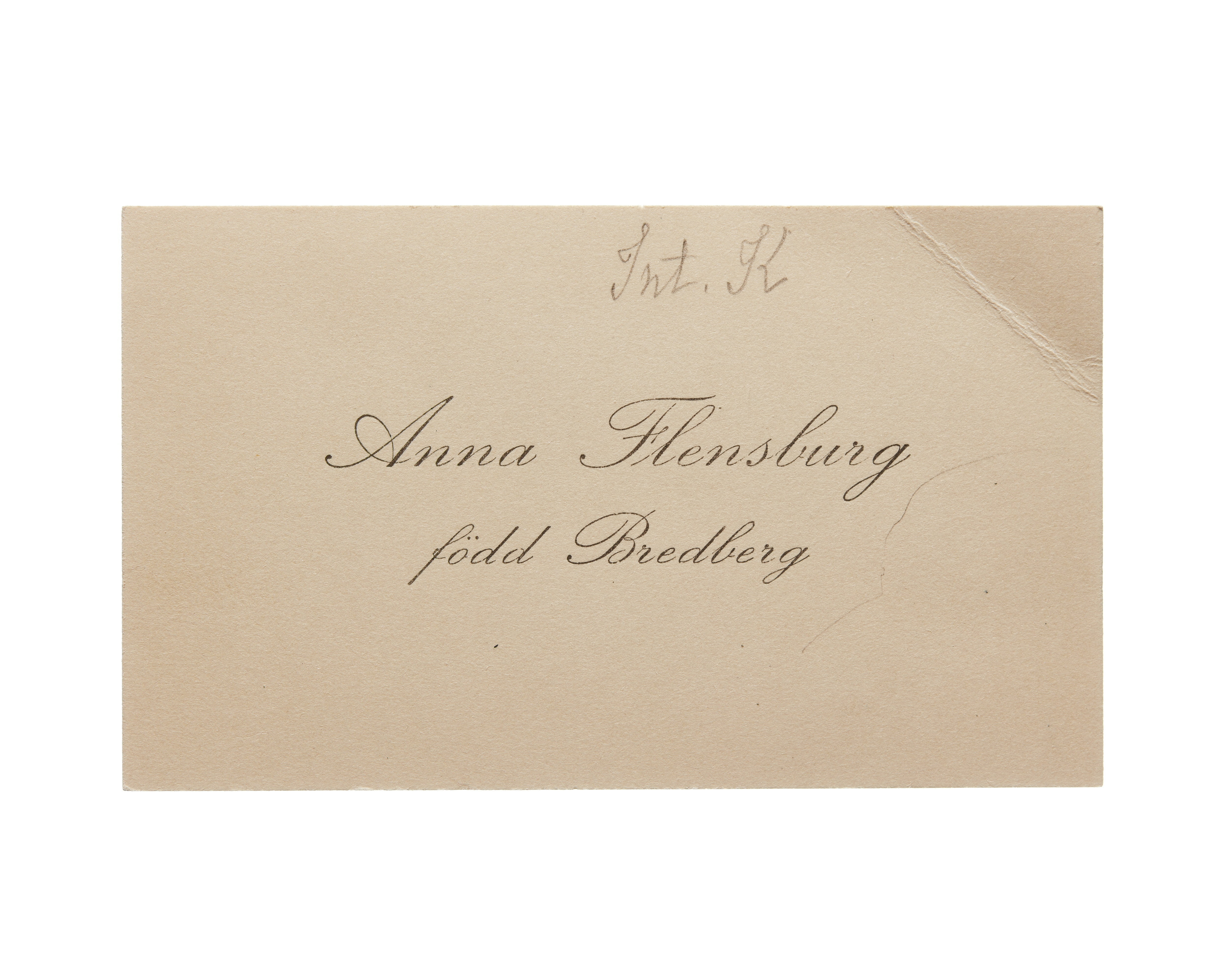 Visitkort från Anna Flensburg, f. Bredberg.