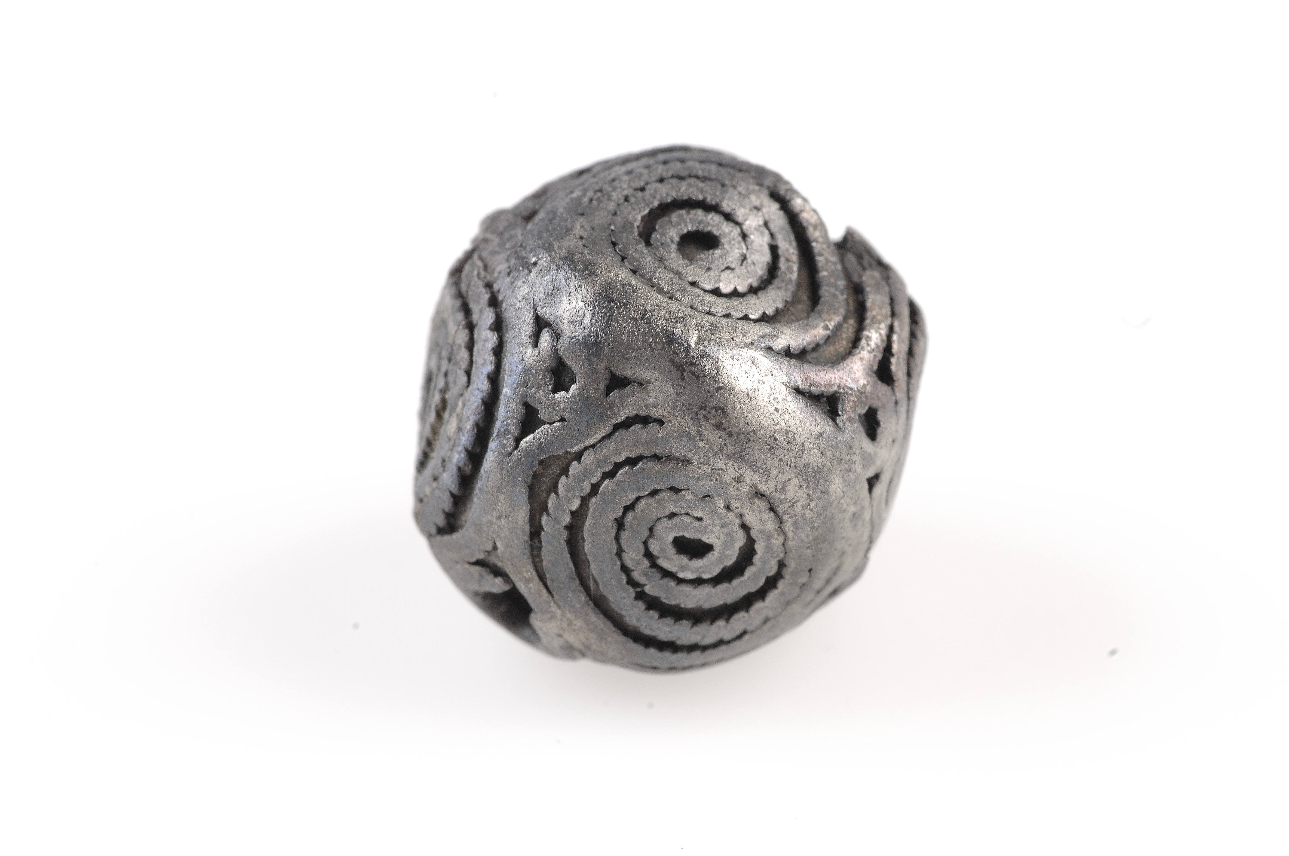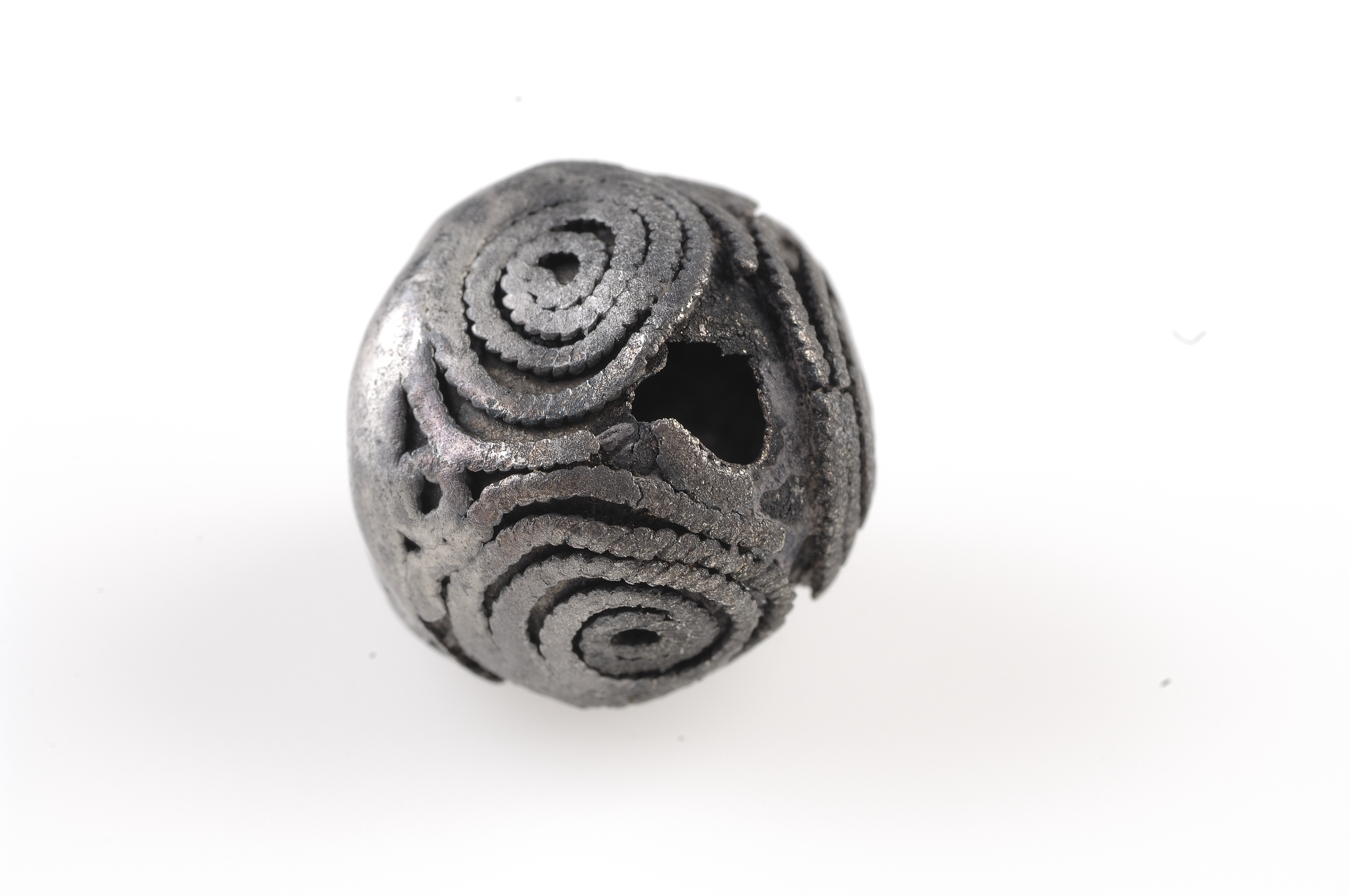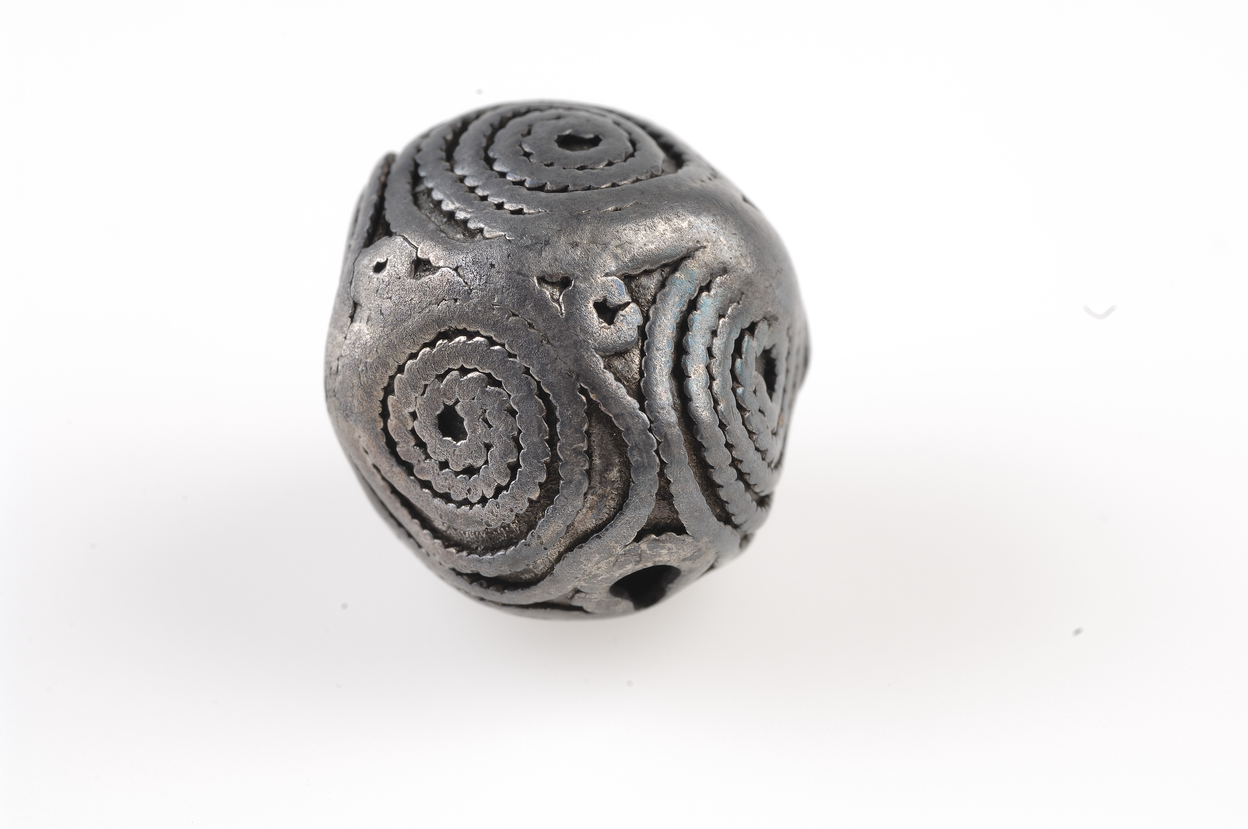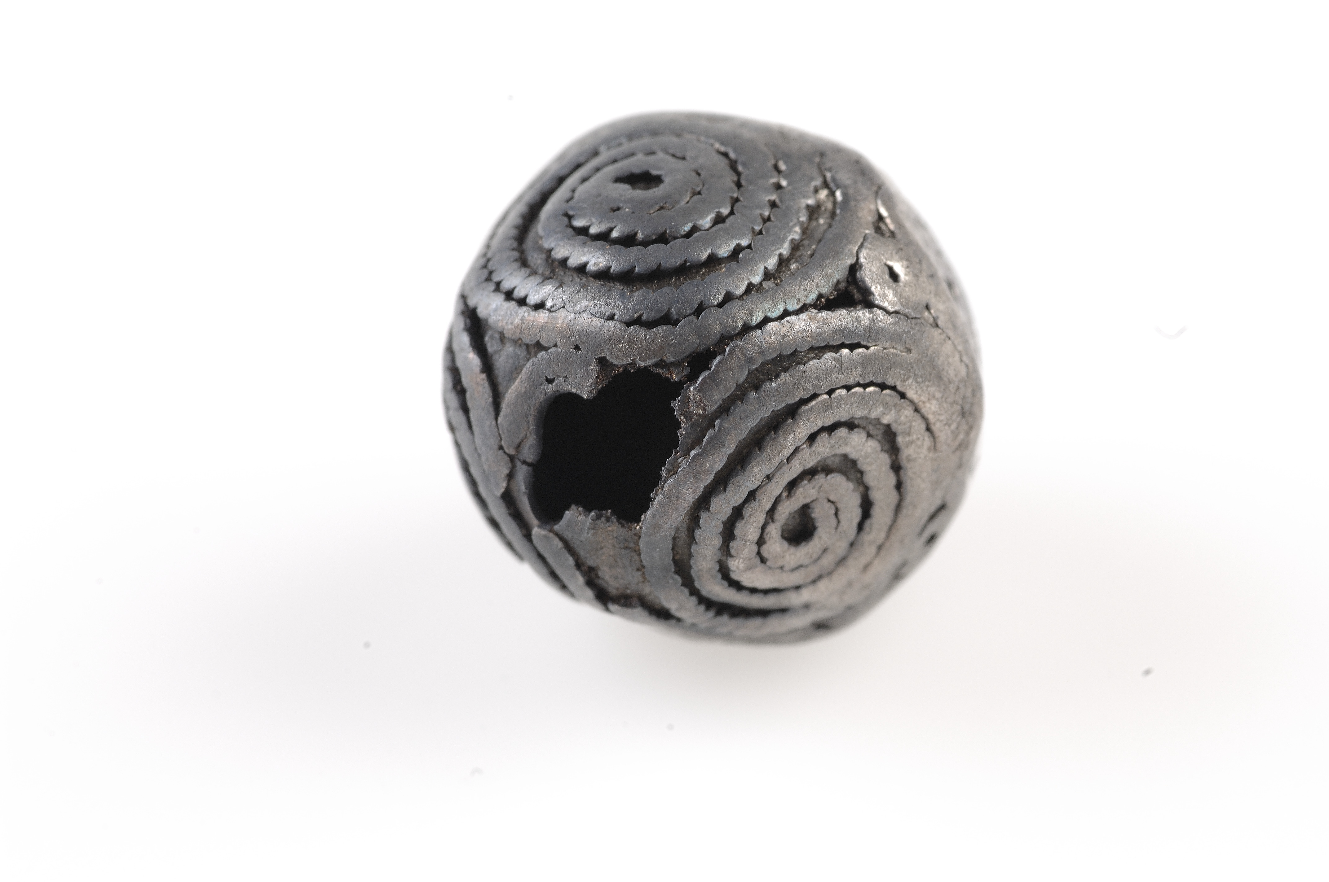 Två hela och en fragmenterad (halv). Filgranornamentik i form parvis kopplade spiraler. Hålen strakt nötta.