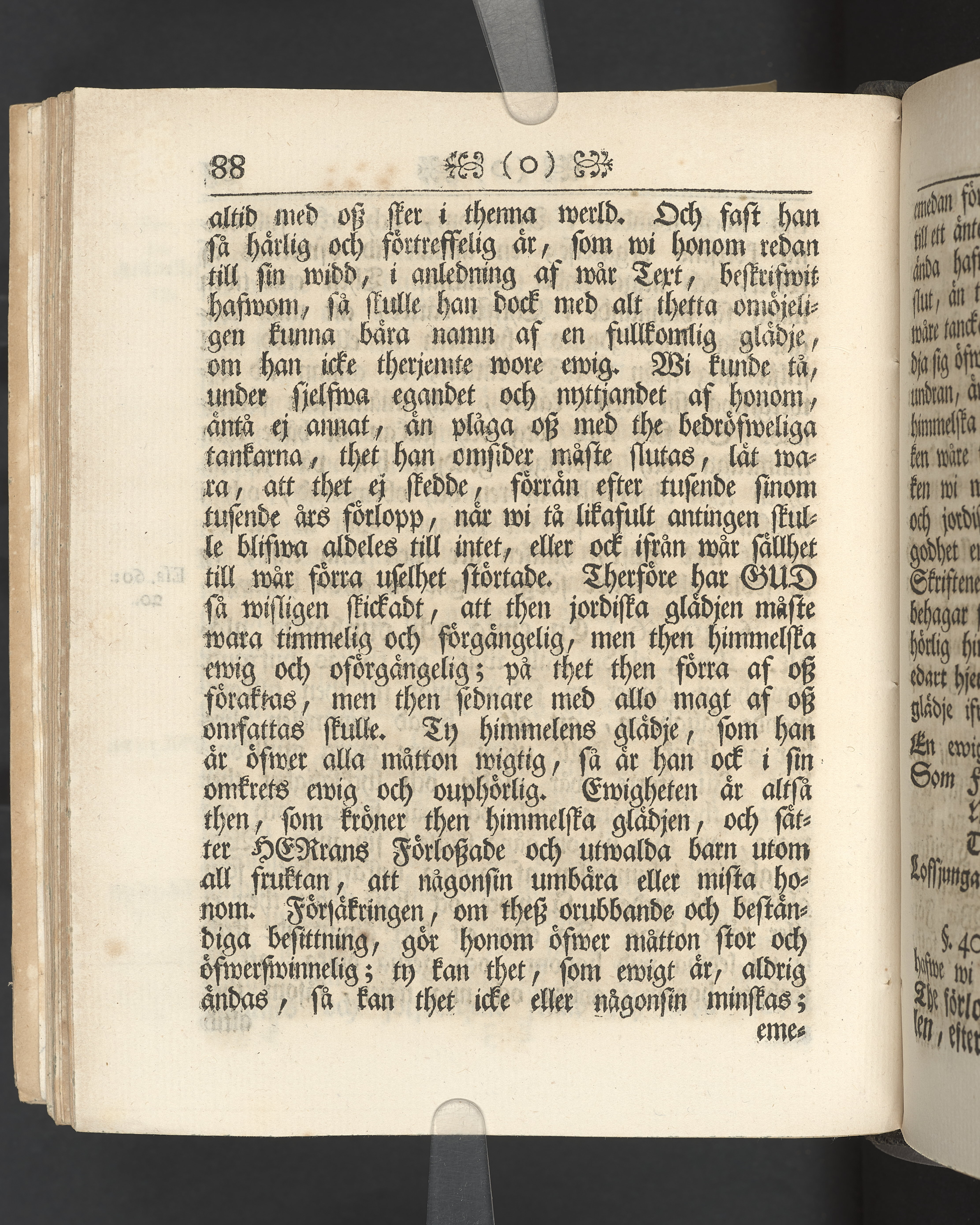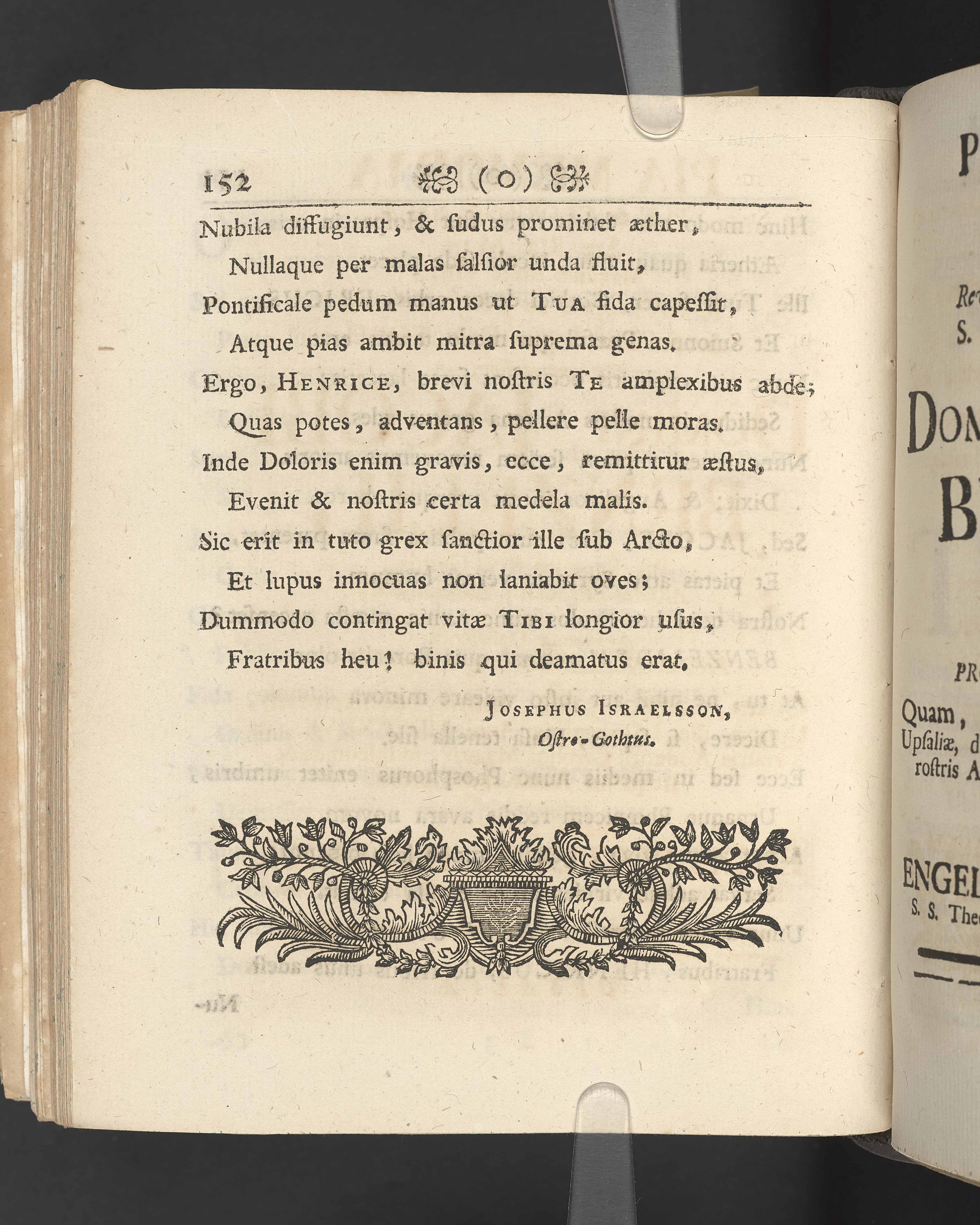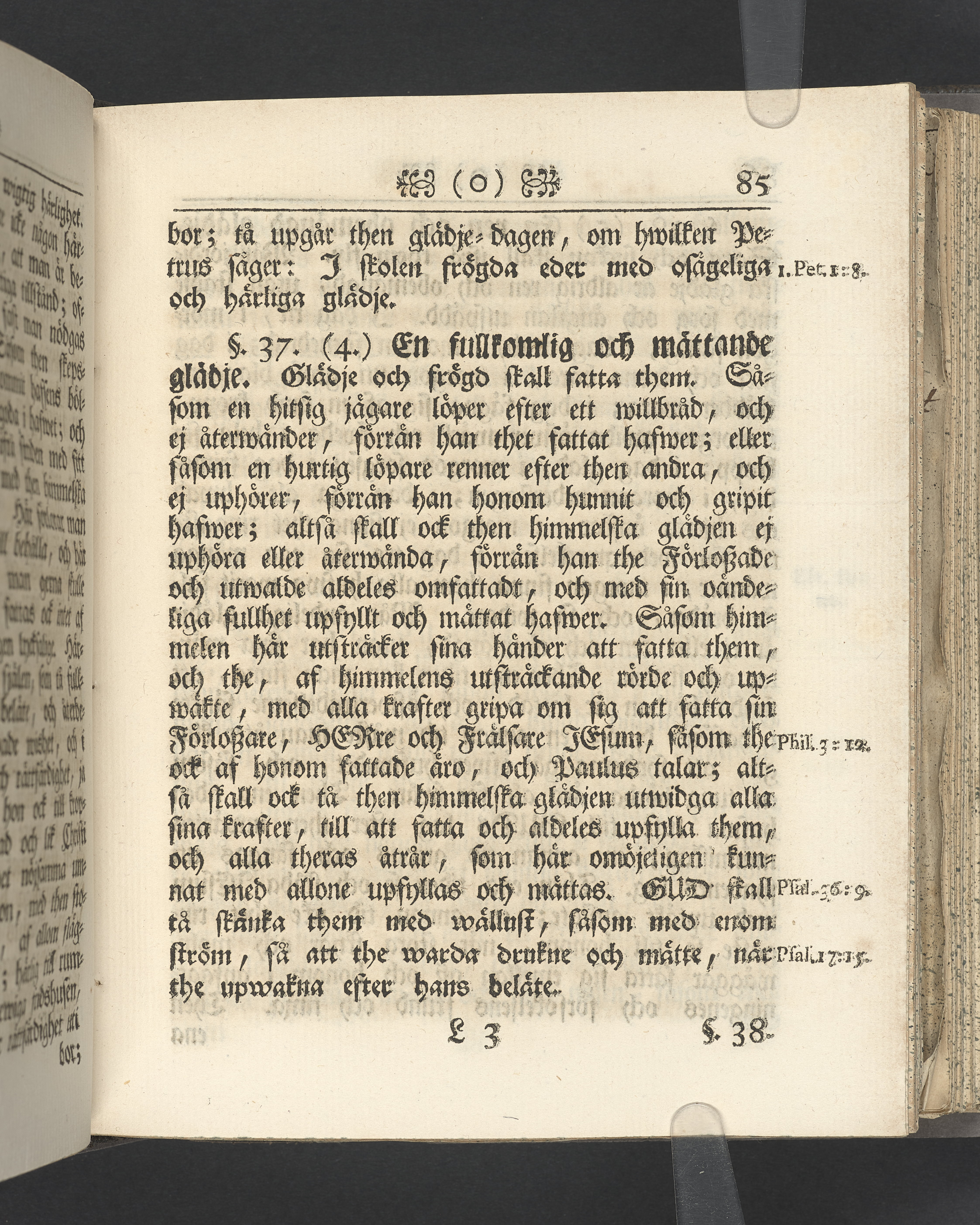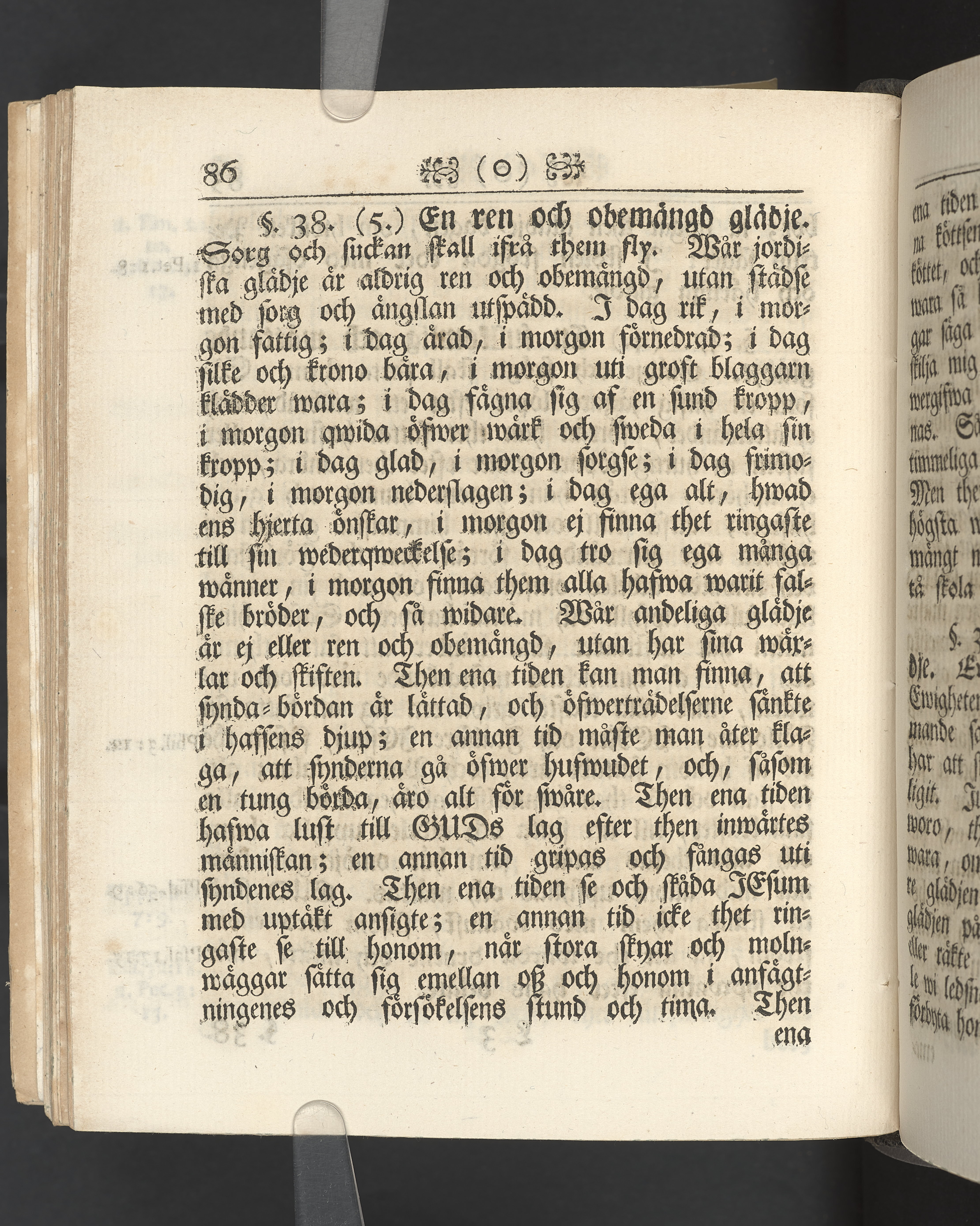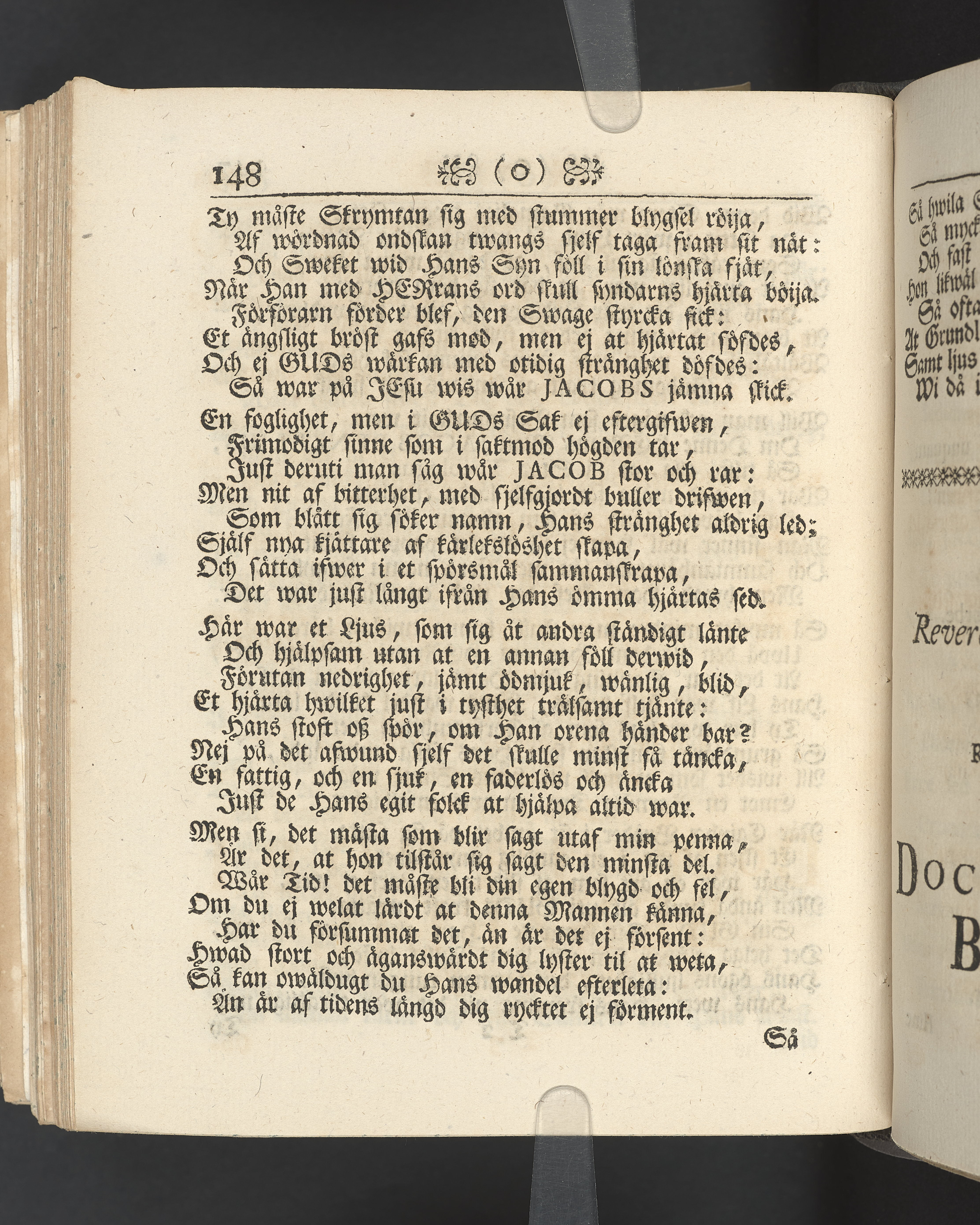 Vikt plansch med graverat porträtt av den avlidne innan titelbladet, med bilden vänd mot titelsidan. Snitt stänkta i rött och blått.